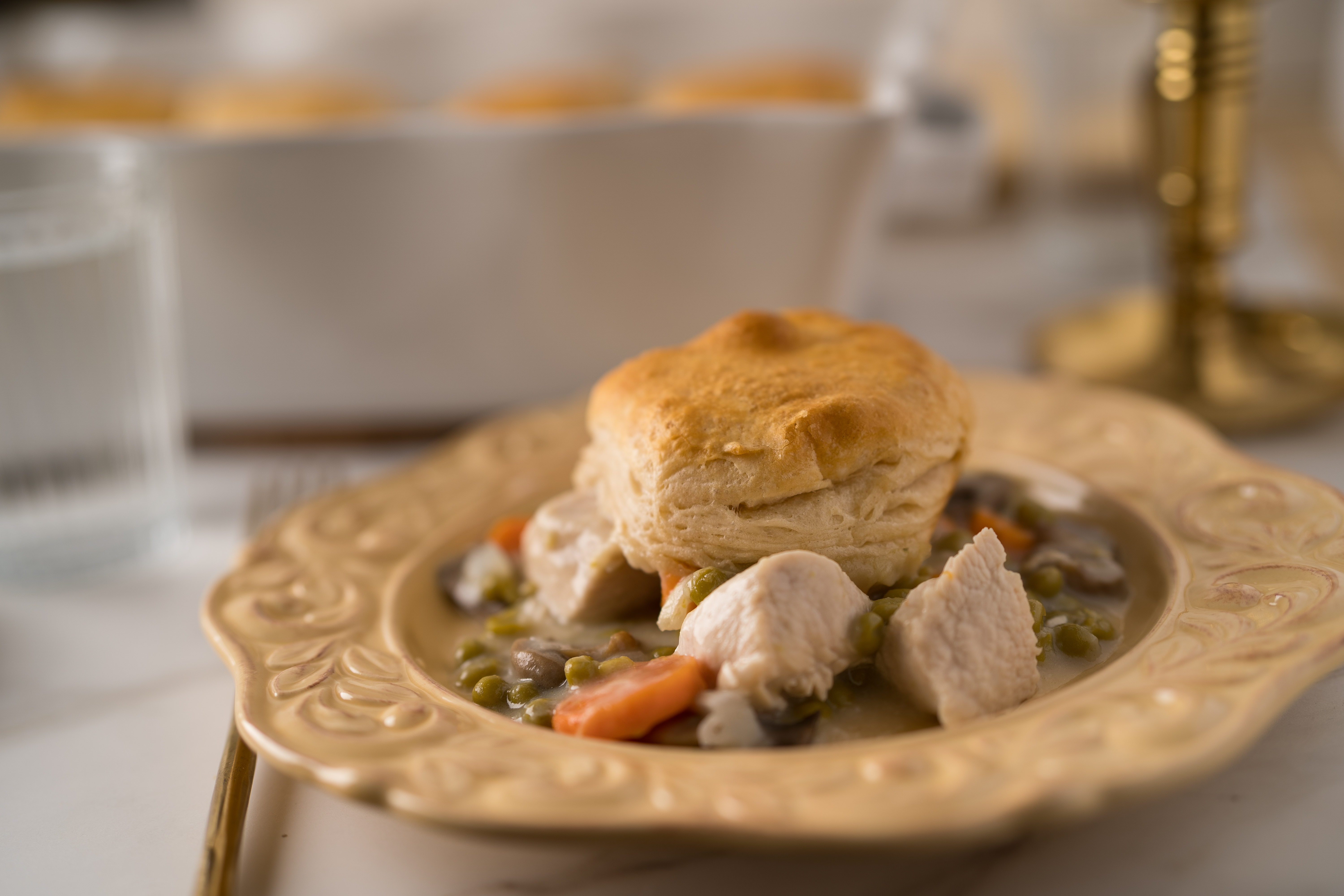 À la King Biscuit Casserole is everything you know and love from the classically creamy Chicken à la King. It features deliciously juicy chicken, an array of tender veggies, and that rich, savory sauce we adore so much. To make those flavors all the better, there's a fluffy layer of buttermilk biscuits on top to soak it all up! And who wouldn't want that?! We think this À la King Biscuit Casserole is a delicious tribute to one of everyone's favorites!