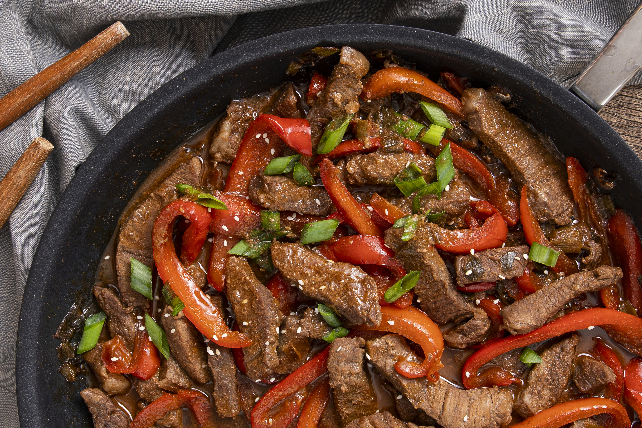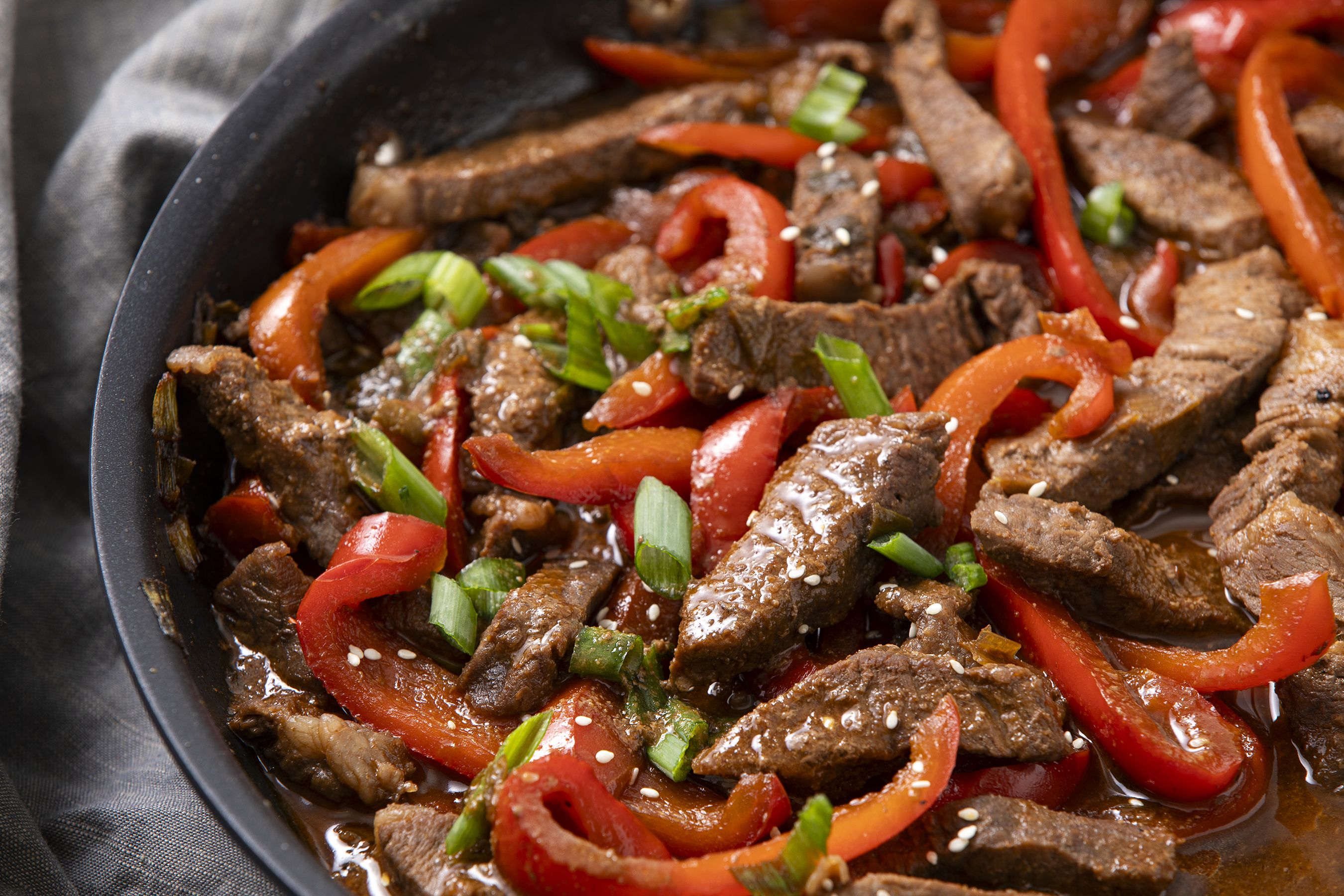 Step 8 -Working in 3 batches, add the marinated steak slices in a single layer to the heated oil and cook until they are seared, about 1-2 minutes per side.