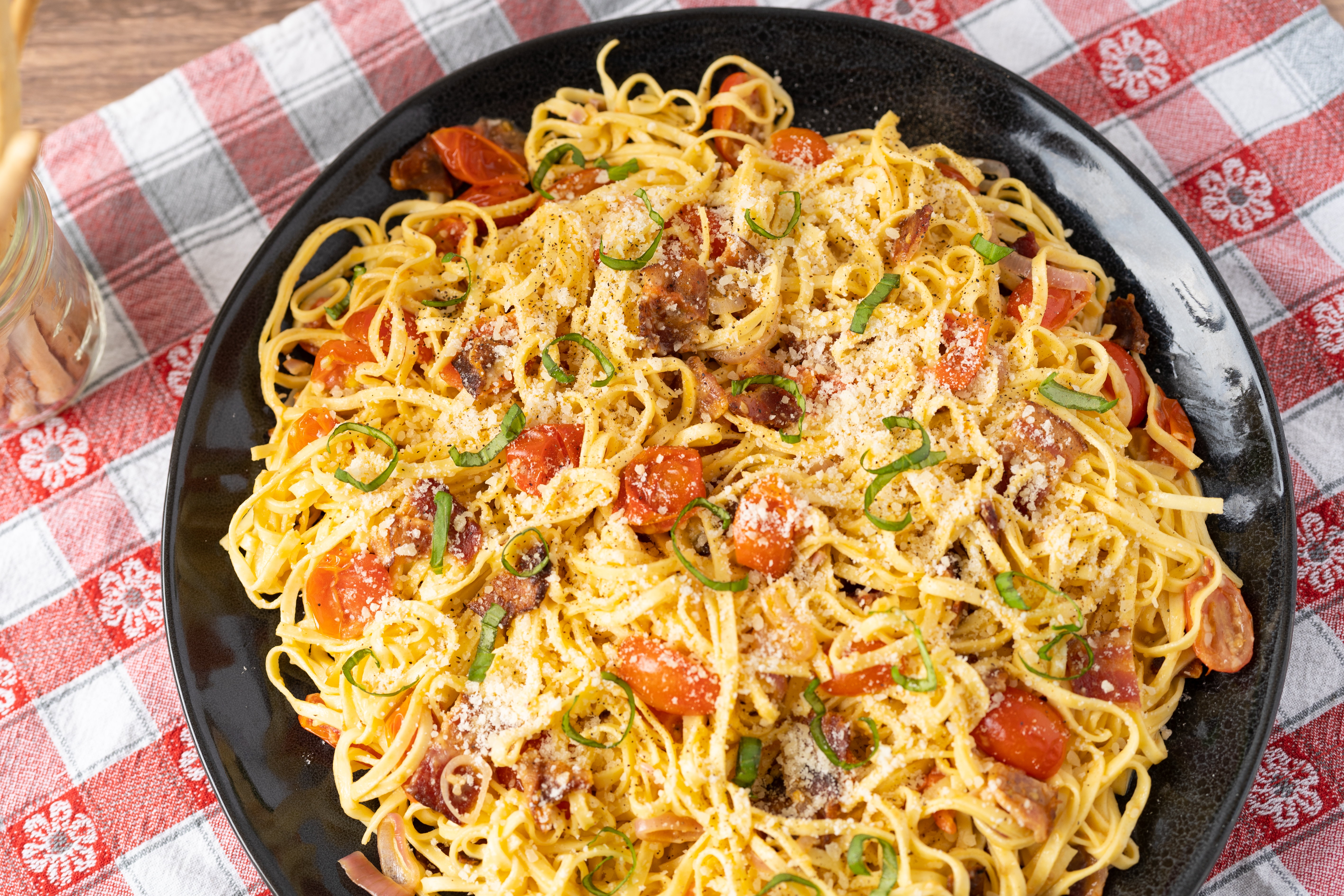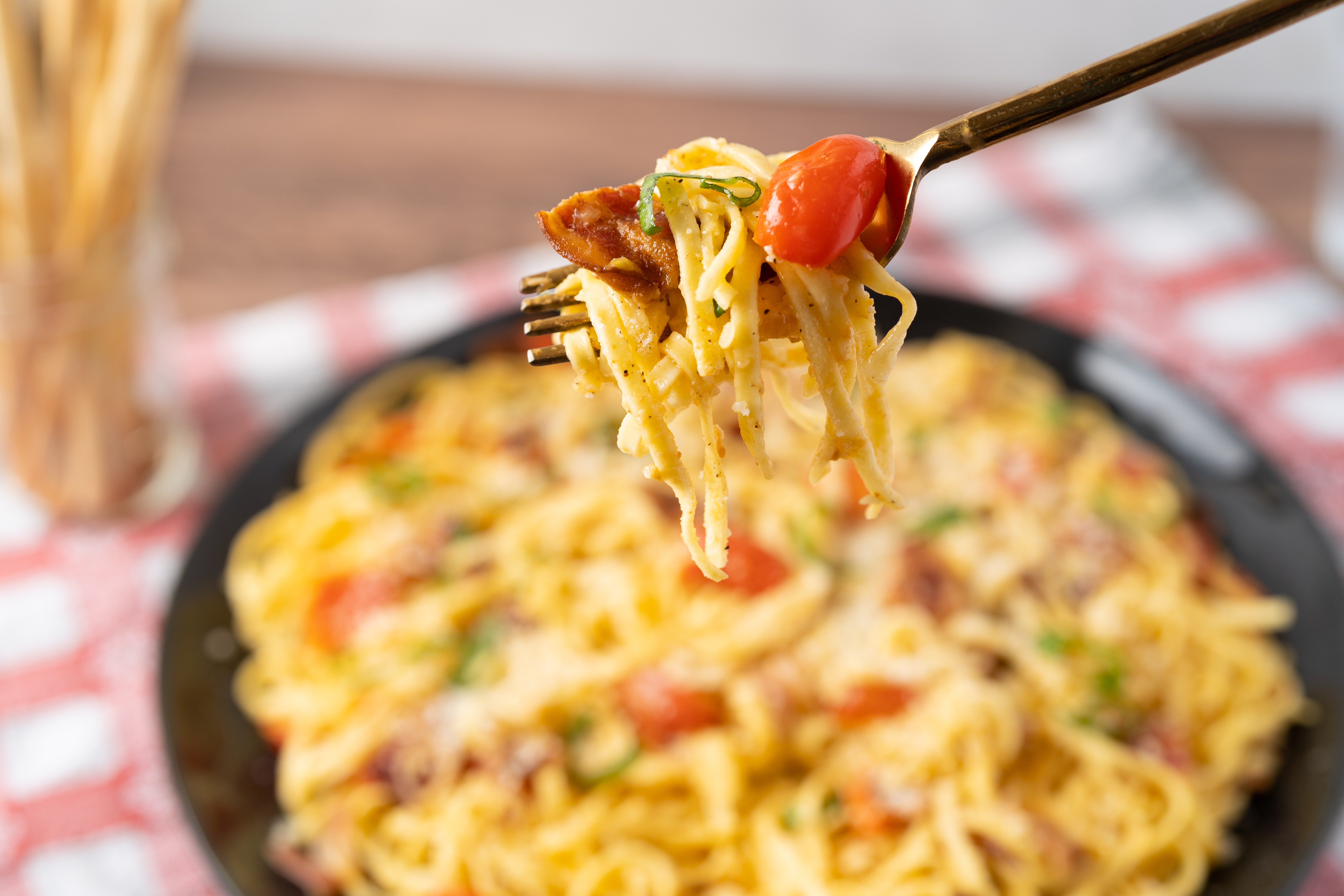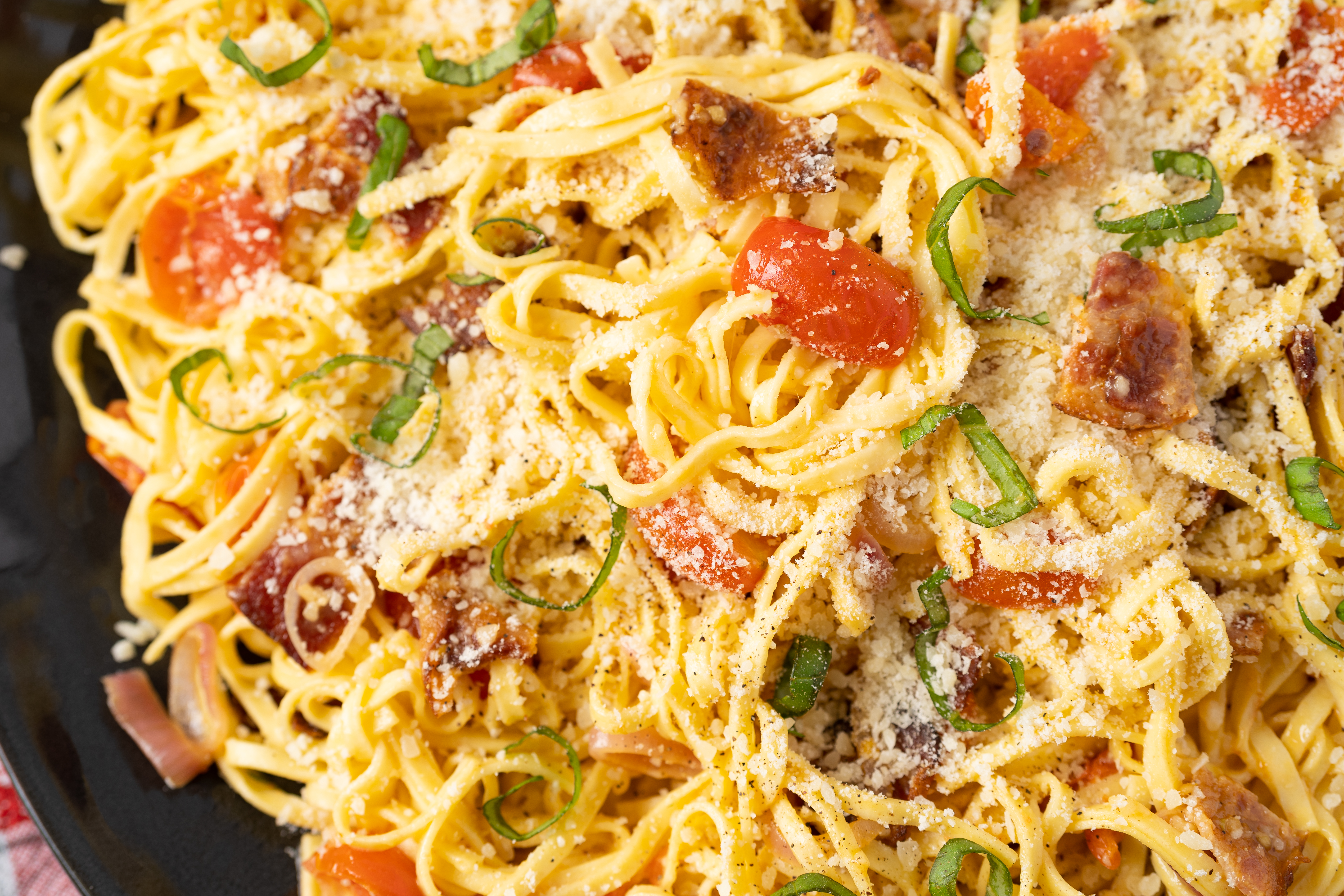 Imagine, salty, delicious bacon mixed with a fresh and juicy tomato straight from the garden, atop a big ol' bed of pasta... well, guess what?! You don't have to just dream about this tantalizing dish anymore, because it's real! Yes, really! This Bacon Tomato Linguine is no figment of the imagination. Try this Italian-style, cheesy, and comforting dish for yourself and you'll know after one bite how real it is. Bacon Tomato Linguine will definitely make today feel like a fairytale... and luckily, you can make that happen over and over again!