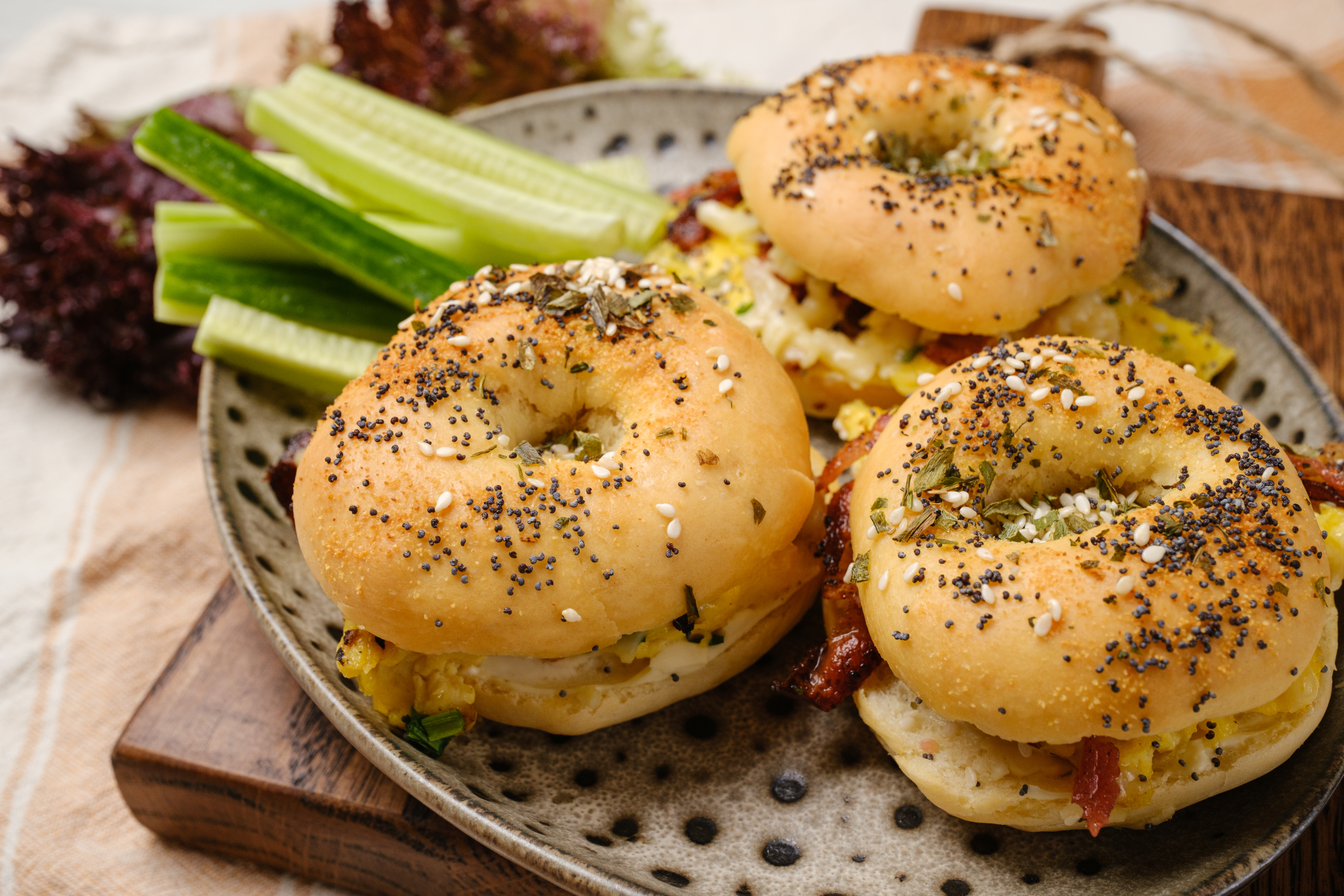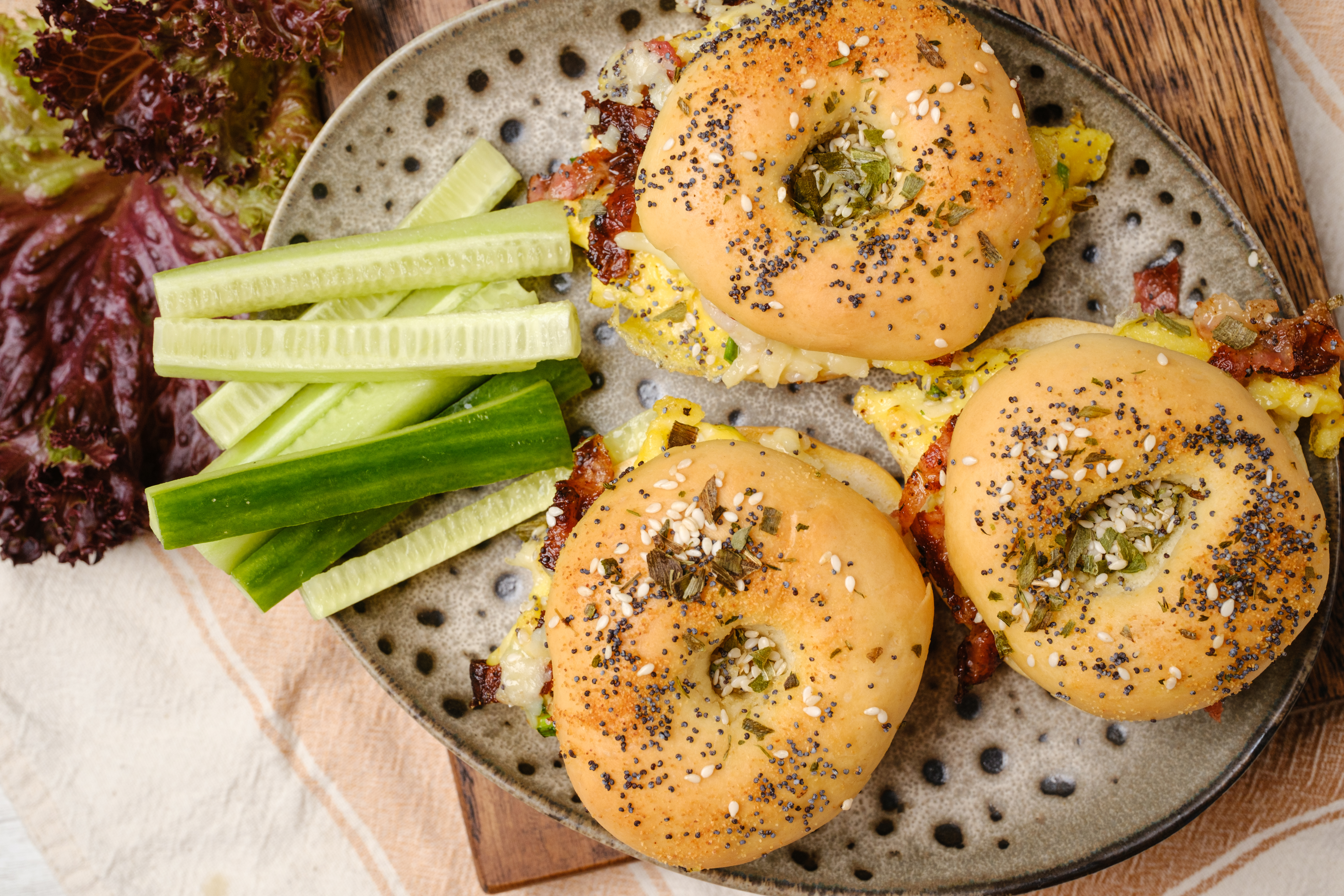Bagel Breakfast Sliders are how you make big breakfasts for a crowd in a hurry while also making that same crowd very happy indeed! Each hand-seasoned bagel is filled with fluffy, creamy eggs, crispy bits of bacon, tangy cream cheese, and refreshingly sharp chives. It's like a full English breakfast in bagel form! Bagel Breakfast Sliders should definitely slide onto your regular breakfast menu moving forward!