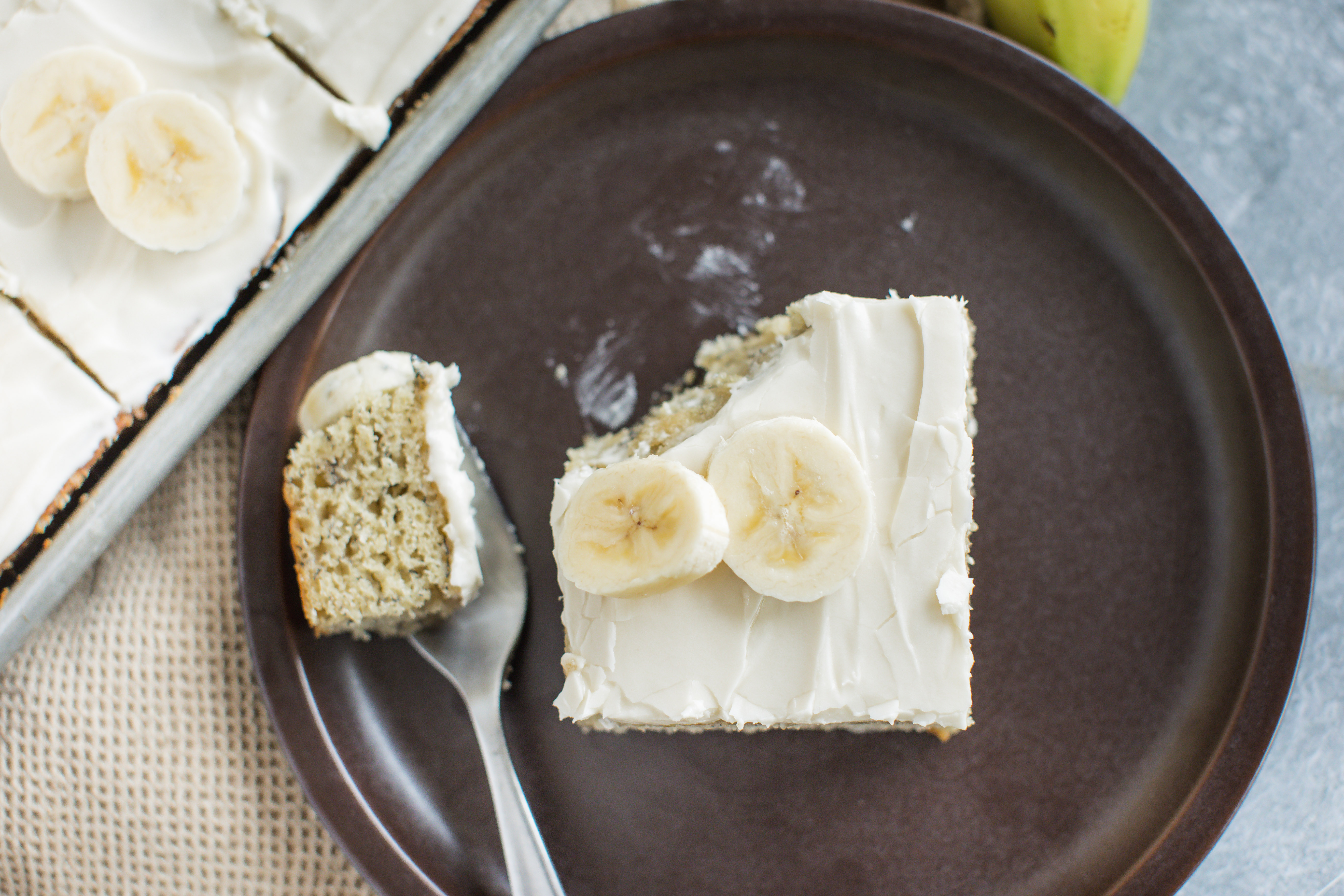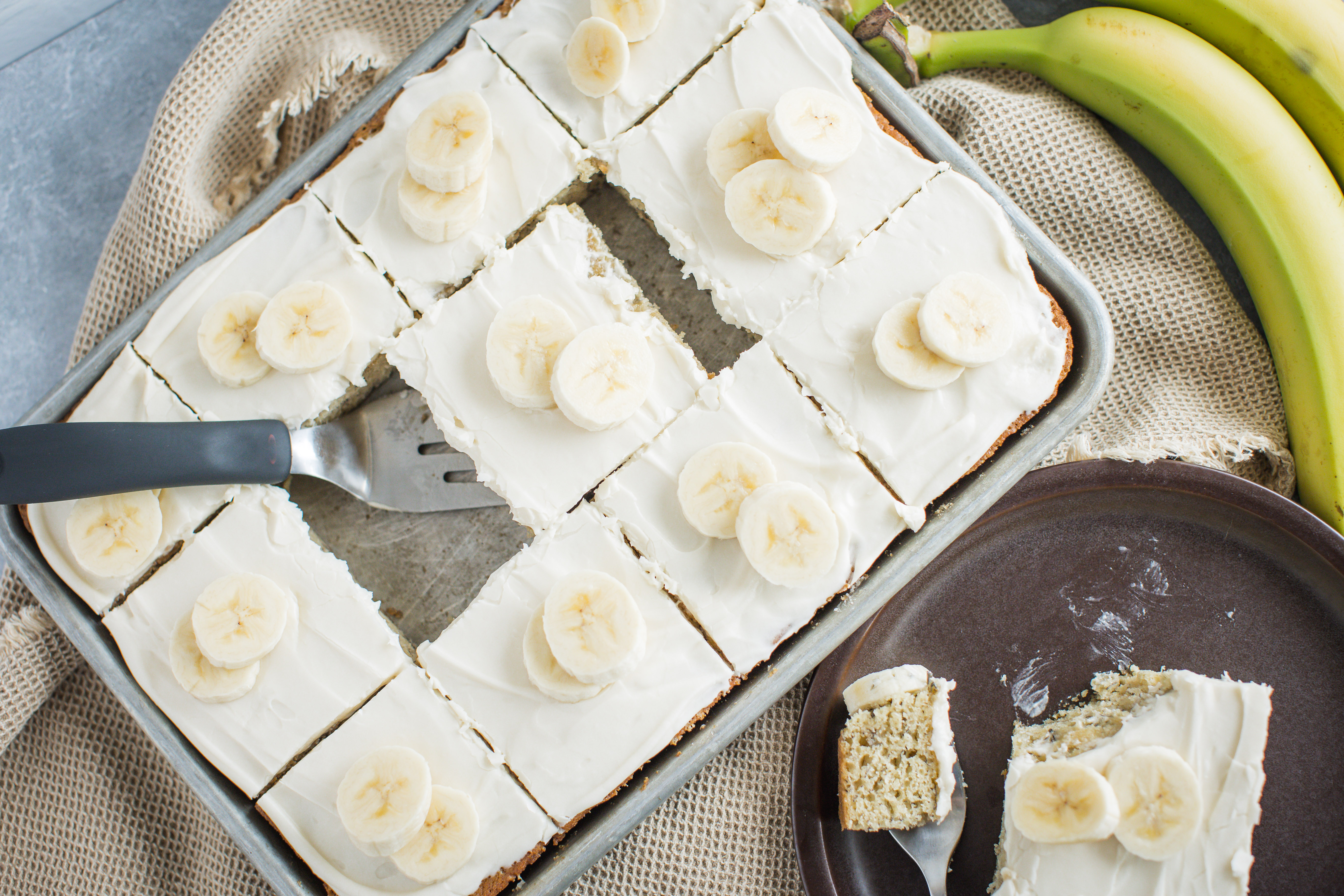 You'll go nuts for these Banana Bars with Cream Cheese Frosting... and not just because they have crunchy pecans mixed in! The creamy, fruity banana flavor is infused into each bite of the tender cake, and is accented by the warm aroma of cinnamon. Meanwhile, all over the top is a creamy, luscious, tangy cream cheese frosting that makes each bar delectable and desirable. Oh yes, Banana Bars with Cream Cheese Frosting are perfect for sharing or for keeping all to yourself!