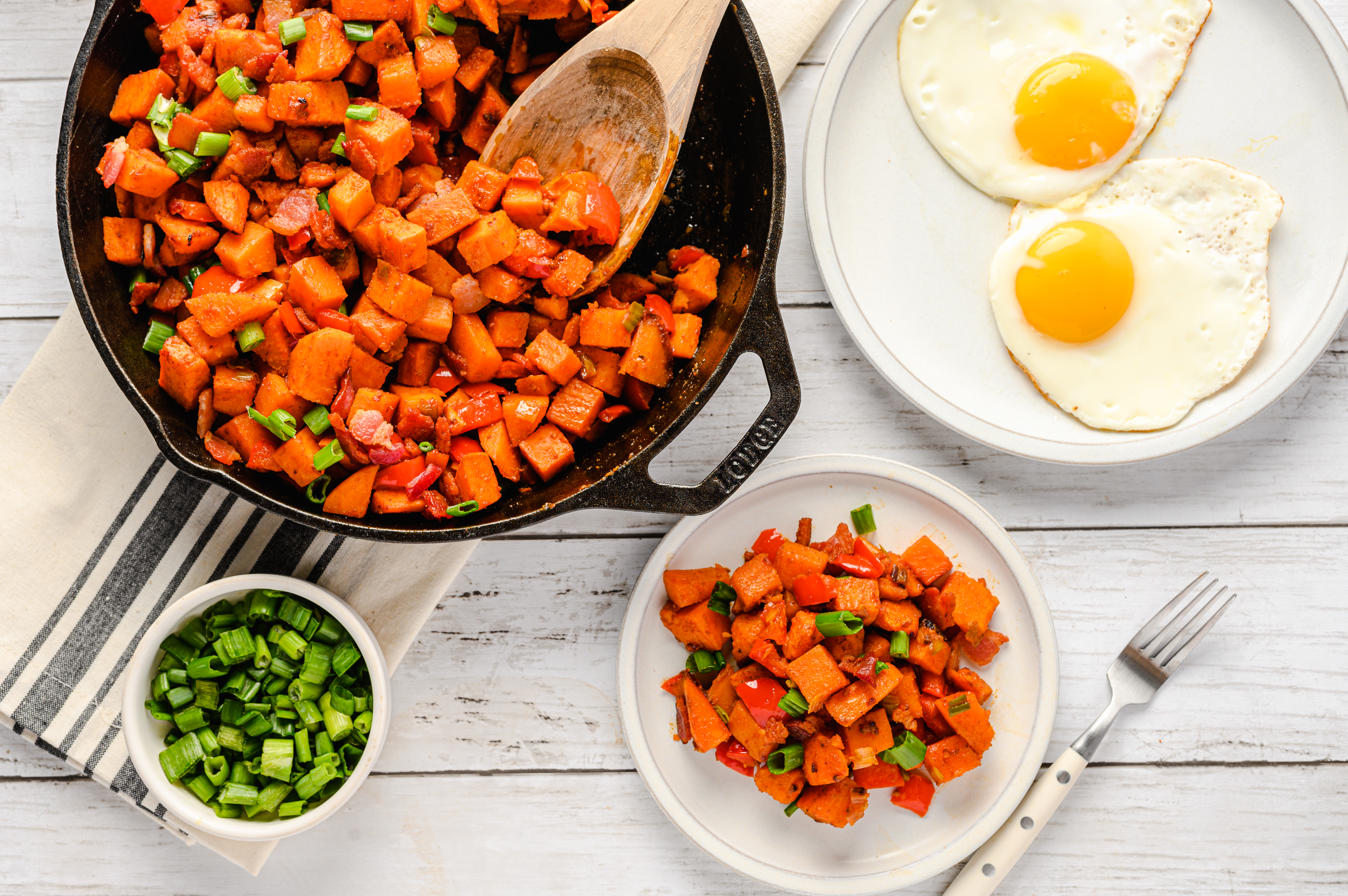 Waking up should be easy-peasy, but we all know it isn't that simple. You know what can be though? Breakfast. This Breakfast Hash showcases the caramelized sweetness of sweet potatoes, the savory flavor of scallions, the succulence and crispiness of bacon, and some zesty seasonings to help you find your get-up-and-go, even during the toughest mornings! Plus, Breakfast Hash only takes 30 minutes to make. It can be a good morning after all!