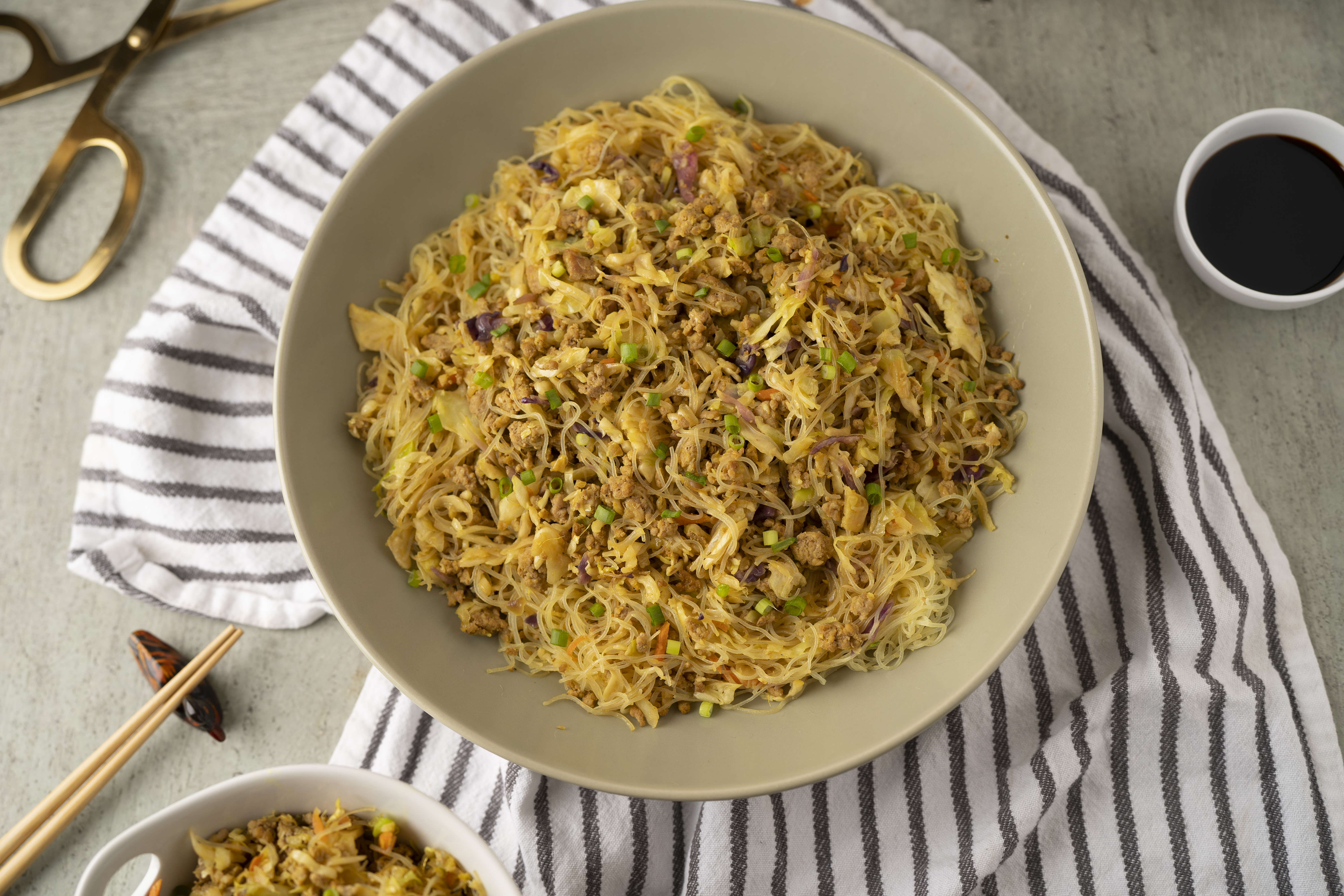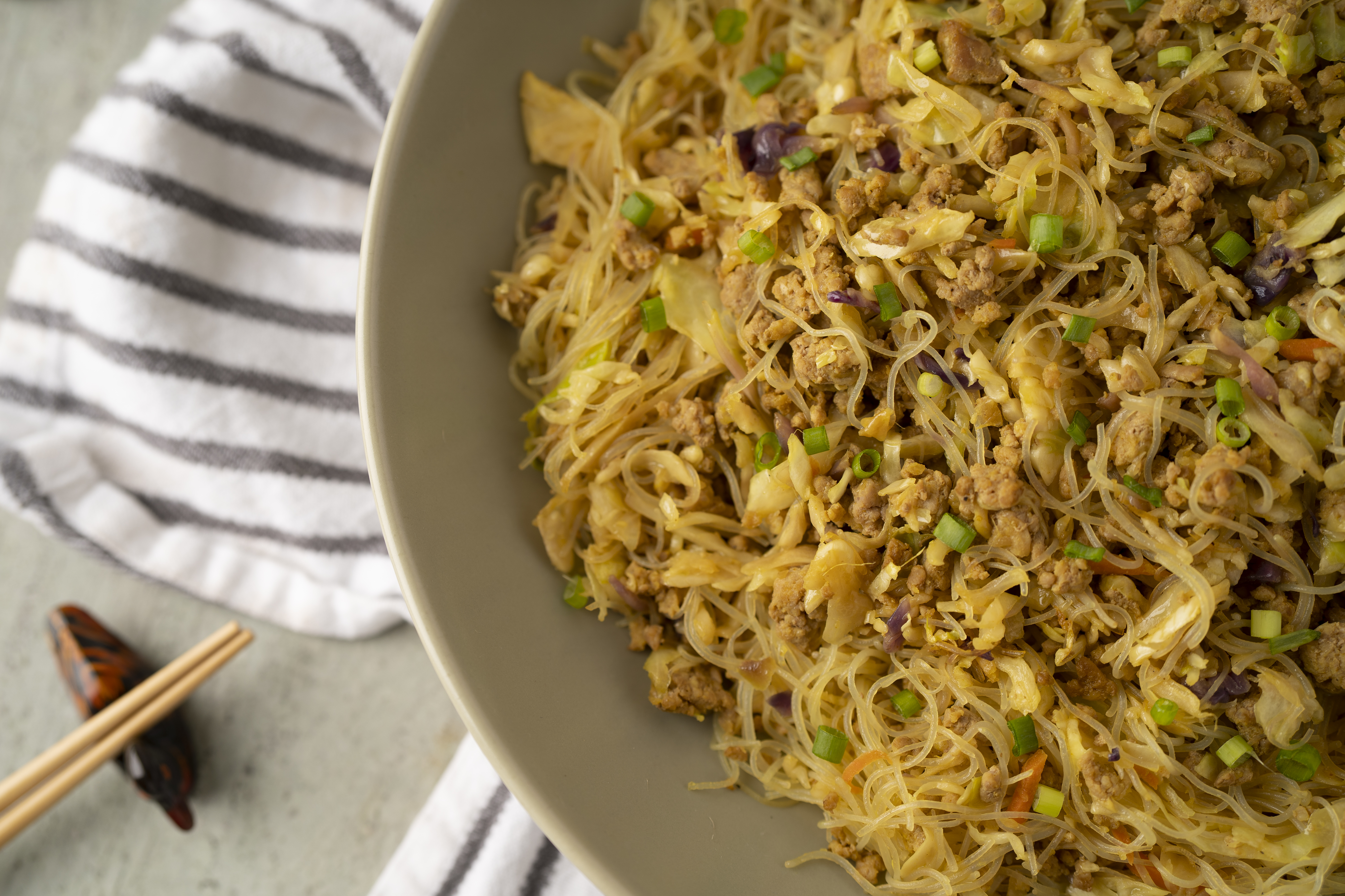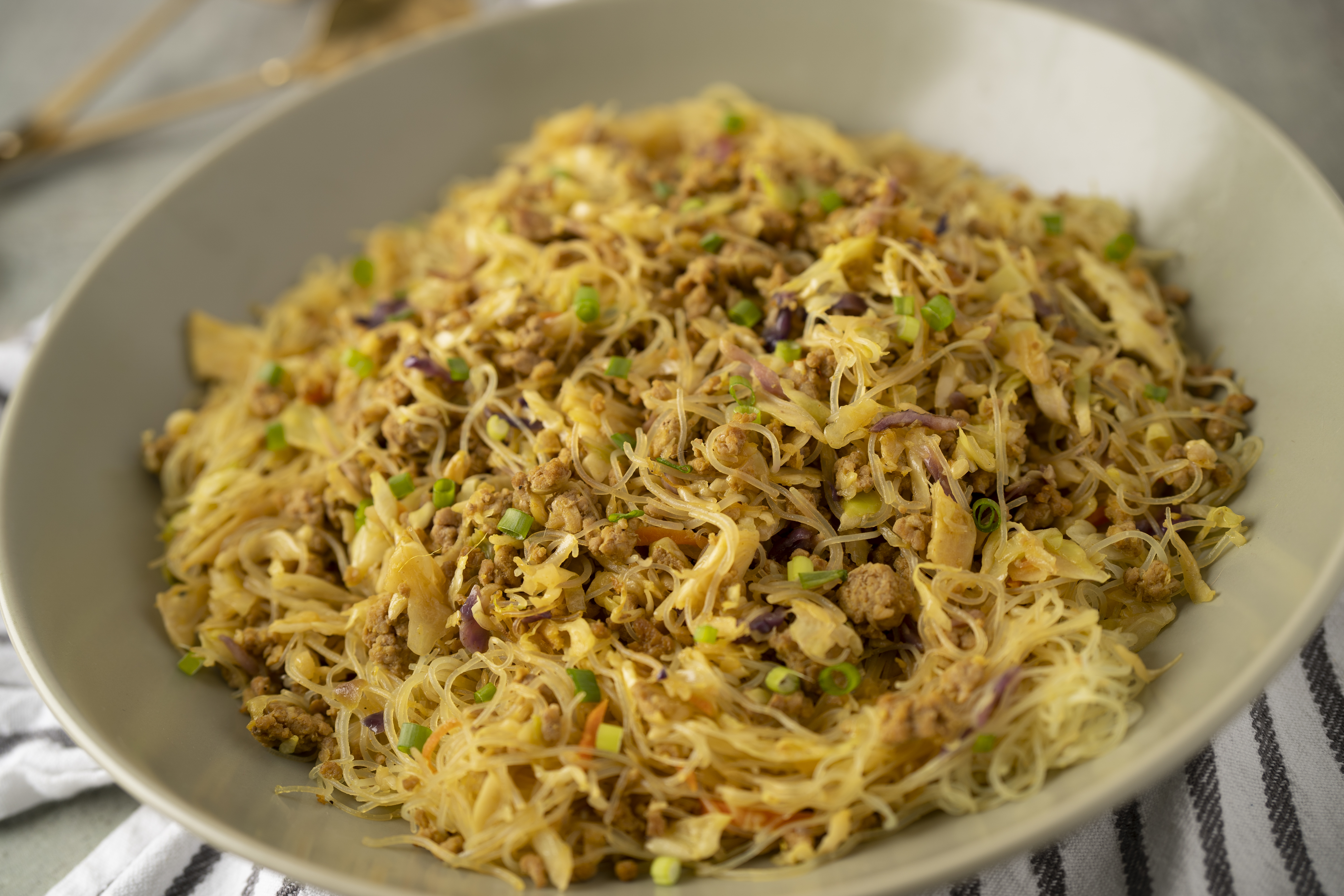 If you're looking for a way to incorporate your favorite Chinese foods into your lunchtime without too much guilt, then this Cabbage Egg Roll Bowl is the one for you! Get ready to recharge at noon with a bowl overflowing with juicy pork, tender veggies, and bouncy rice noodles. Yum! The way the tangy, savory sauce soaks in and brings the flavor will make you excited to power through the rest of the day. Who's ready for lunch?! We know Cabbage Egg Roll Bowl is!