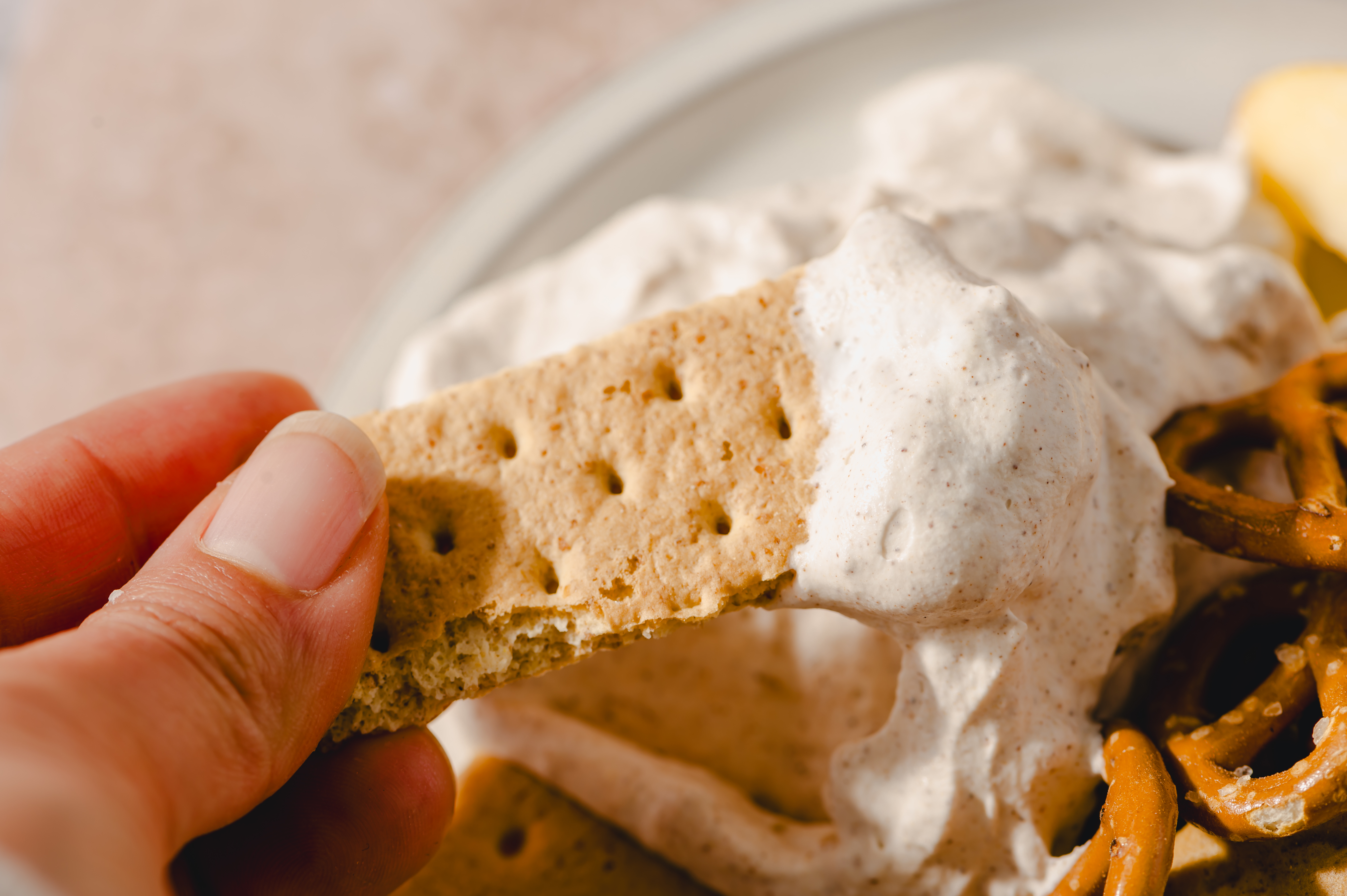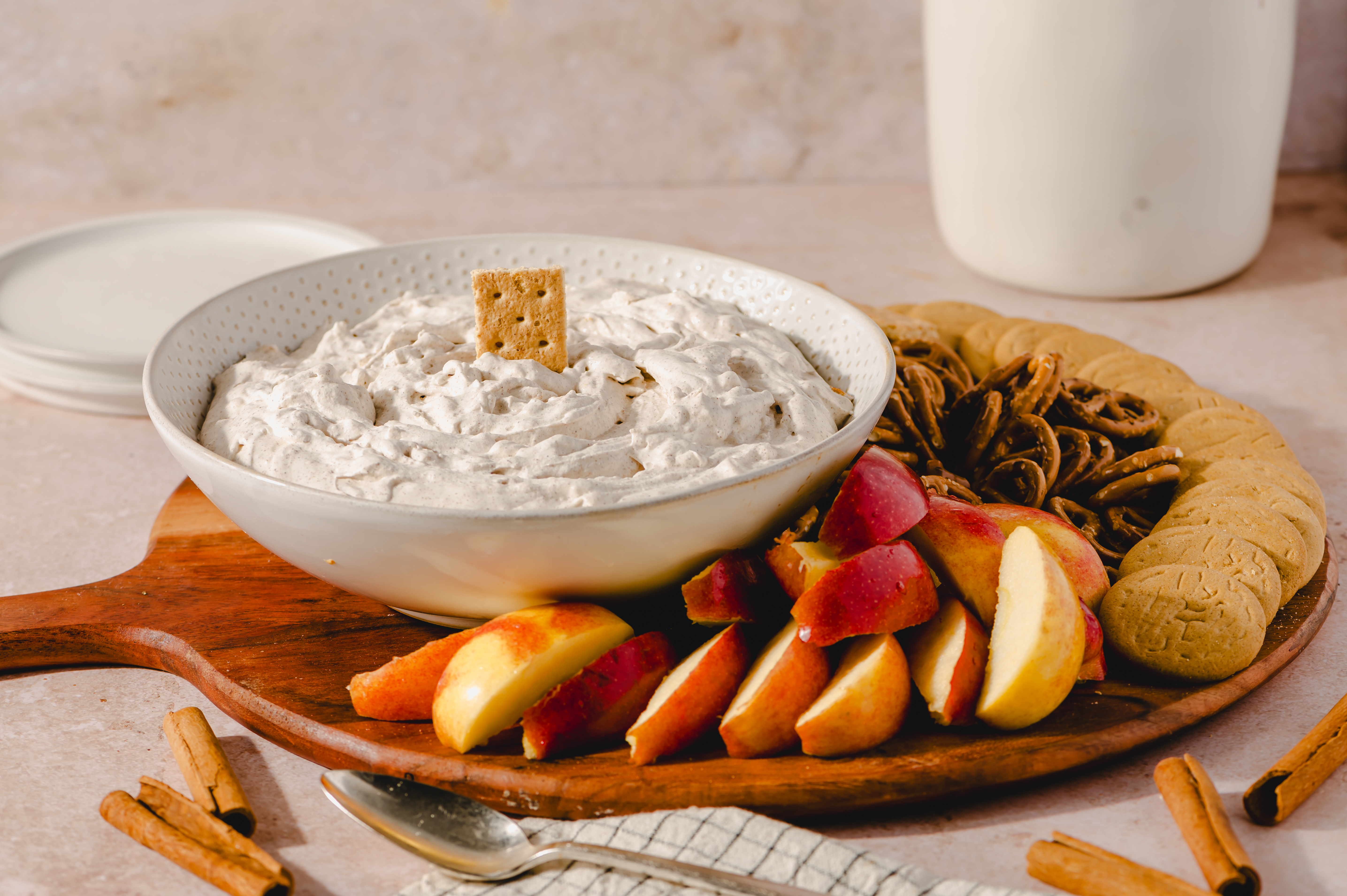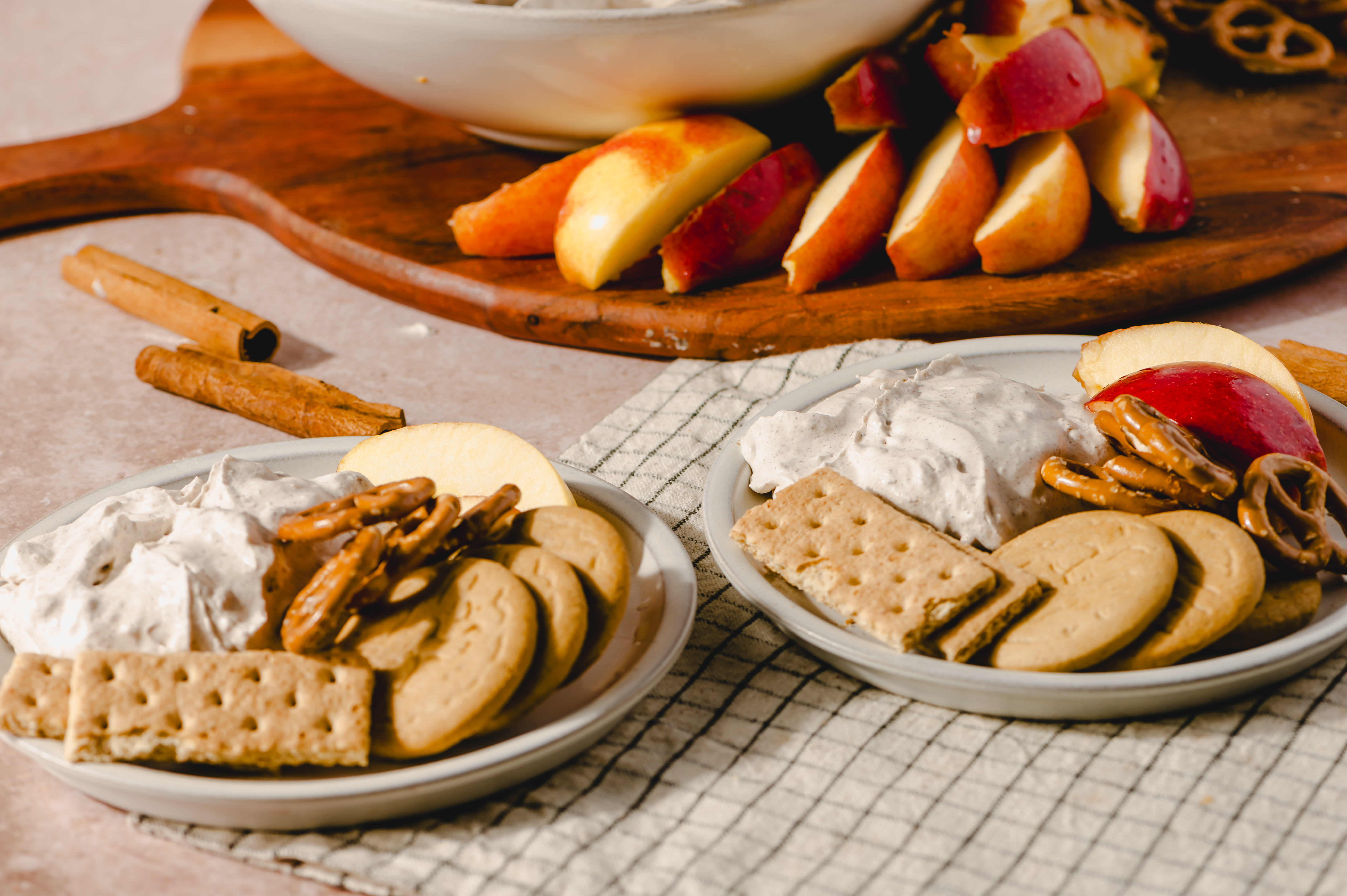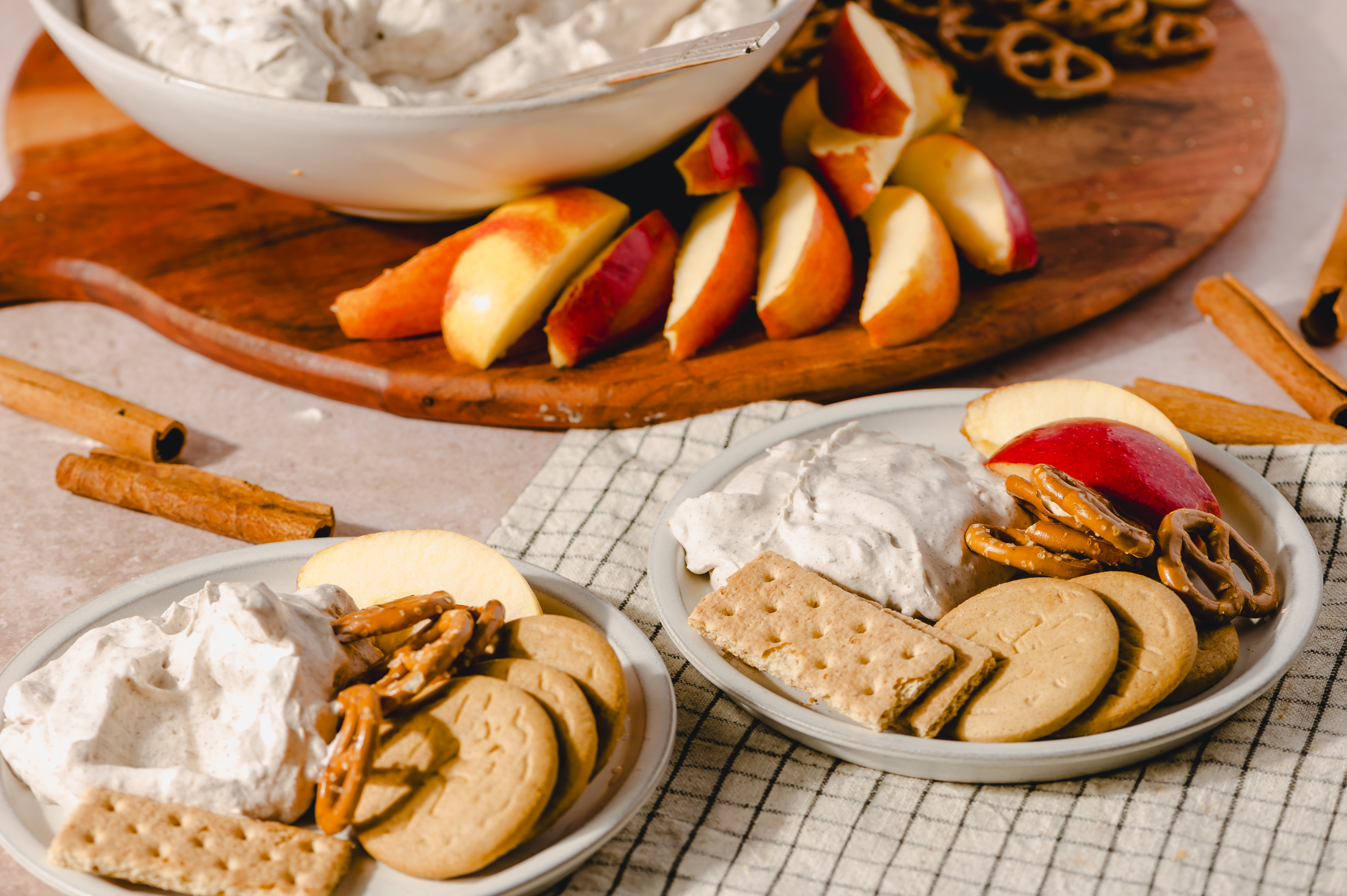When you are yearning for the taste of a cinnamon roll, but just don't have the ambition to make one, there's a quick alternative. Cinnamon Sugar Dip creates the flavors you crave in a lot less time! Whipped cream, cinnamon, and a hint of vanilla are blended with cream cheese and confectioners' sugar to create a cinnamon-roll-lover's dream! With your favorite dippers, Cinnamon Sugar Dip will quickly become a new favorite dessert (or even brunch) treat! Just roll with it!