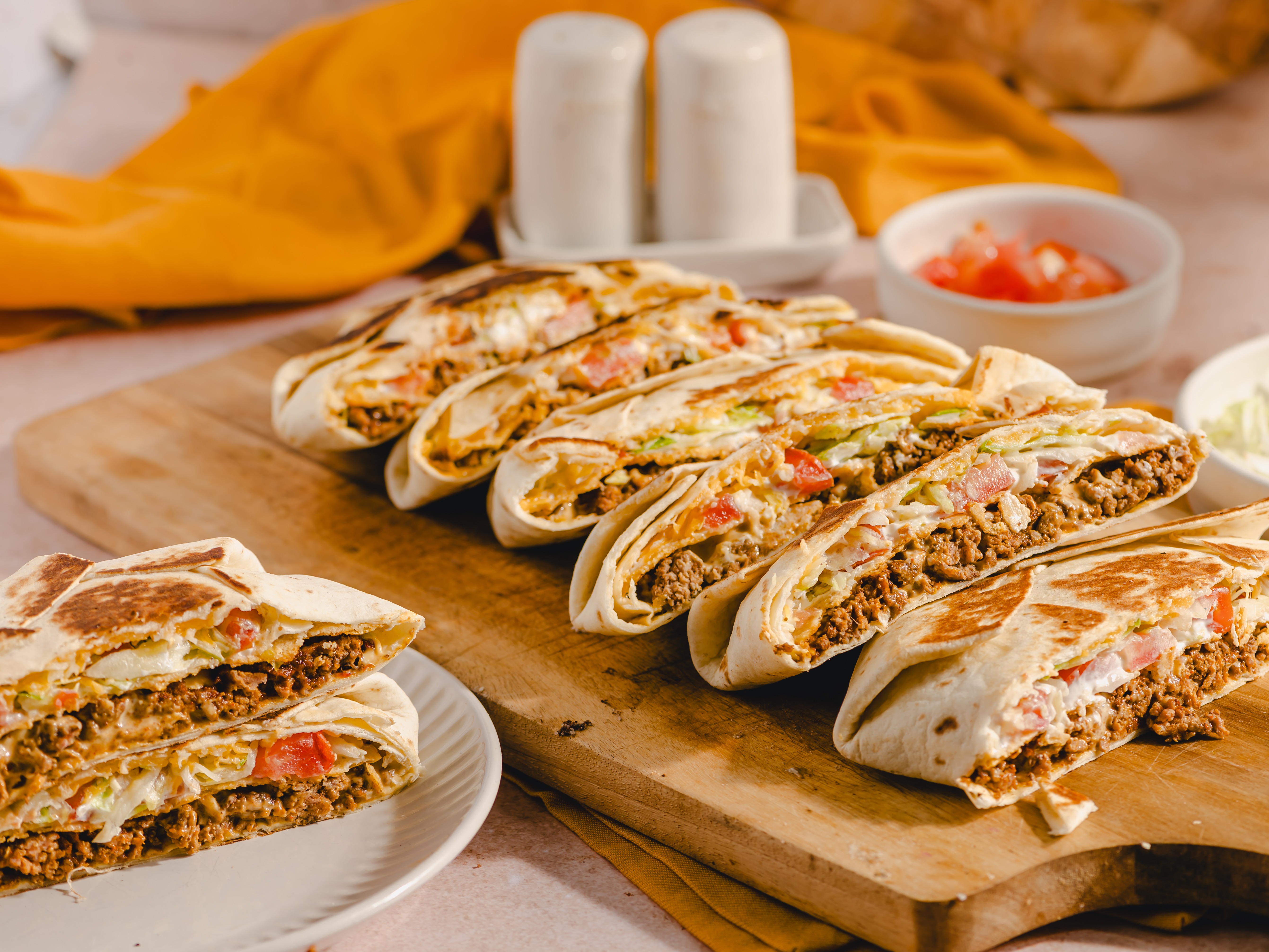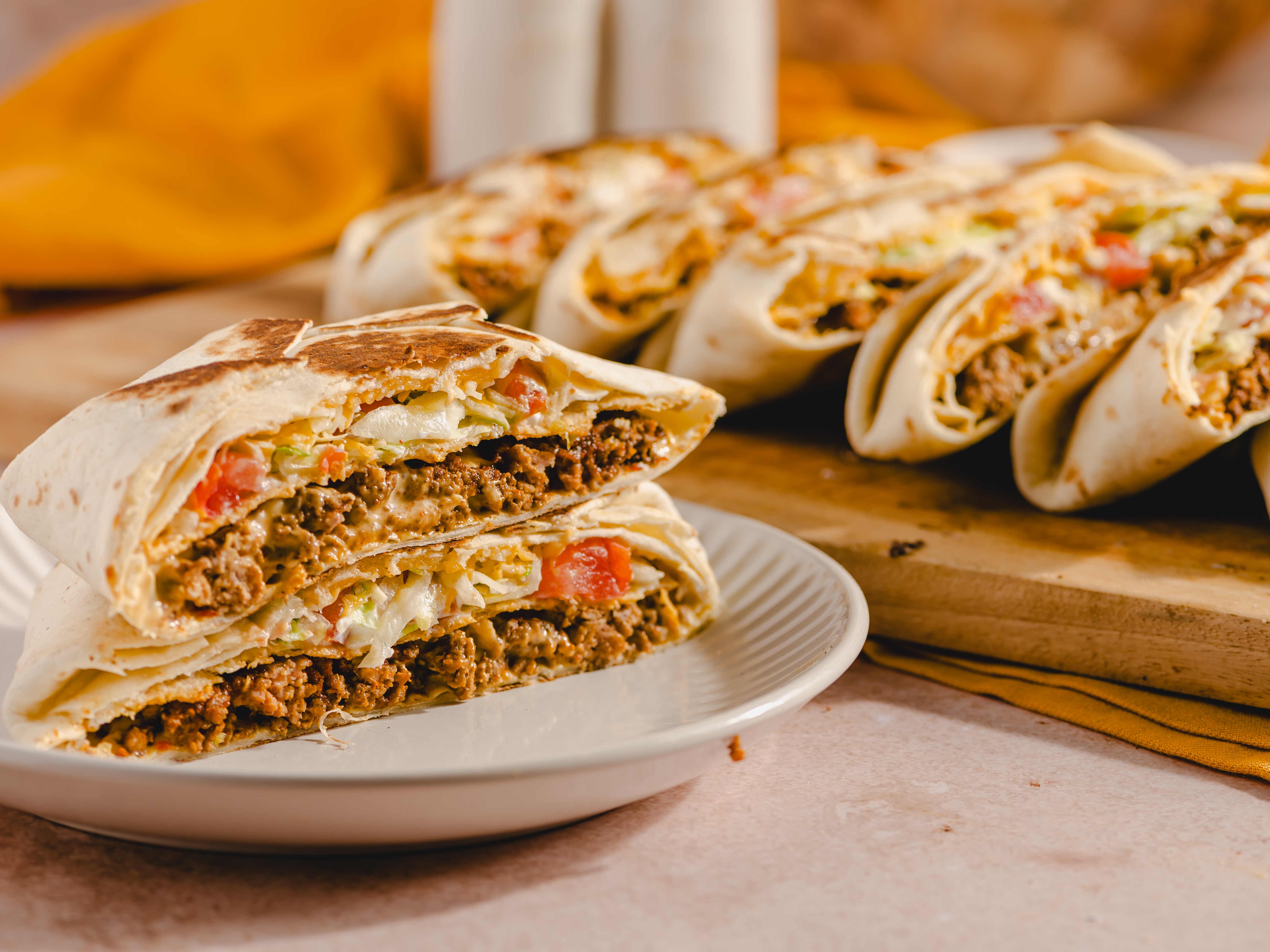 When the drive-thru is calling your name, run to the kitchen instead! You'll be quite surprised just how delicious and fast you can make this Crunchy Beef Supreme at home. How could you ever resist soft tortillas shells all wrapped up around juicy beef, creamy cheese, with all your favorite fillings?! It's way better than anything you can buy already packaged! Stay home and enjoy the fresh stuff with Crunchy Beef Supreme!