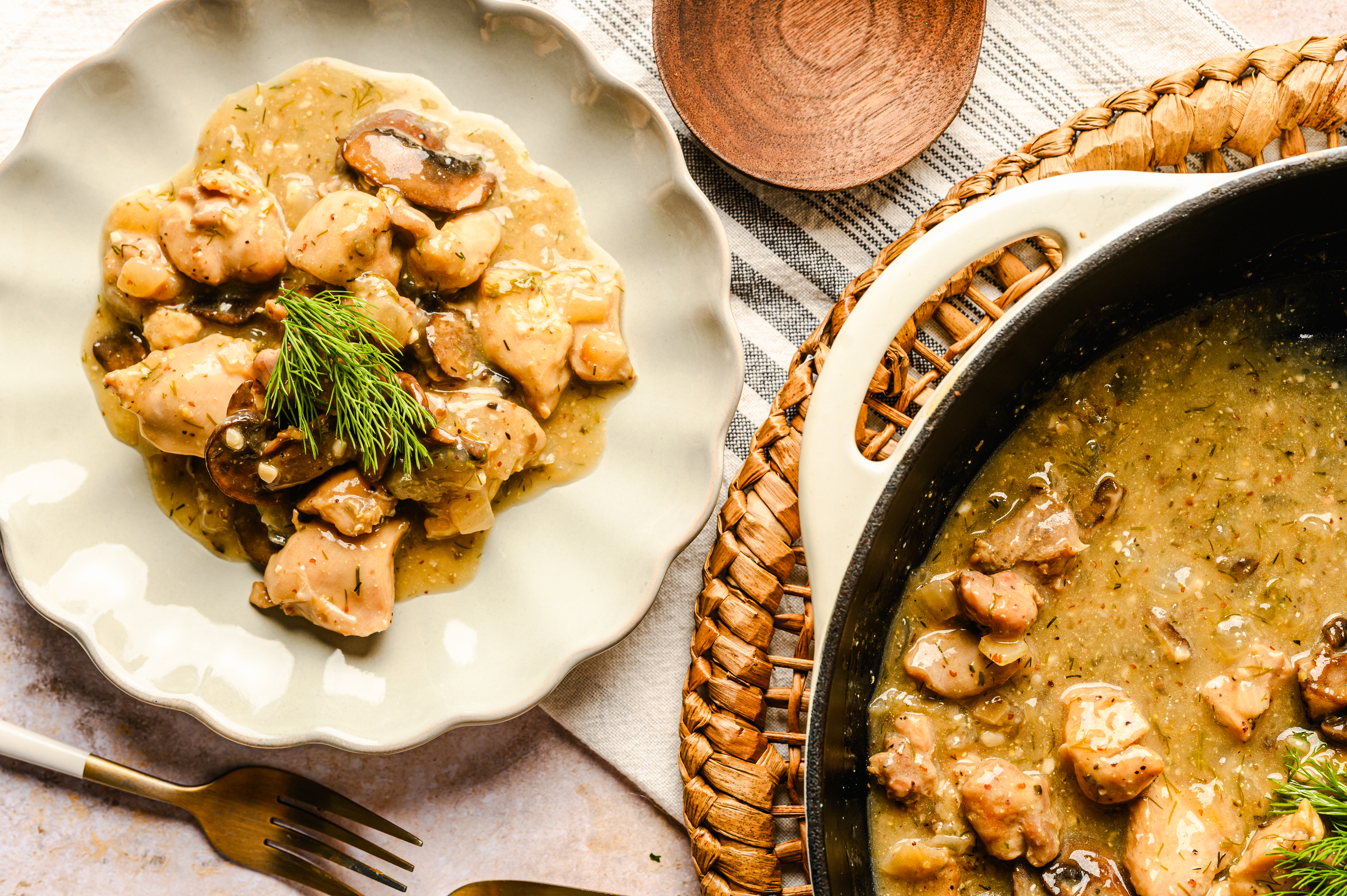 Desserts aren't the only dish people dream about! In fact, some of those more inclined to savory might find their thoughts gravitating towards Dream Chicken! Mmmm, you can just taste it already; tender bites of chicken and beefy mushrooms, sautéed in a creamy, tangy, poultry-infused sauce, with refreshing notes of dill mixed in. This isn't just the dinner of your dreams; this is the dinner other dinners dream about, too! Let Dream Chicken become the meal that you can't stop dreaming about!