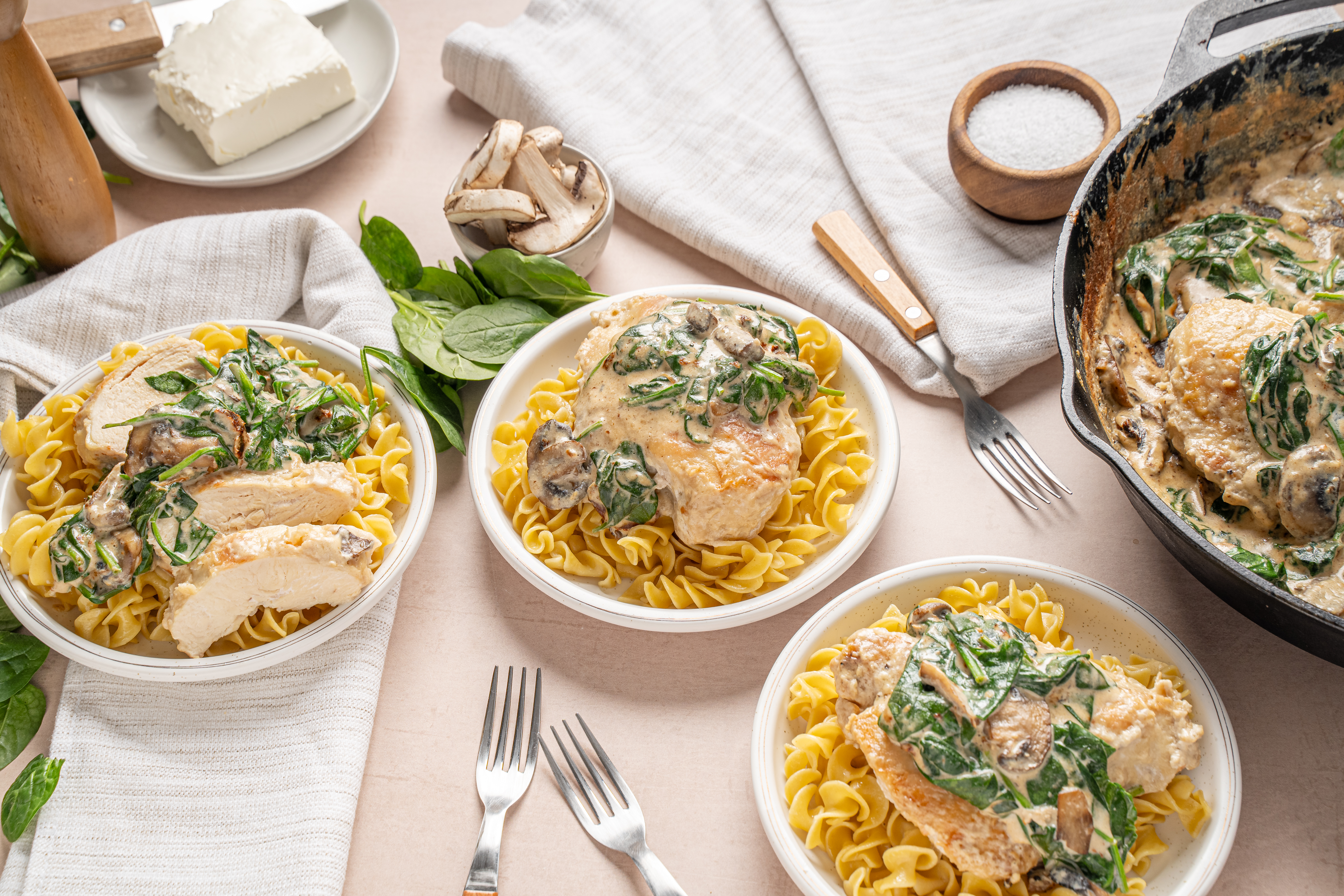 A fine dining experience doesn't have to be hard to achieve! Easy Creamy Spinach Chicken makes things... well, easy! The chicken is tender and savory, braised in a creamy, tangy, and mushroom-infused cream cheese and spinach sauce. With so much poultry flavor in a single skillet, Easy Creamy Spinach Chicken will amaze you from the first bite! So easy and yet so tasty!