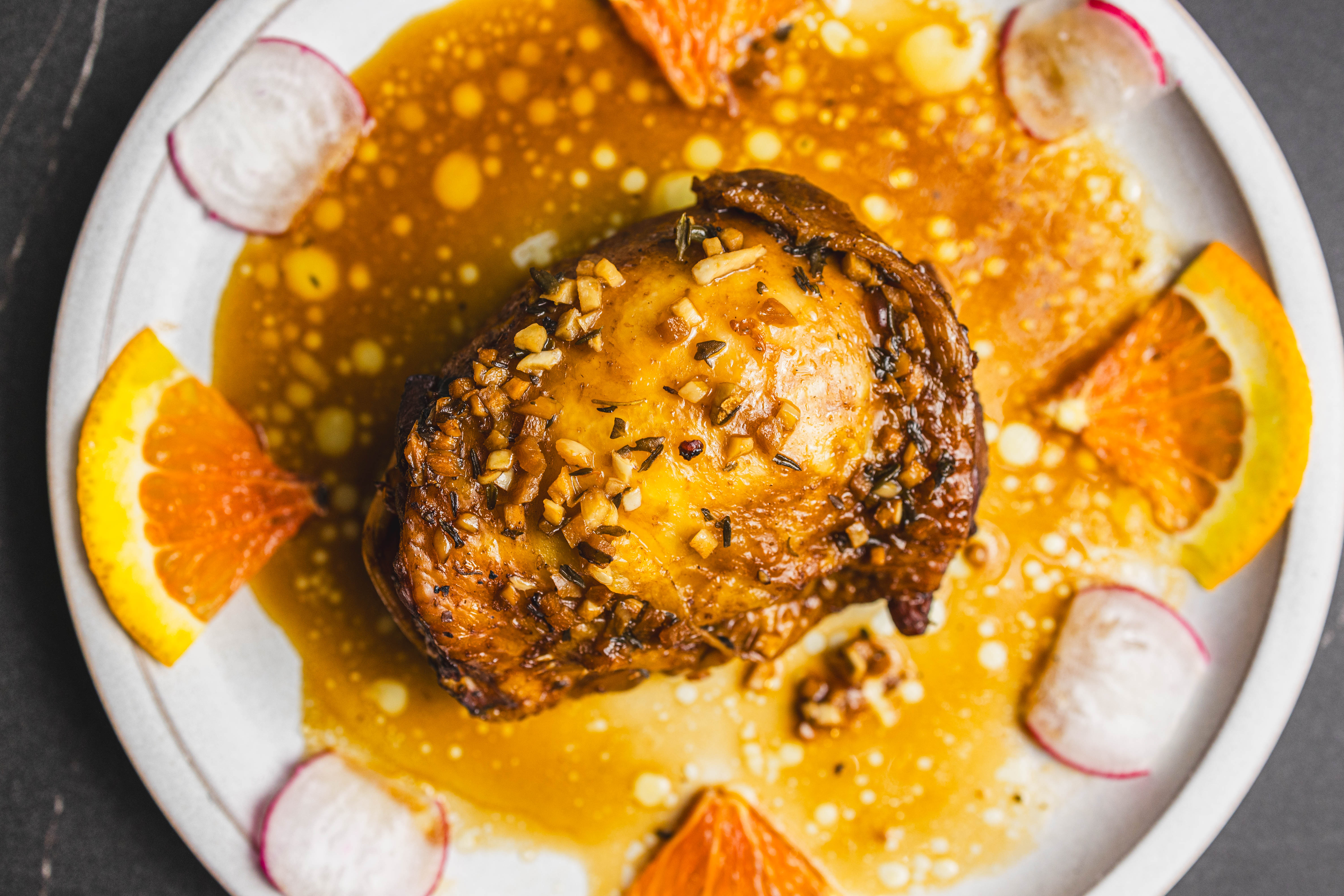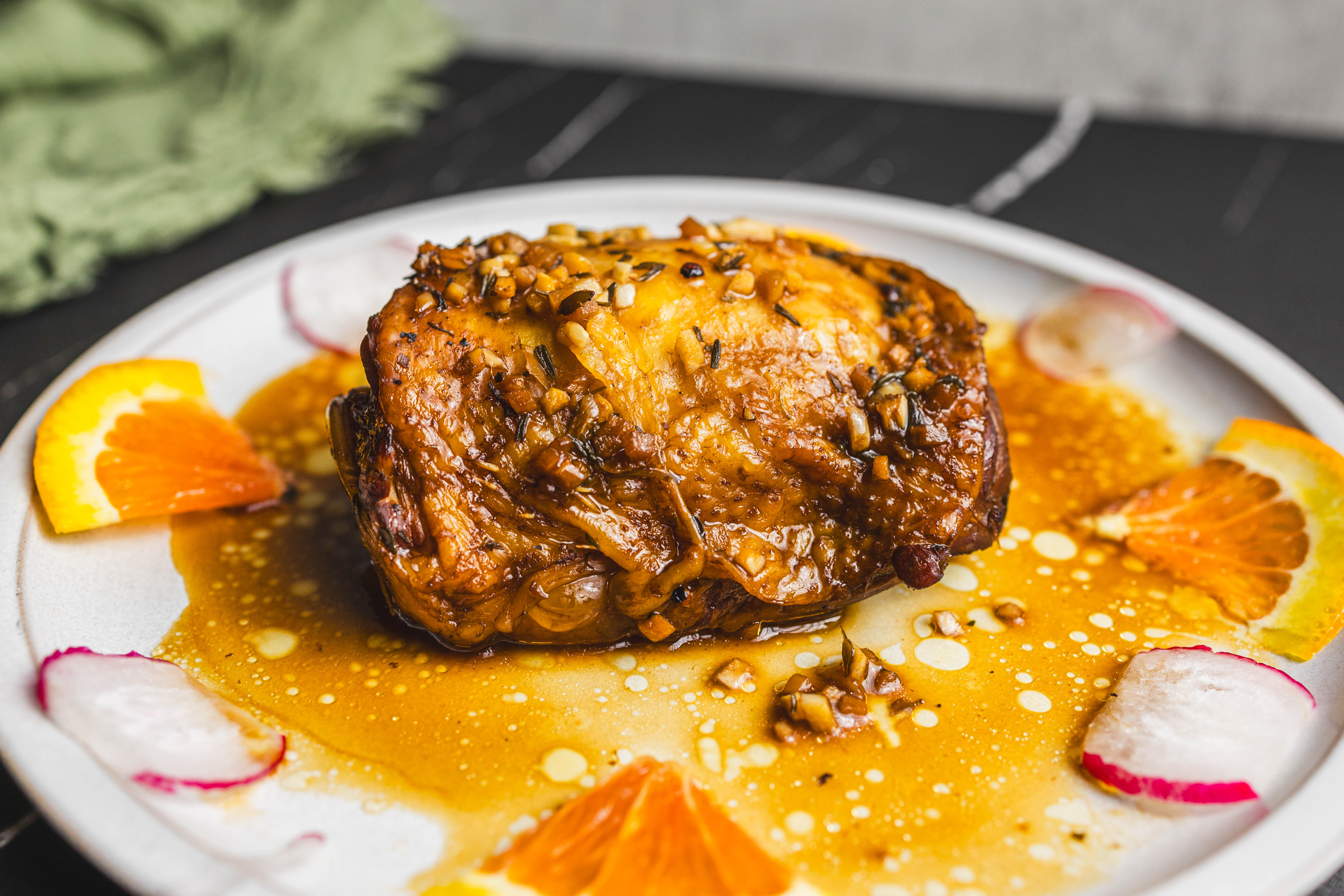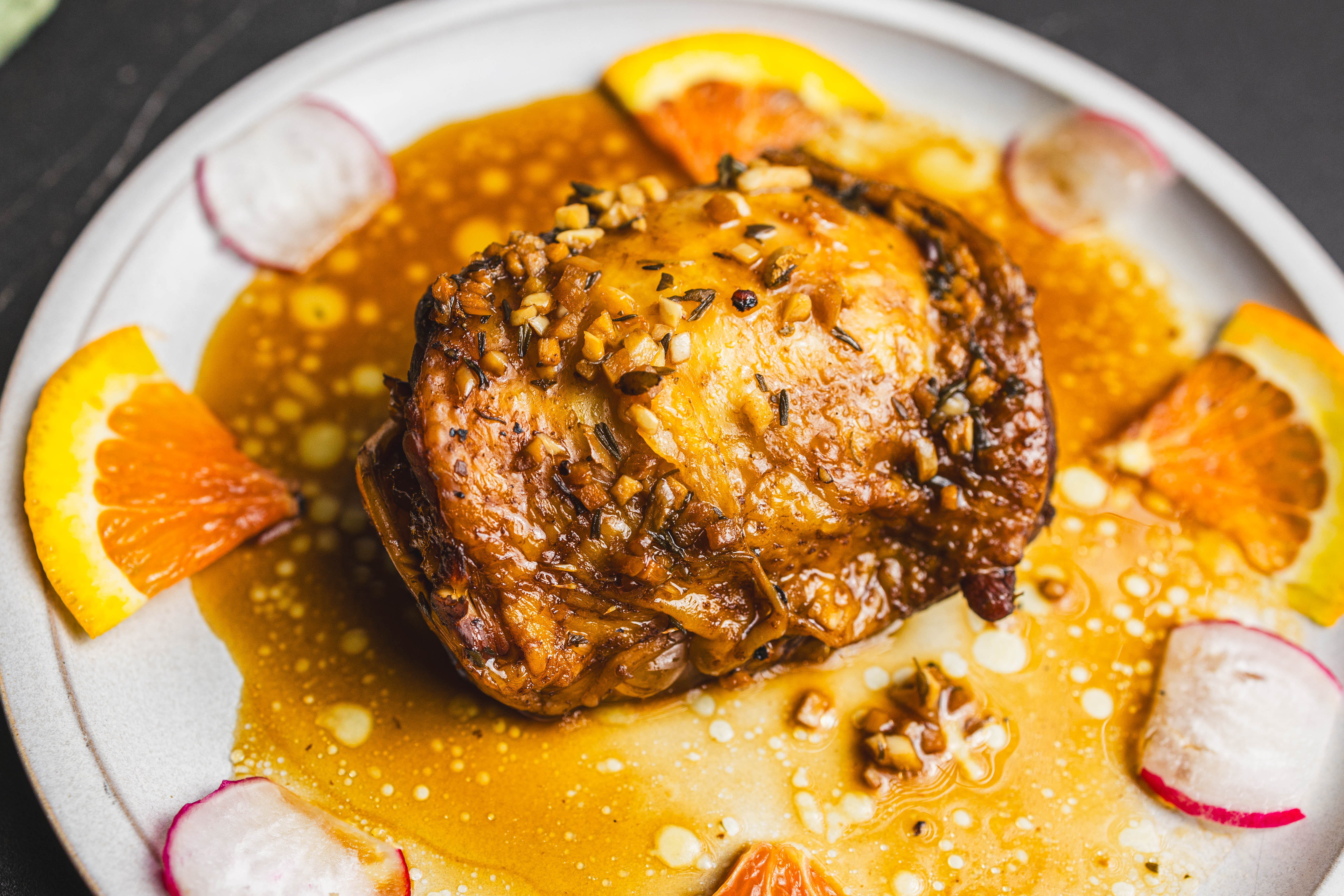 The glaze on Easy Glazed Chicken Thighs is something to behold! So sweet, bright, tangy, and savory! Mmmm, those succulent thighs will never know what hit them... and neither will your taste buds! Easy Glazed Chicken Thighs come with pungent and sweet radishes for a delightful side that pairs wonderfully with the bold glaze flavors! You don't want to miss this dish!