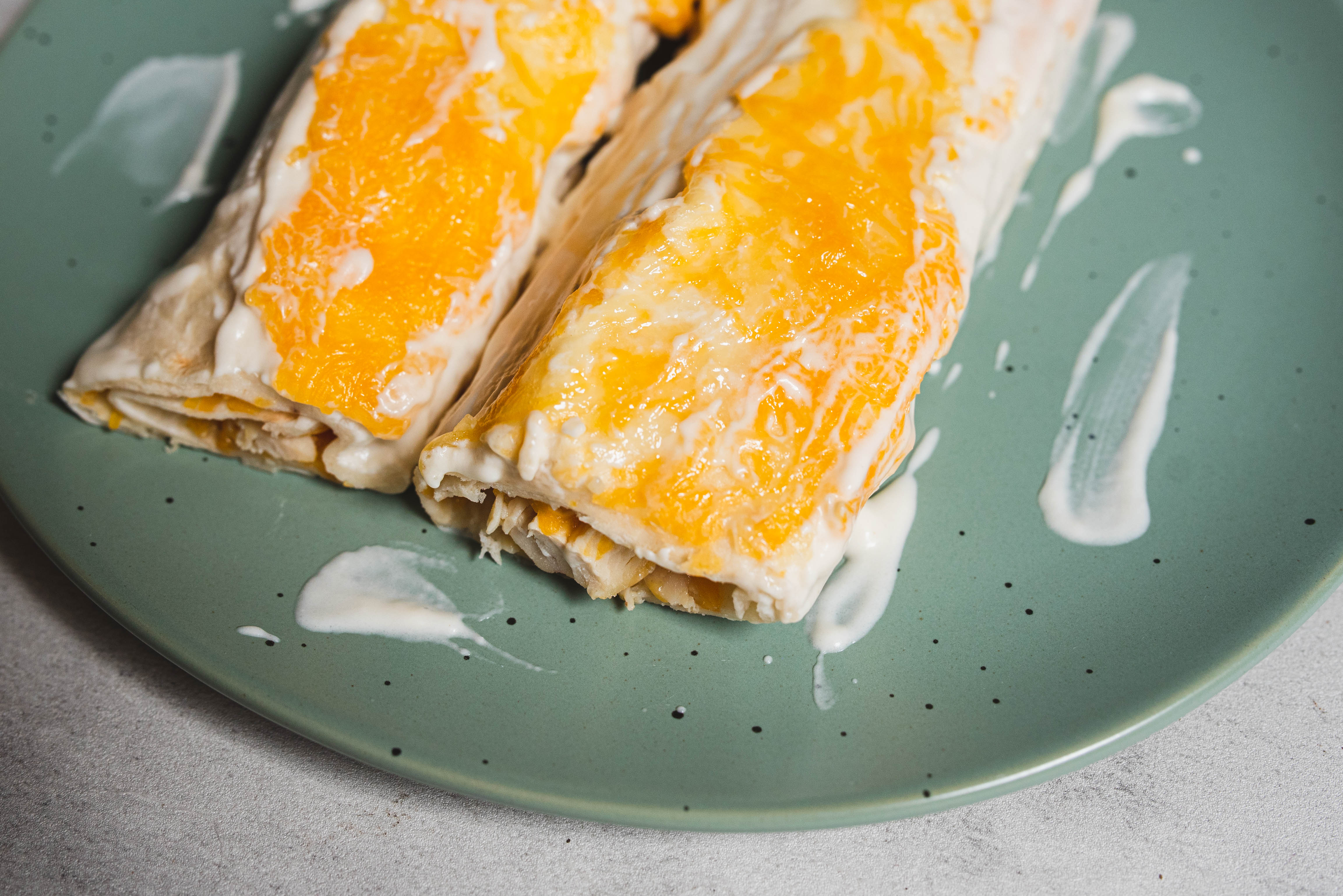Step 12 -Pour the remaining sauce over the filled tortillas, then top with the remaining cheese.