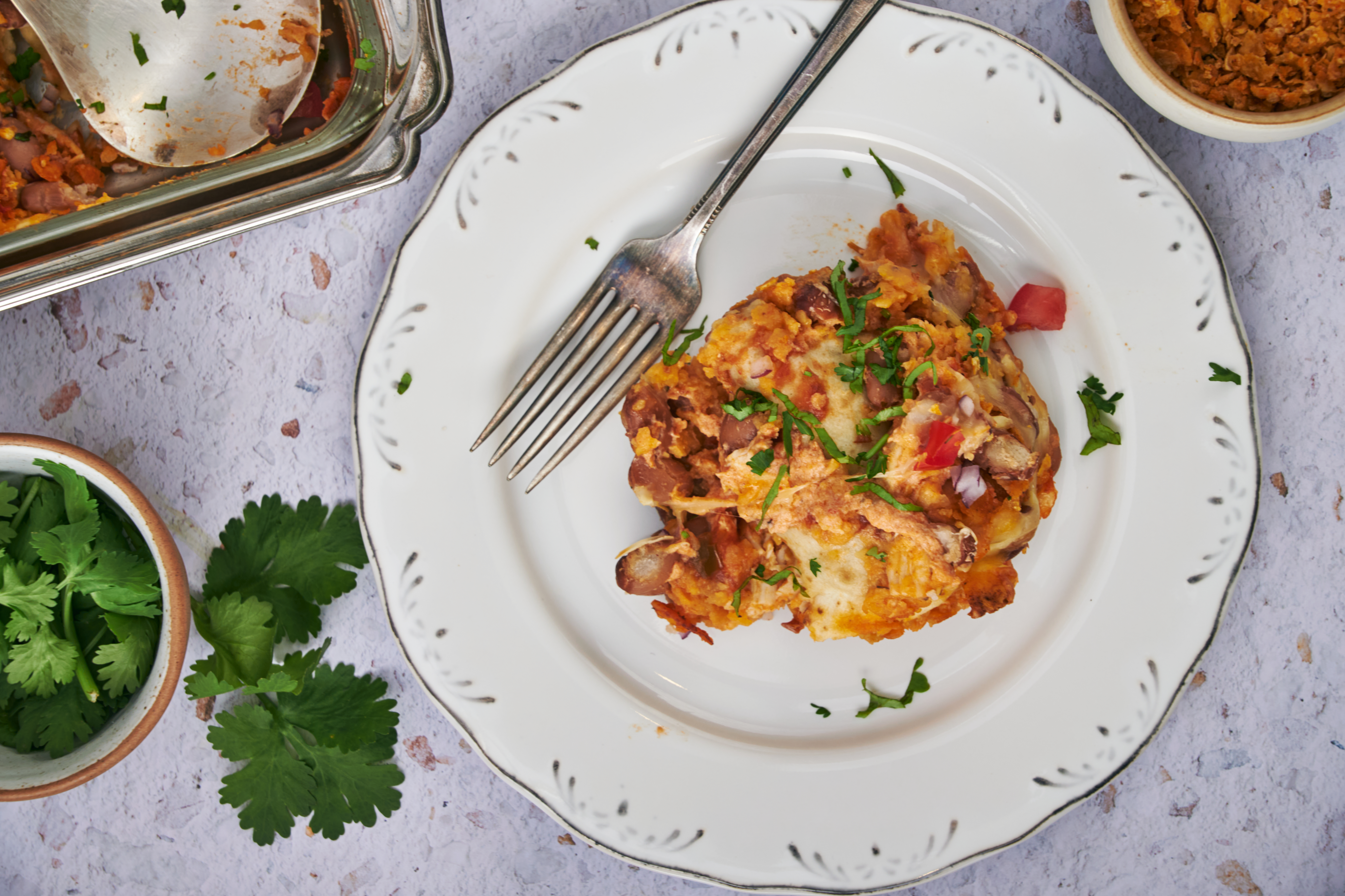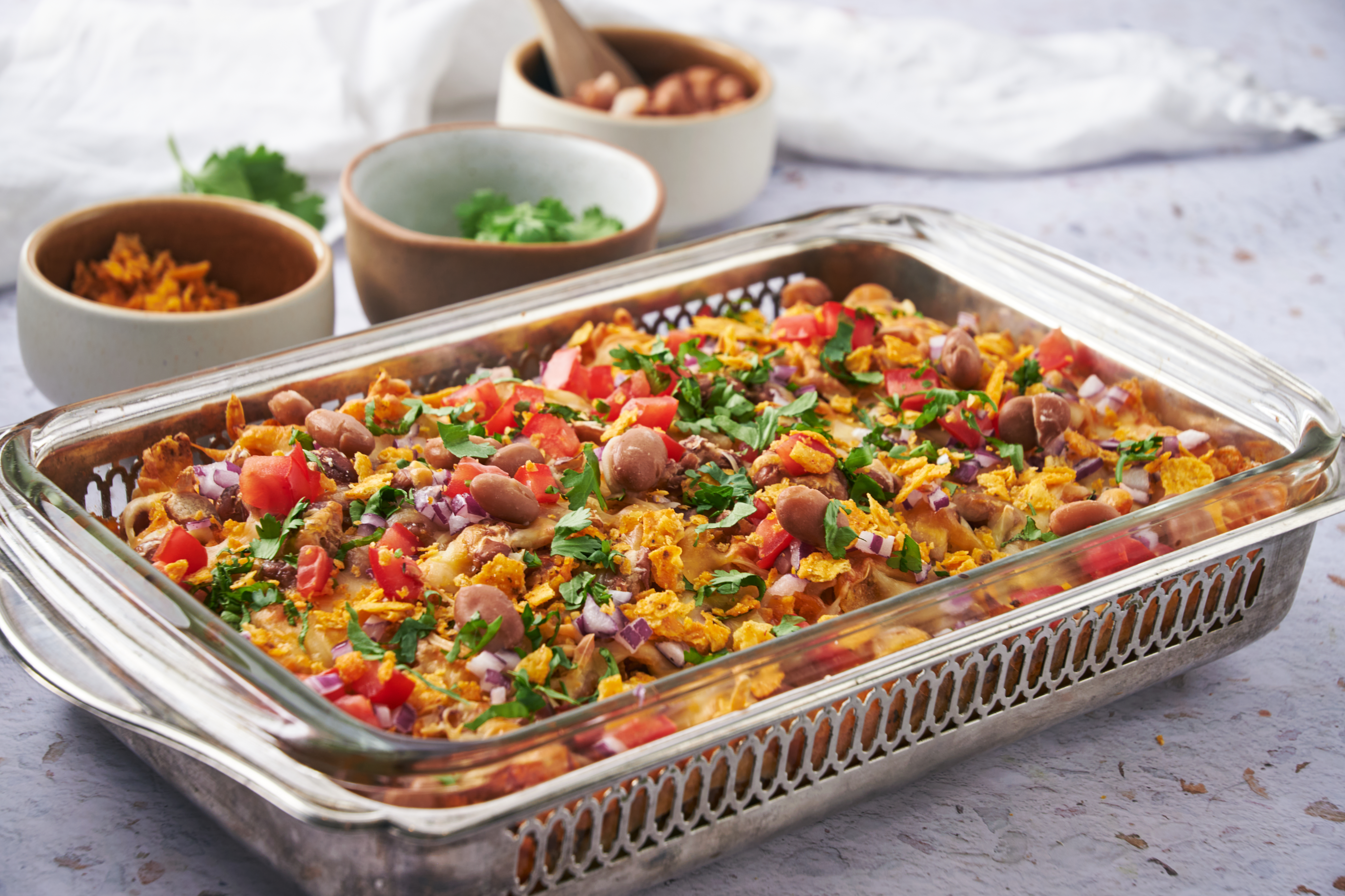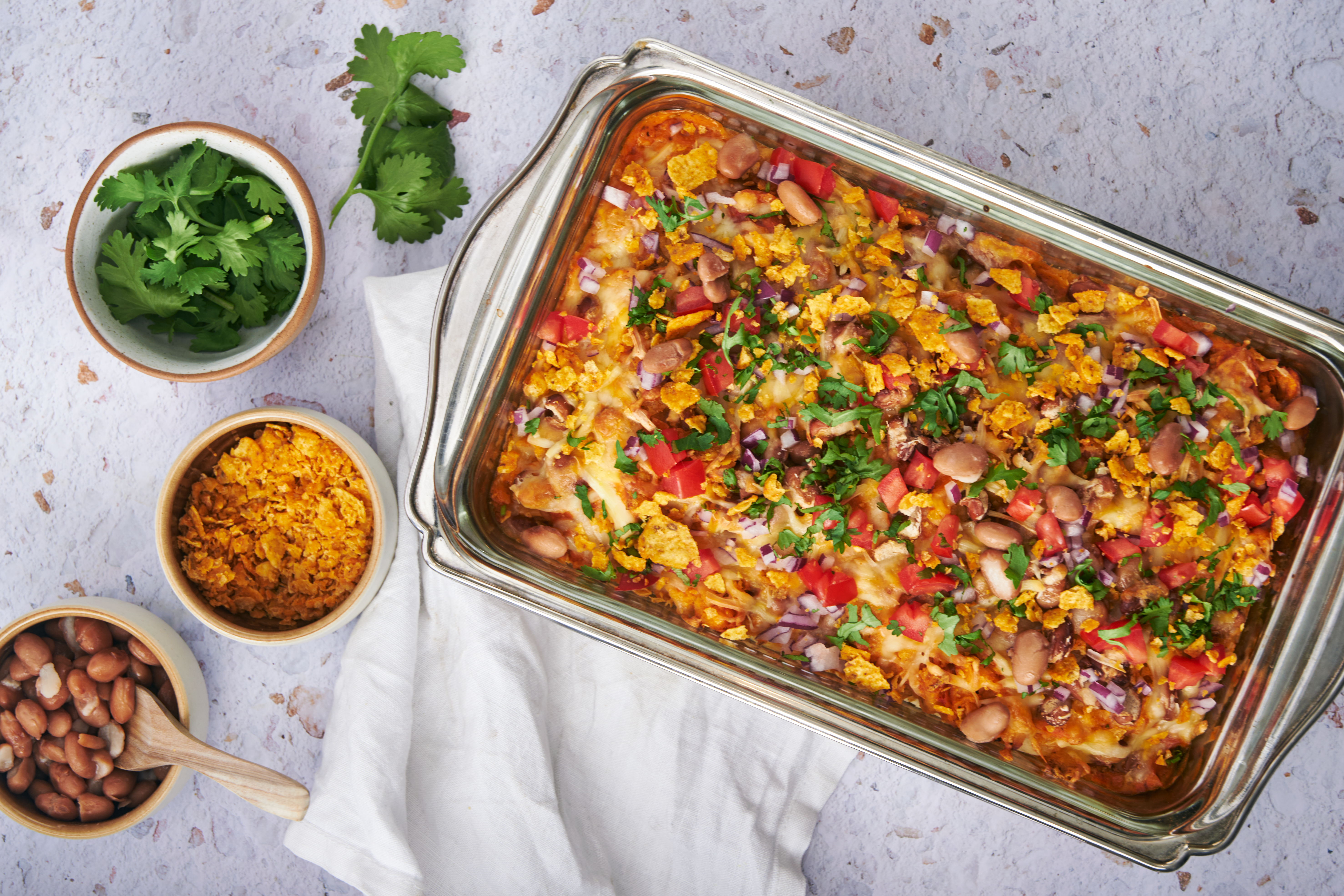 Why is it called the Famous Kid Bake? Well, because kids just can't get enough of it! Seriously! Every bite is ooey-gooey, tangy, creamy, and cheesy, stuffed full of vibrant Tex-Mex seasonings and flavors, and it has plenty of savory chicken to boot! And it's topped with nacho cheese-flavored tortilla chips! This feels like something a kid would create if they had unlimited power in the kitchen. So really, the Famous Kid Bake is giving the kids at the table their dream dinner!
