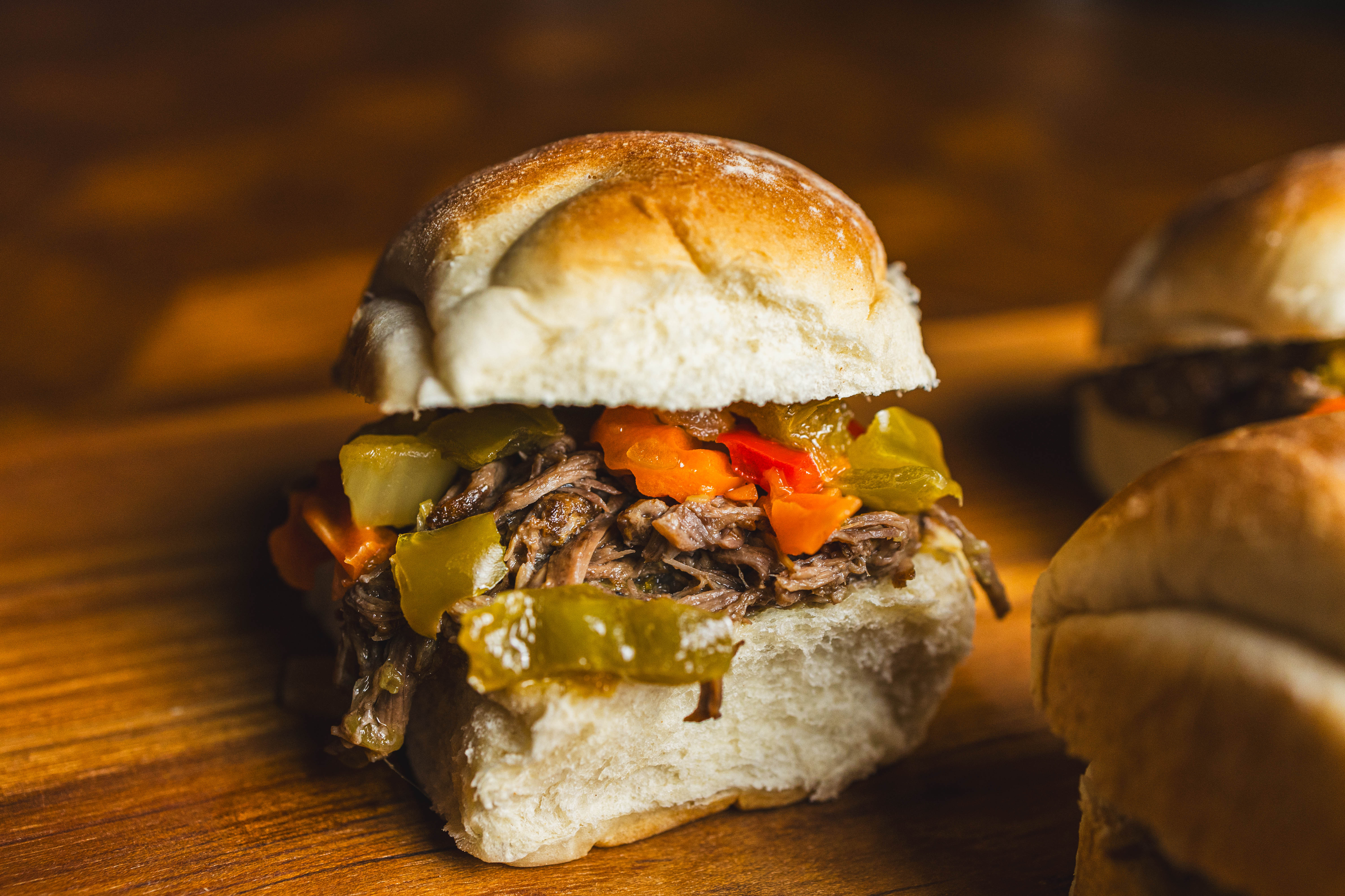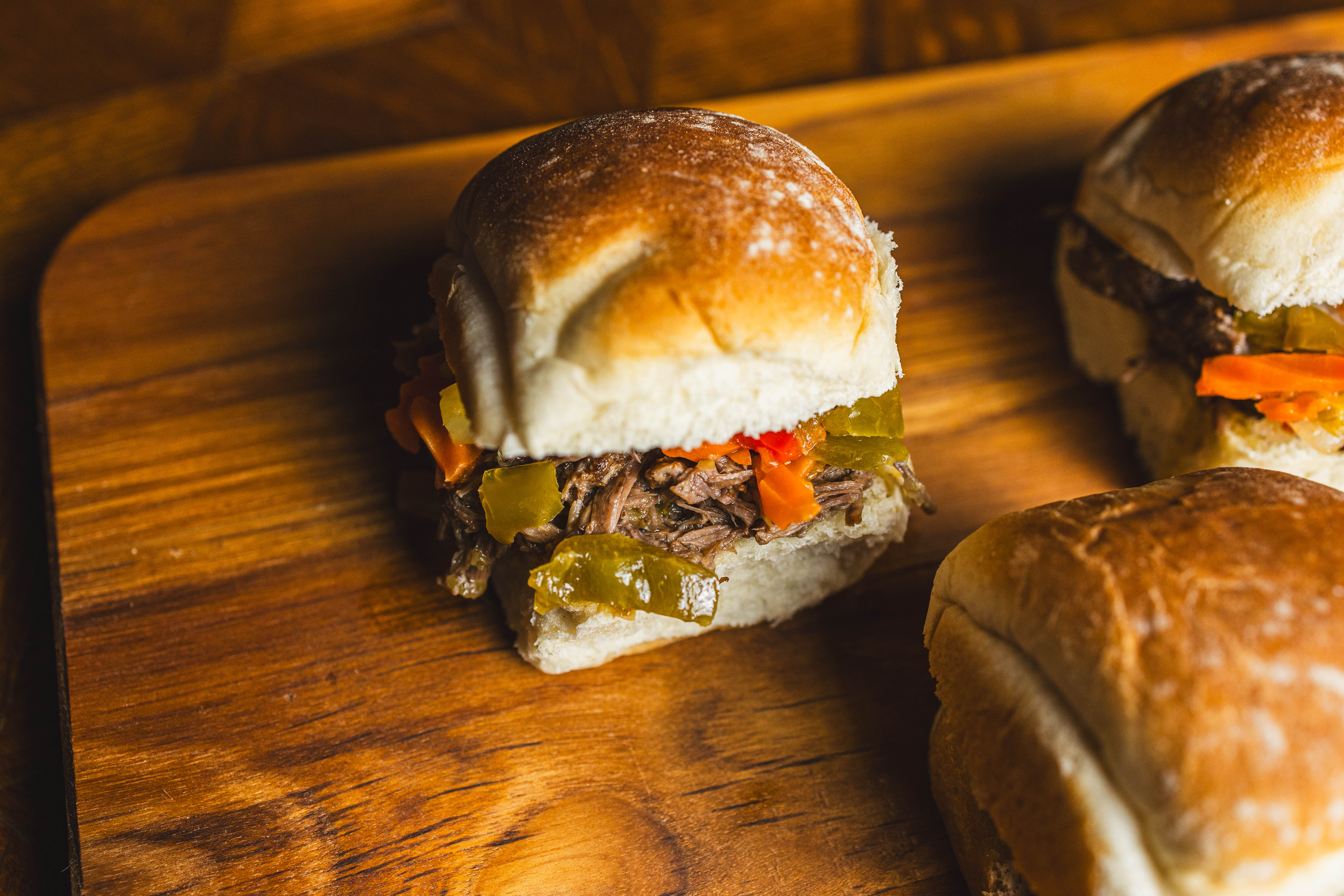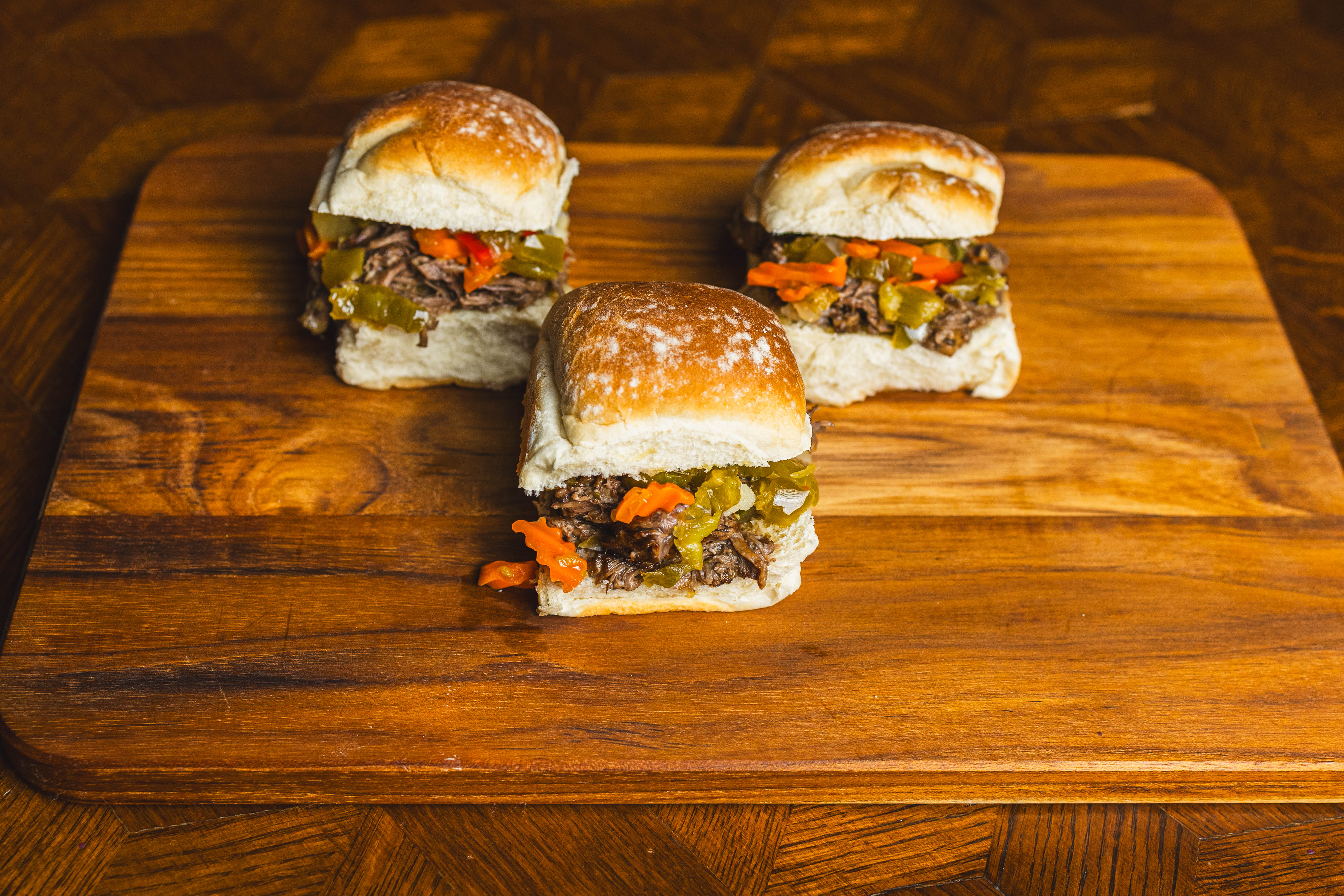 Step 10 -Serve on the rolls and top with the spicy giardiniera.