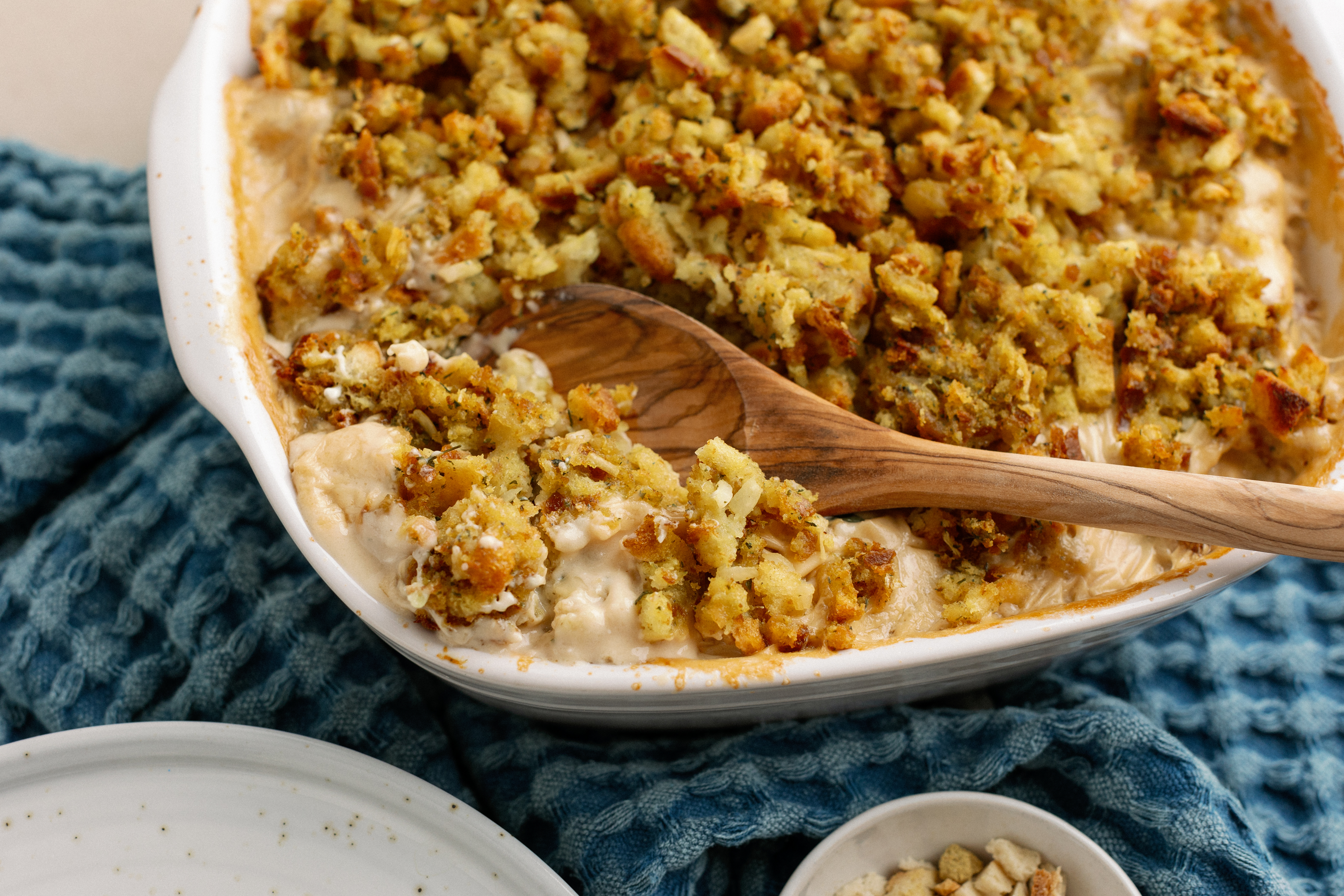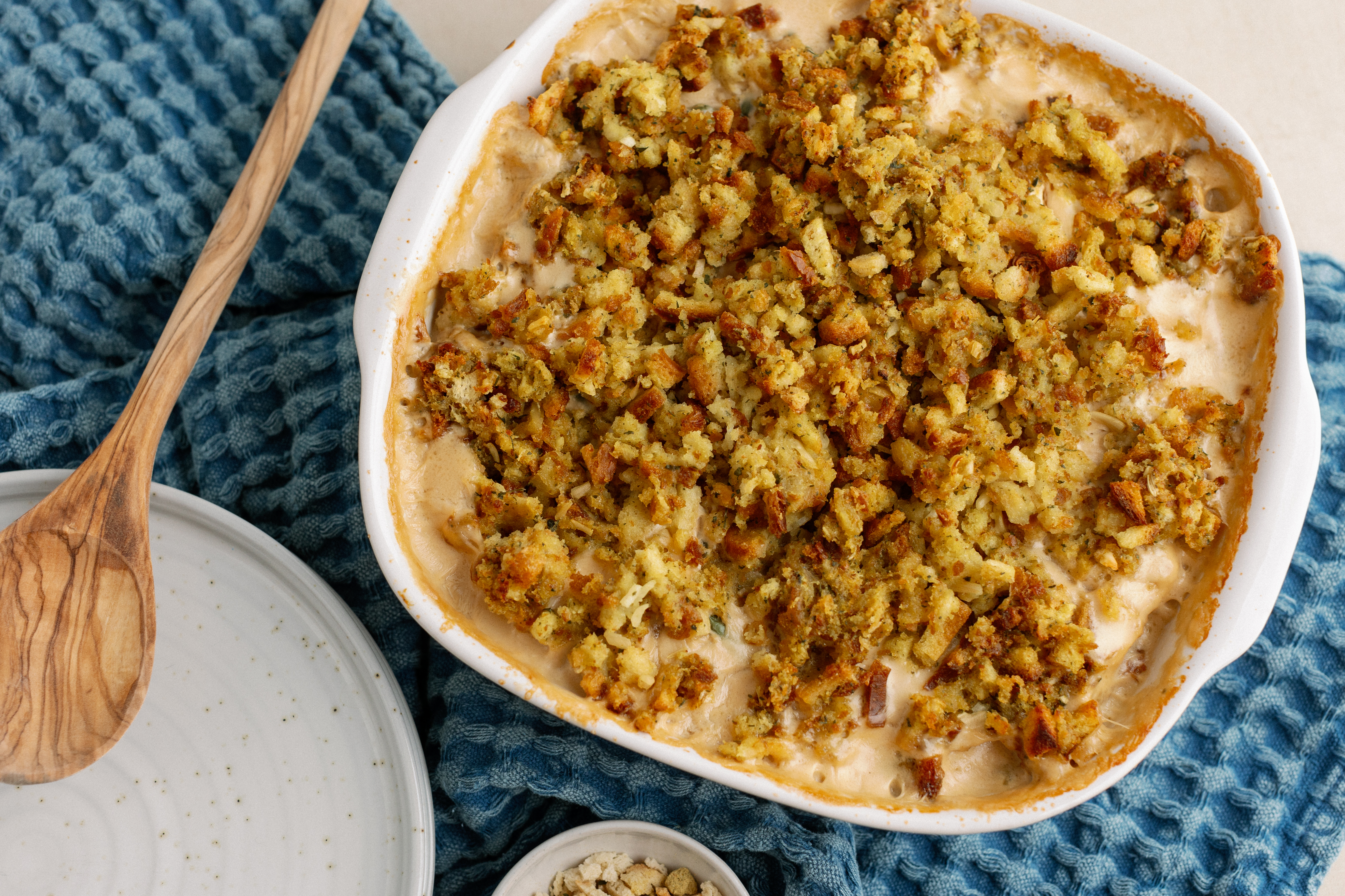Emerald goodness in a baking dish, sandwiched between layers of delicious golden brown; it's a distinct mix of colors and flavors that makes Green Chicken Bake so tasty! The chicken is savory and wonderfully pan-seared, topped with homemade chicken gravy and crisp-tender green beans. If that isn't delicious enough, it's also topped with toasty, fluffy, poultry-flavored stuffing. Green Chicken Bake will make others green with envy because you got to eat it and they didn't!