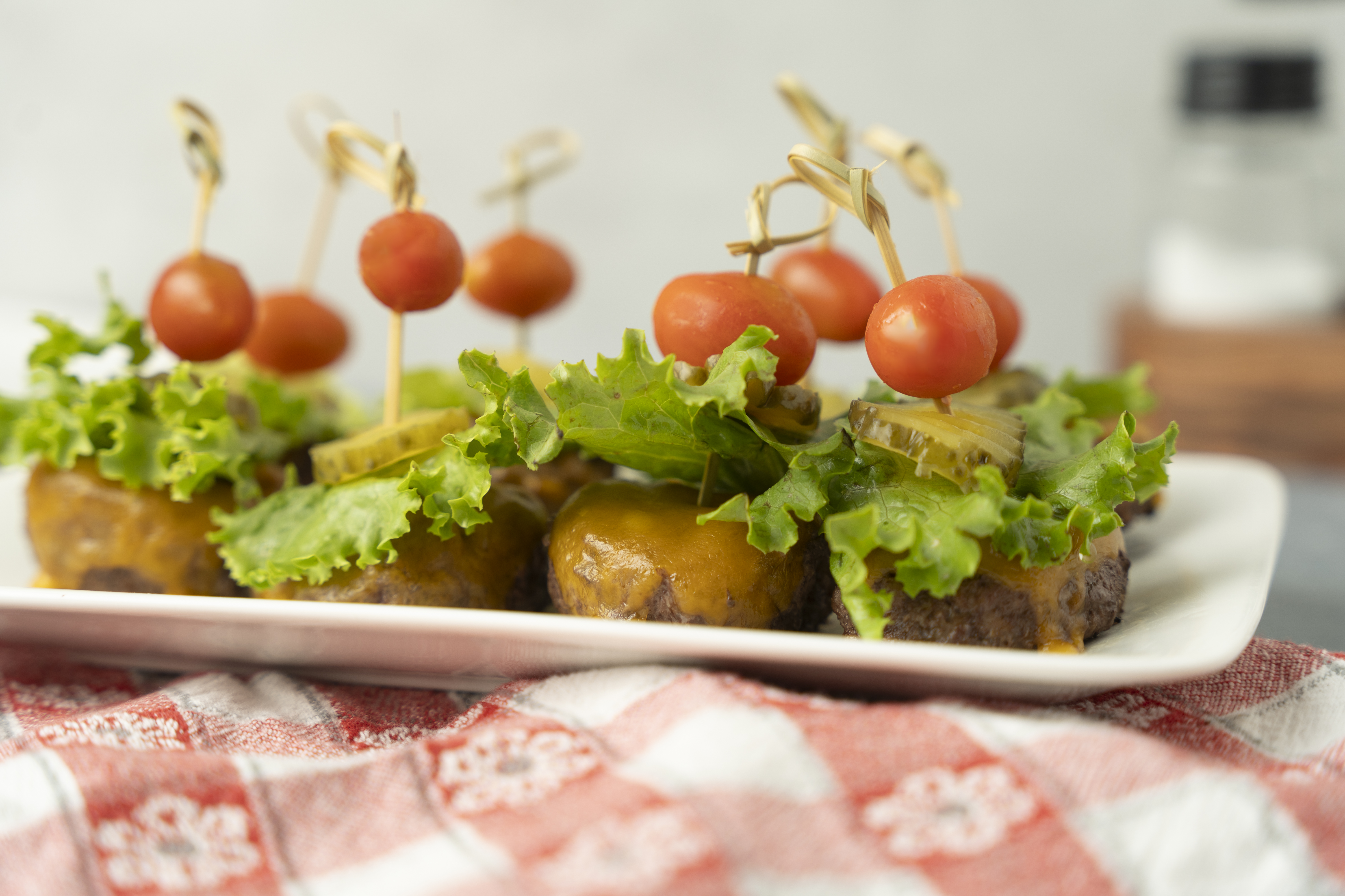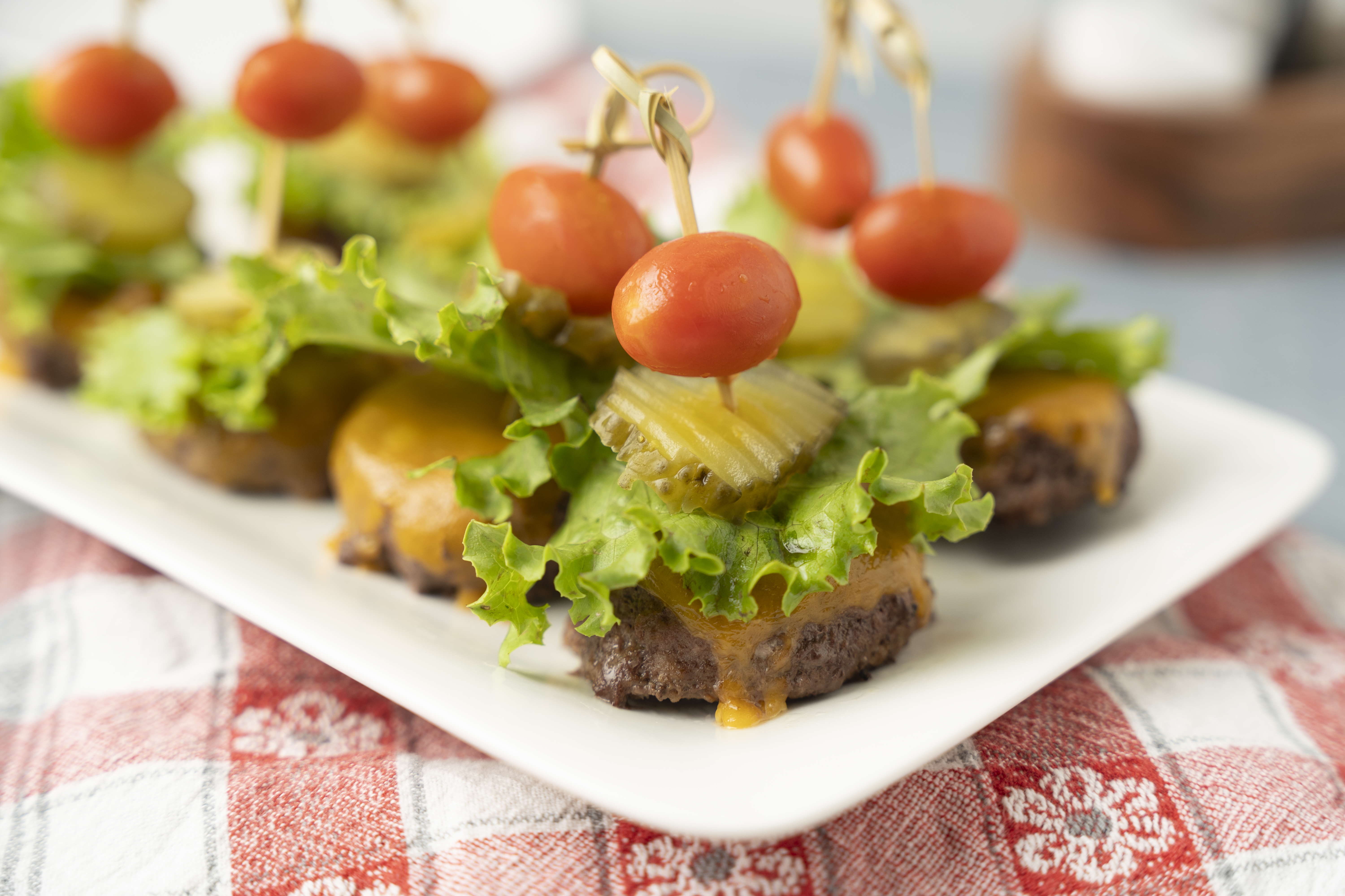 What's the perfect appetizer for your burger-centered cookout for Independence Day? MORE BURGERS! These Home-of-the-Free Kabobs change things up by making tiny cheeseburger patties then placing them on skewers with classic burger toppings! Yes, even the pickle chip! Home-of-the-Free Kabobs are ready to really kick off the Fourth of July with a small but powerful bang!