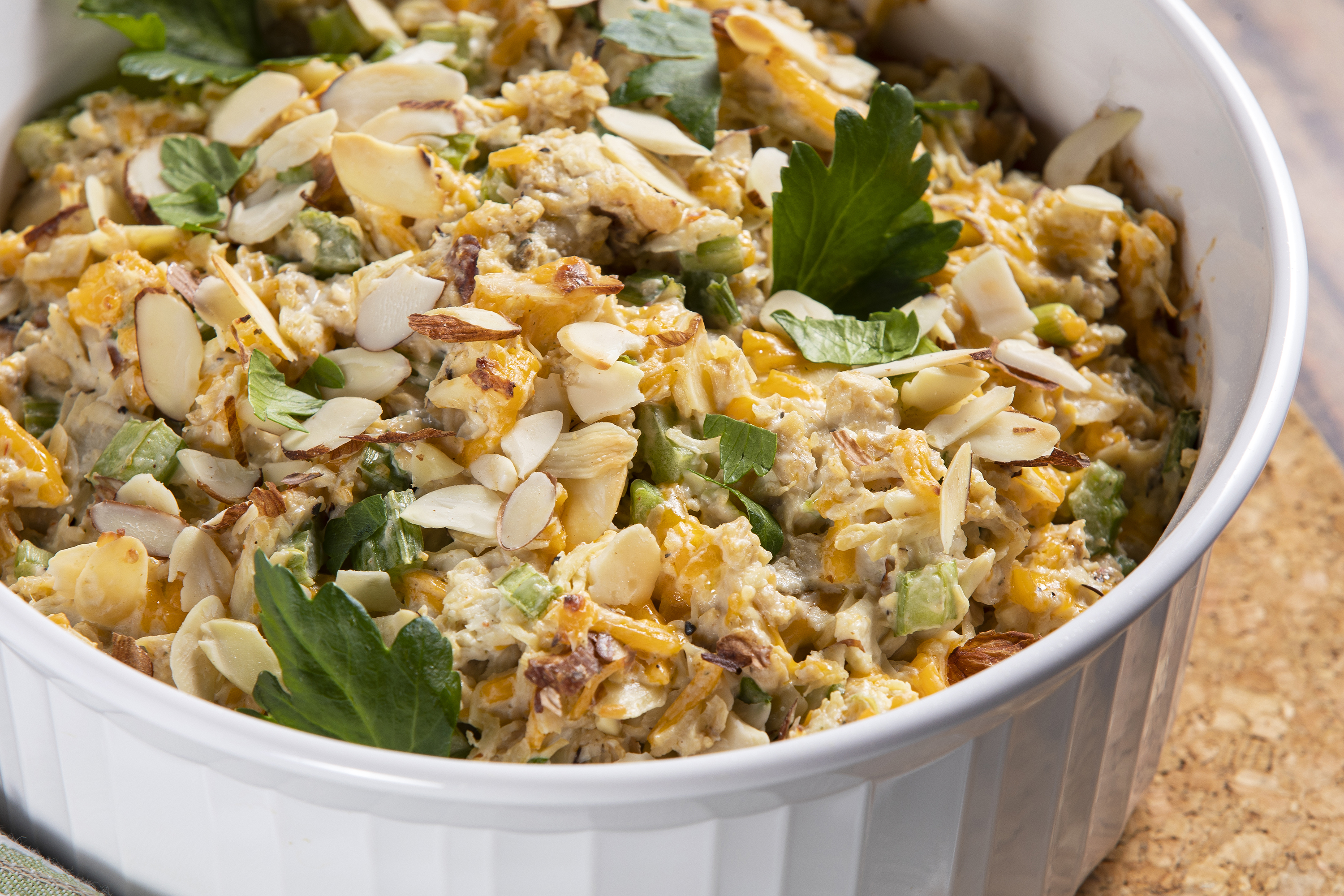 Chicken salad isn't just a lunchtime staple. With this Hot Chicken Salad Bake, you can have the same classic flavor but as a heartwarming and soul-nourishing dinner! Creamy, tangy, savory chicken, with a little zest, some crunchy almonds, and crisp celery, is perfect for eating on its own or spooned onto warm rolls! There's nothing like Hot Chicken Salad Bake to make dinner a real luxury, and in under half an hour!