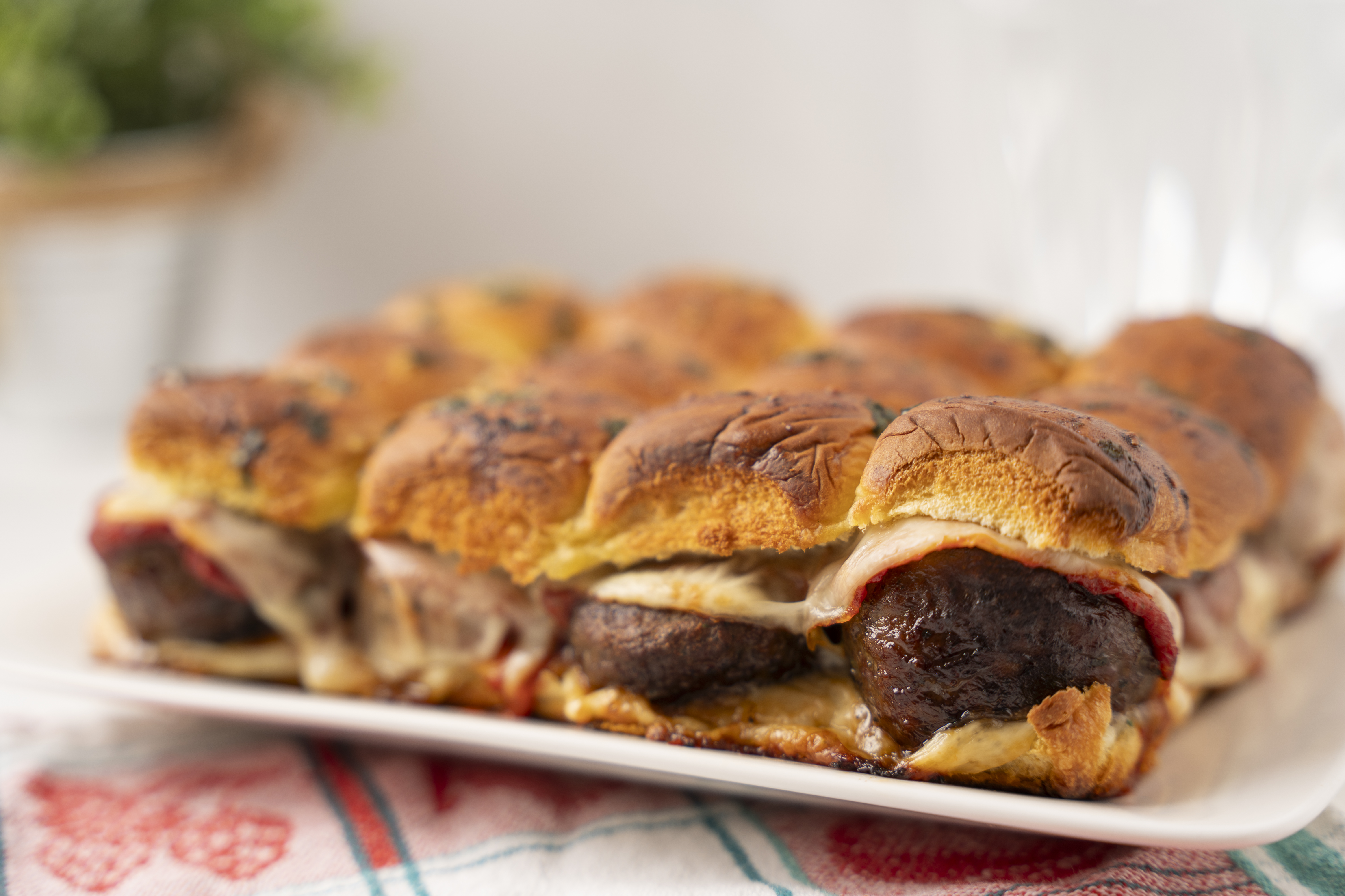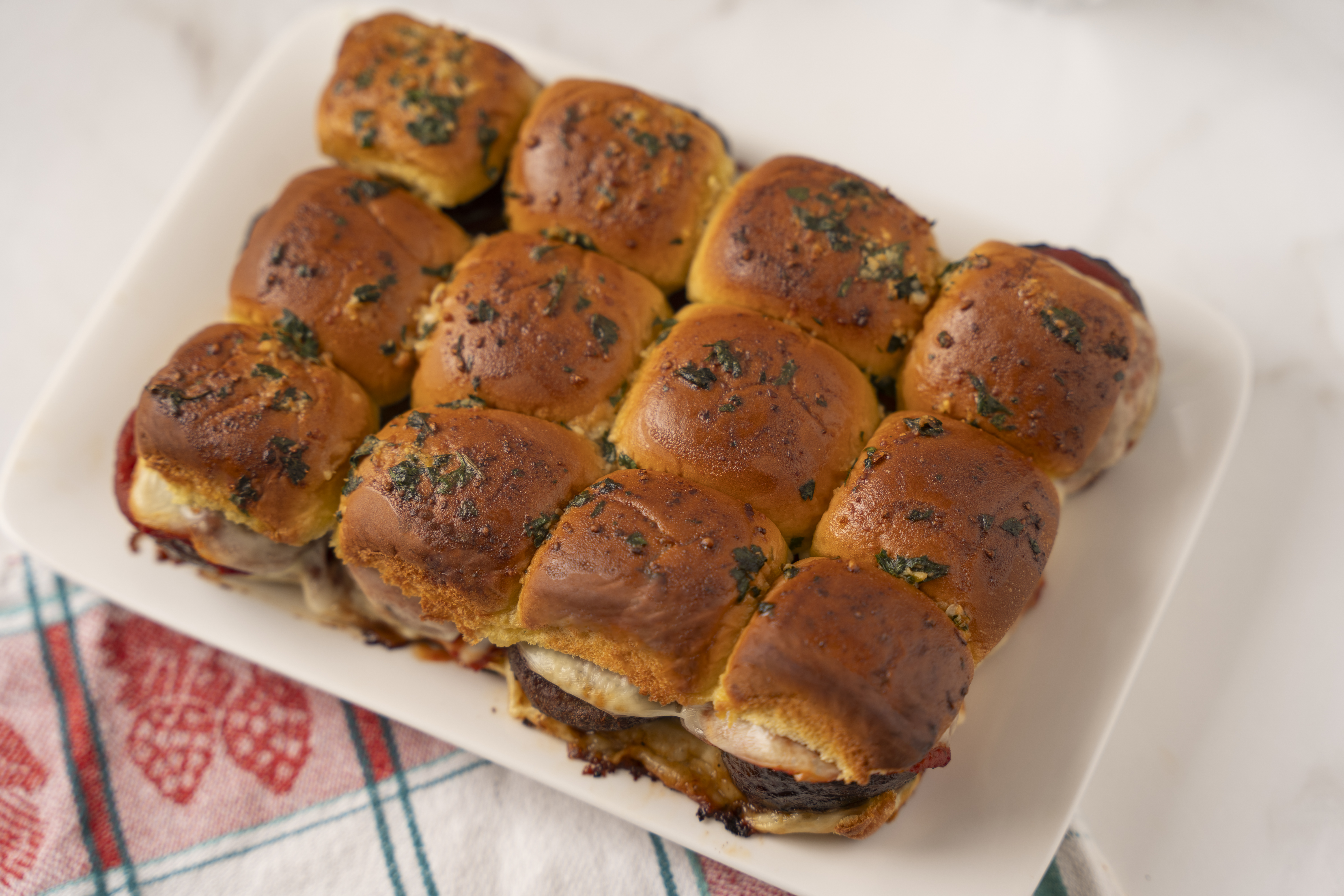 These little meat treats are going for the endzone! Line-of-Scrimmage Sliders line up with fluffy Hawaiian rolls loaded with juicy, savory meatballs, rich pizza sauce, melty cheese, and a sprinkling of butter and parmesan on top! It'll be a taste blitz that will get your taste buds cheering! Dig into Line-of-Scrimmage Sliders and give yourself a little taste of victory!
