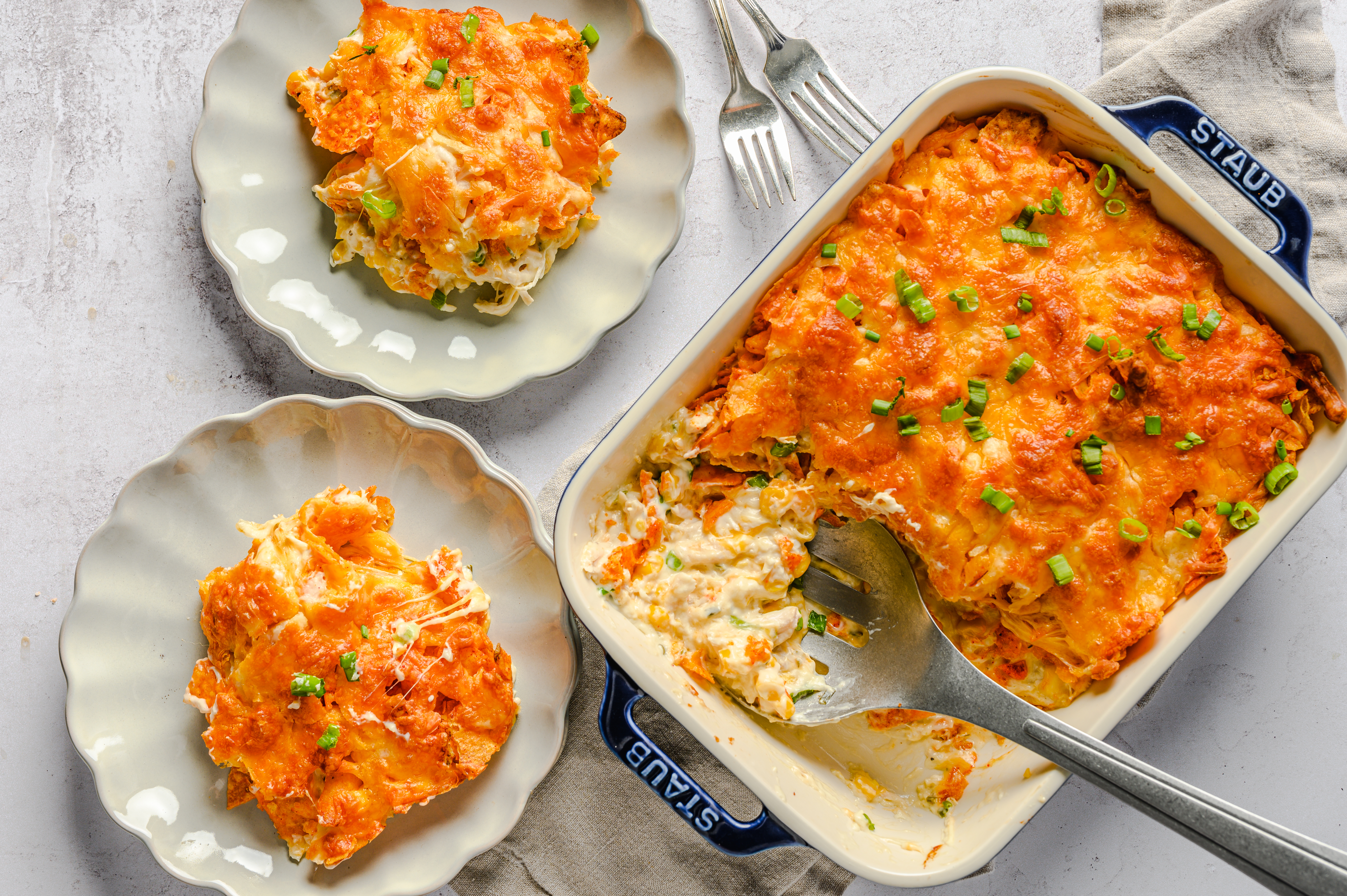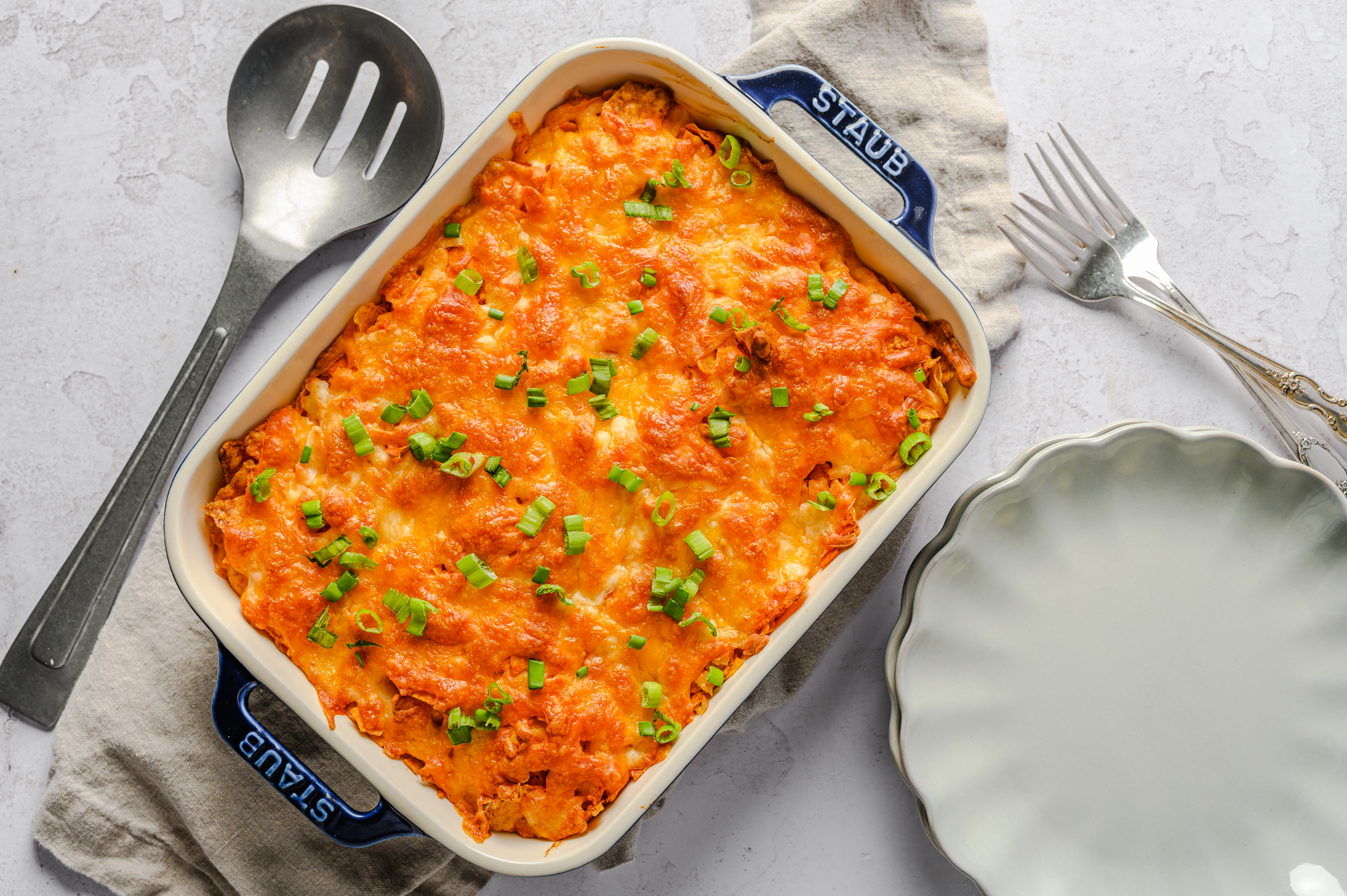 It's cute, it's tasty, and it's a breeze! That's the Little Golden Casserole for you! A golden tortilla chip and melty cheese topping is what meets your eye, but that's just the beginning; this casserole has a complexity of eye-catching (and tastebud-catching) flavor. Next, you'll see specks of gold glimmering in the savory sauce; summery corn kernels and creamy chicken pieces, to be precise! The bursts of emerald green onion add color and pop to this Little Golden Casserole, making it ever more enticing! Dig in and experience this lovely flavor journey.