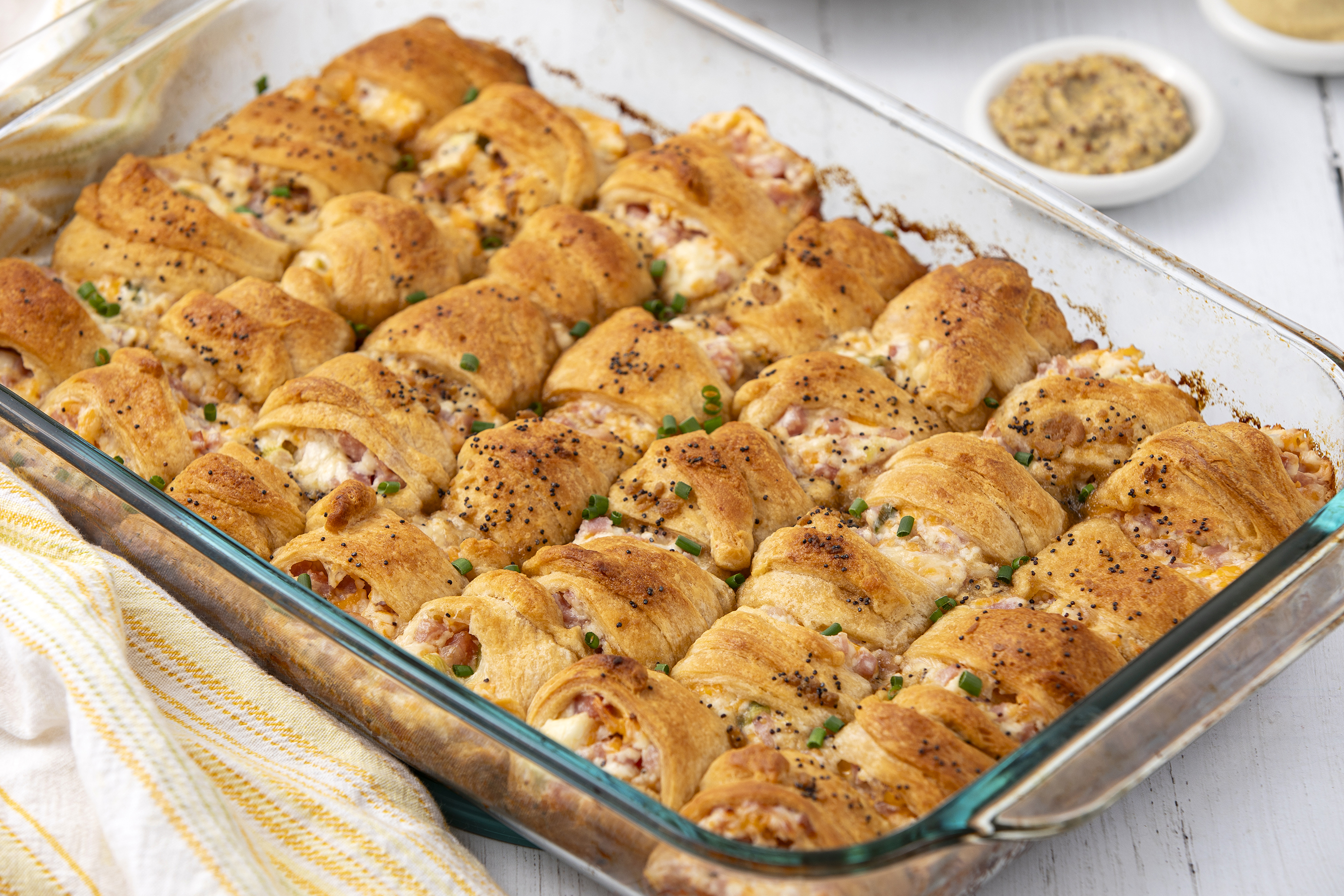 Step 6 -Roll up the crescents and place them in the prepared baking dish.