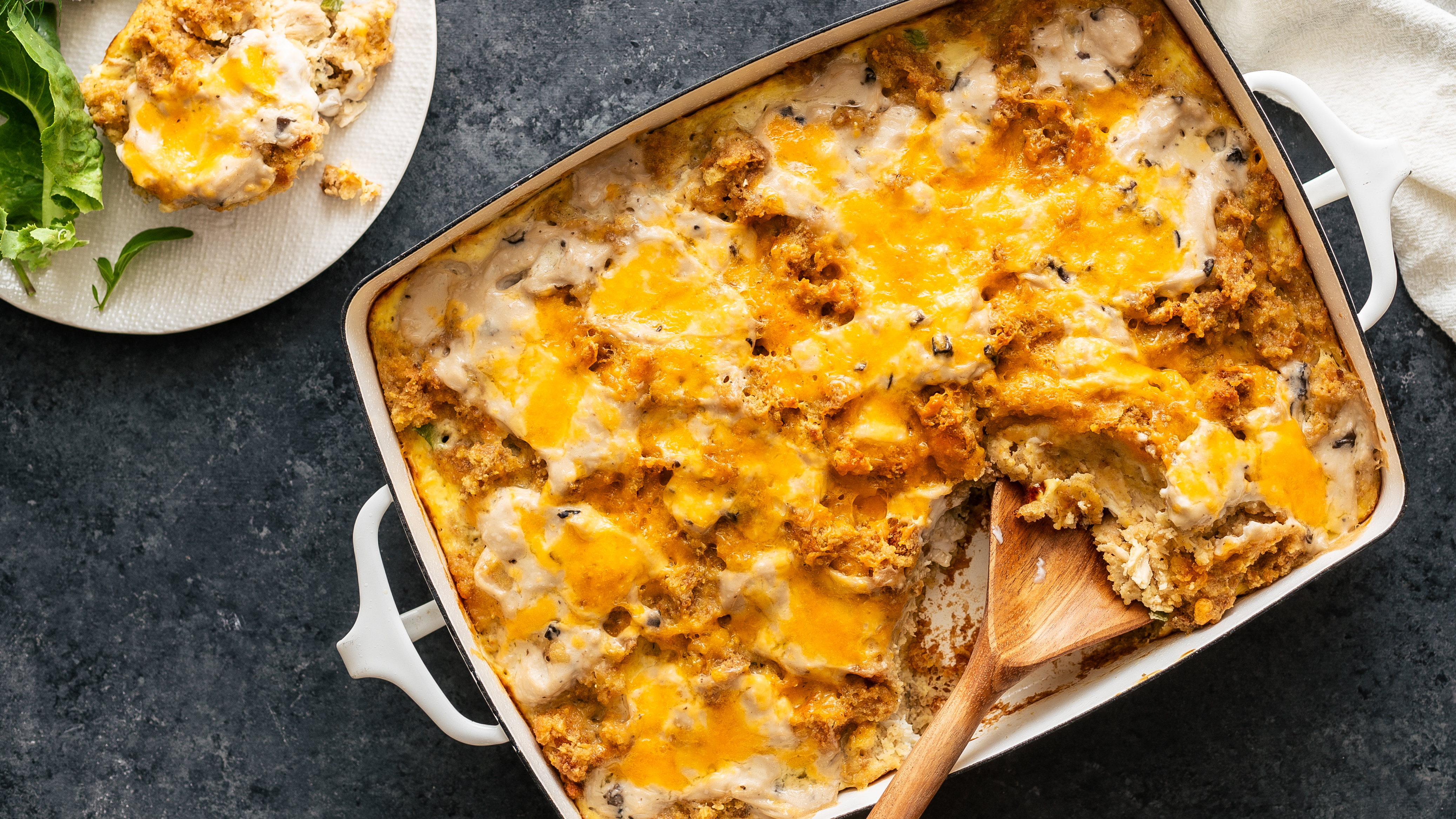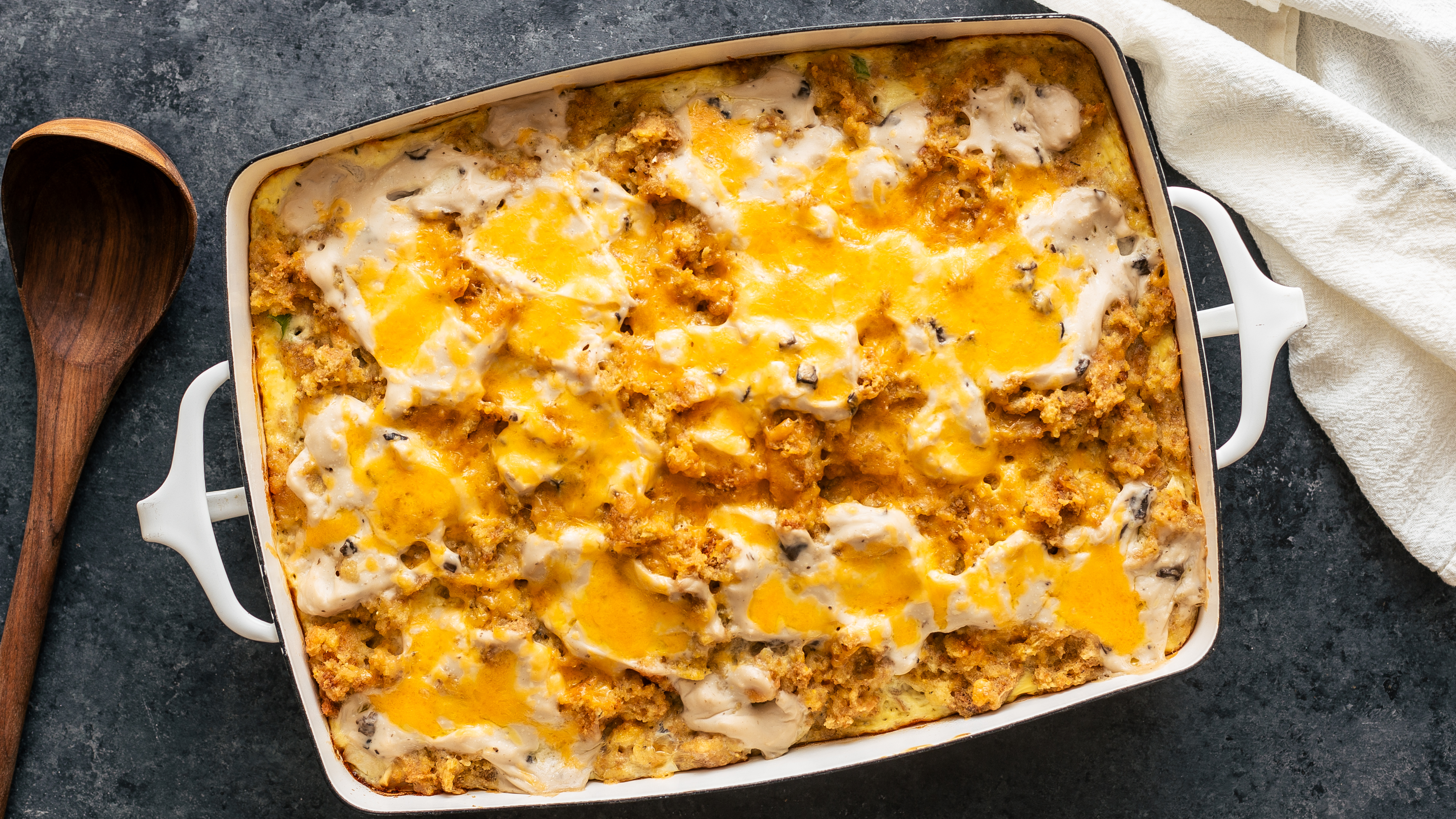 Growing up, it was sometimes tough to admit it or even to see it, but she really did have a reason for all the things she did and... 99% of the time, she was right. As an adult, now you realize it and actually appreciate all the things she taught you, even through some of your most rebellious years. So, when our momma came around with this casserole full of juicy chicken, melty cheese, and savory cornbread stuffing, we knew immediately it had to be named the Momma-Knows-Best Bake. After all, it's the least we can do for her after all she had to endure throughout our childhood (ahem, mainly those teen years). So, here's to her and all the other moms out there who deserve some recognition! They do a lot and deserve to be thanked. Let's celebrate all their love (and patience) with the Momma-Knows-Best Bake! We literally wouldn't be here without her!