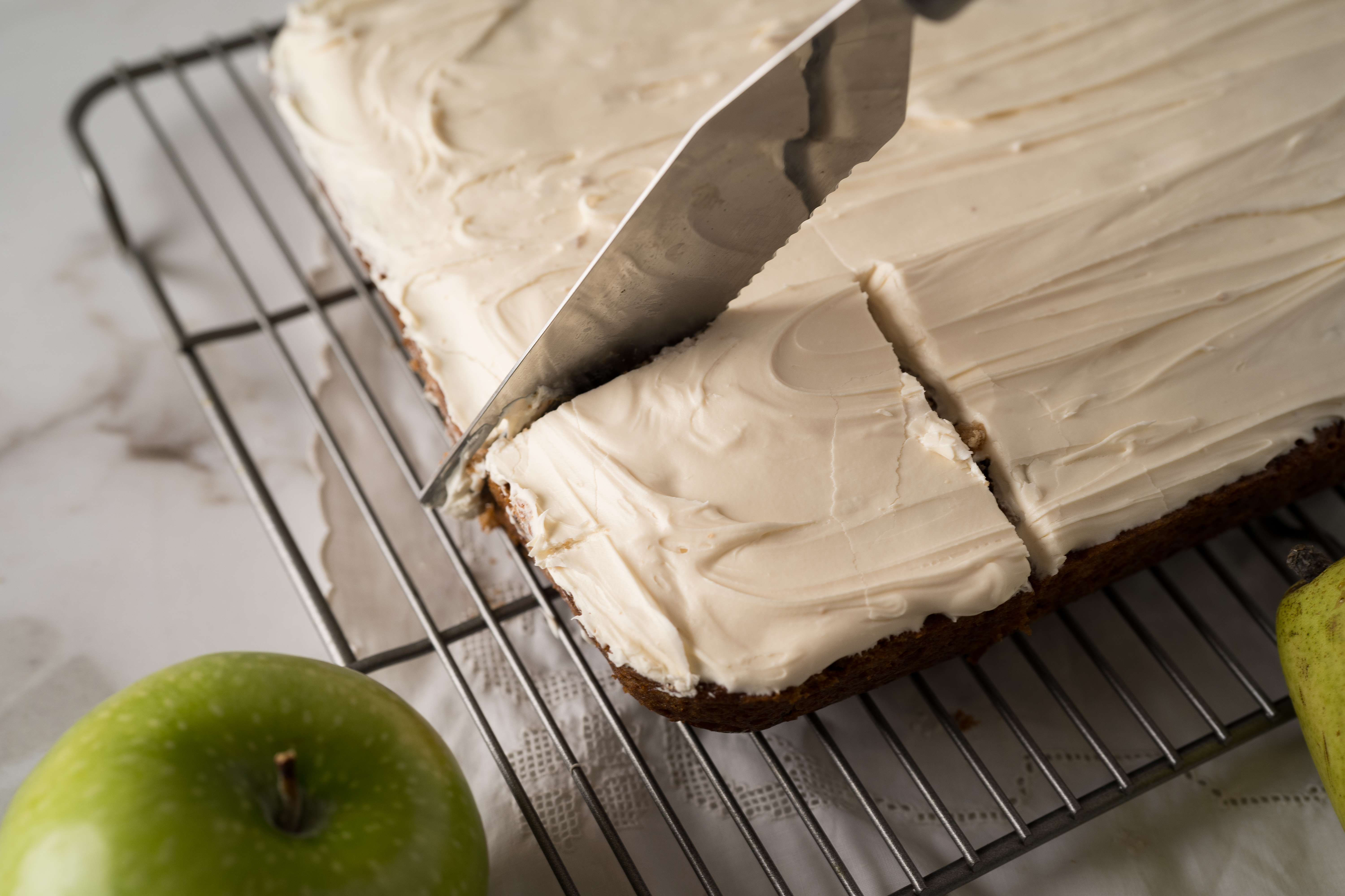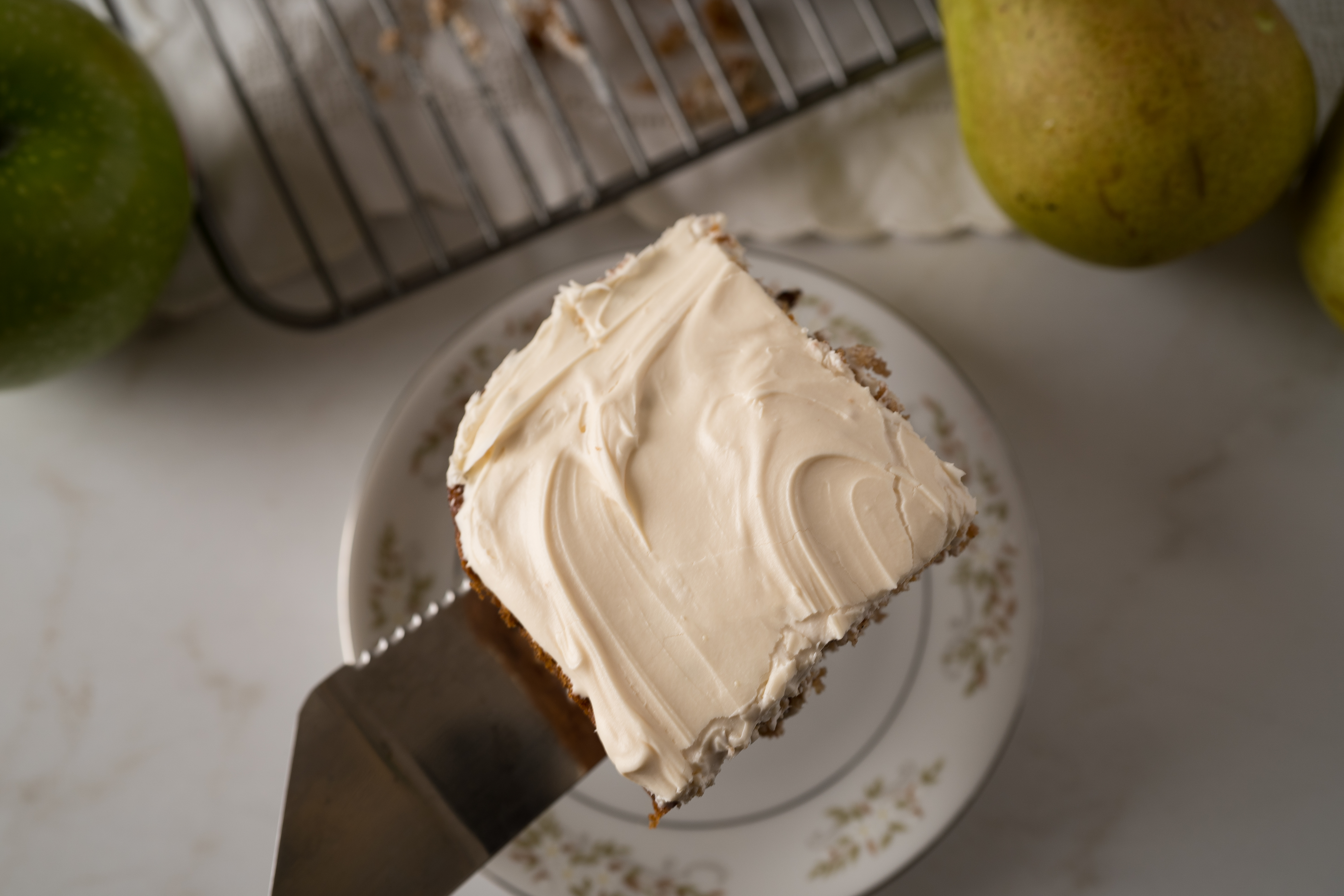 Just you wait, hungry reader, just you wait! Because My Fair Lady Cake is about to prove that it has the perfect pronunciation of flavors! Tart apples and sweet pears are baked into the cake to make it extra flavorful, tender, and moist! On top it is adorned with a luscious, tangy, and creamy frosting... it's just lover-ly! My Fair Lady Cake will totally revamp your dessert cravings!