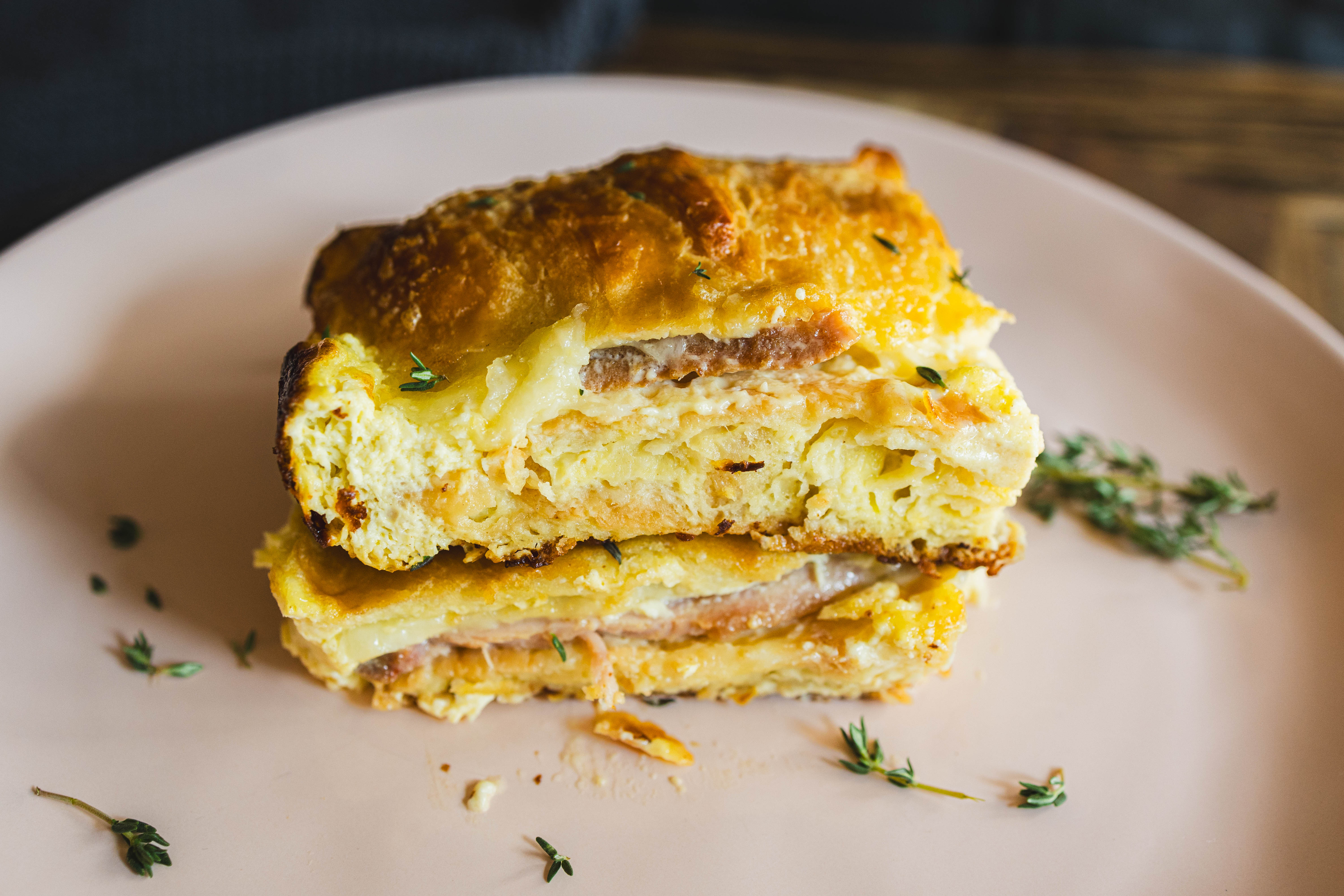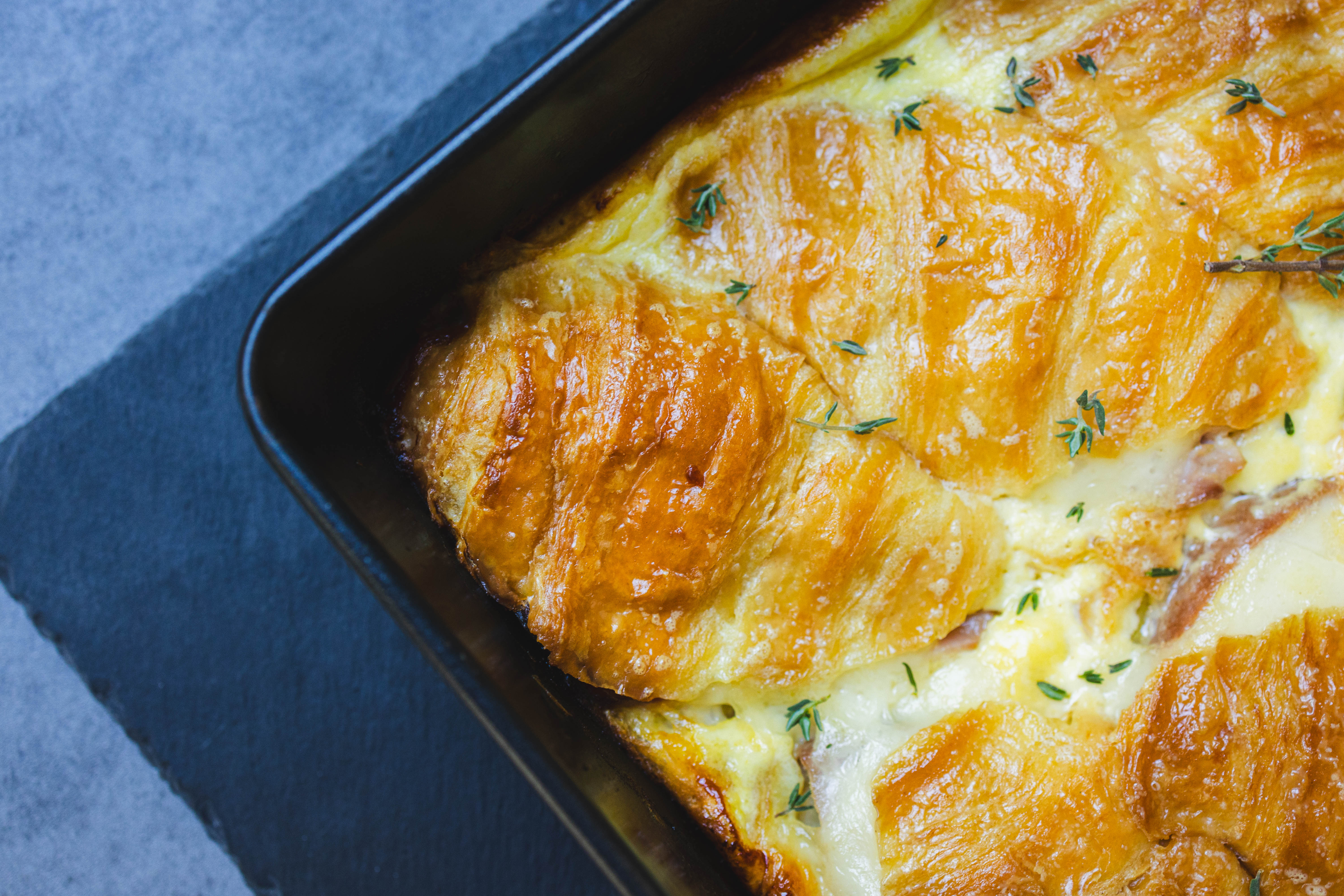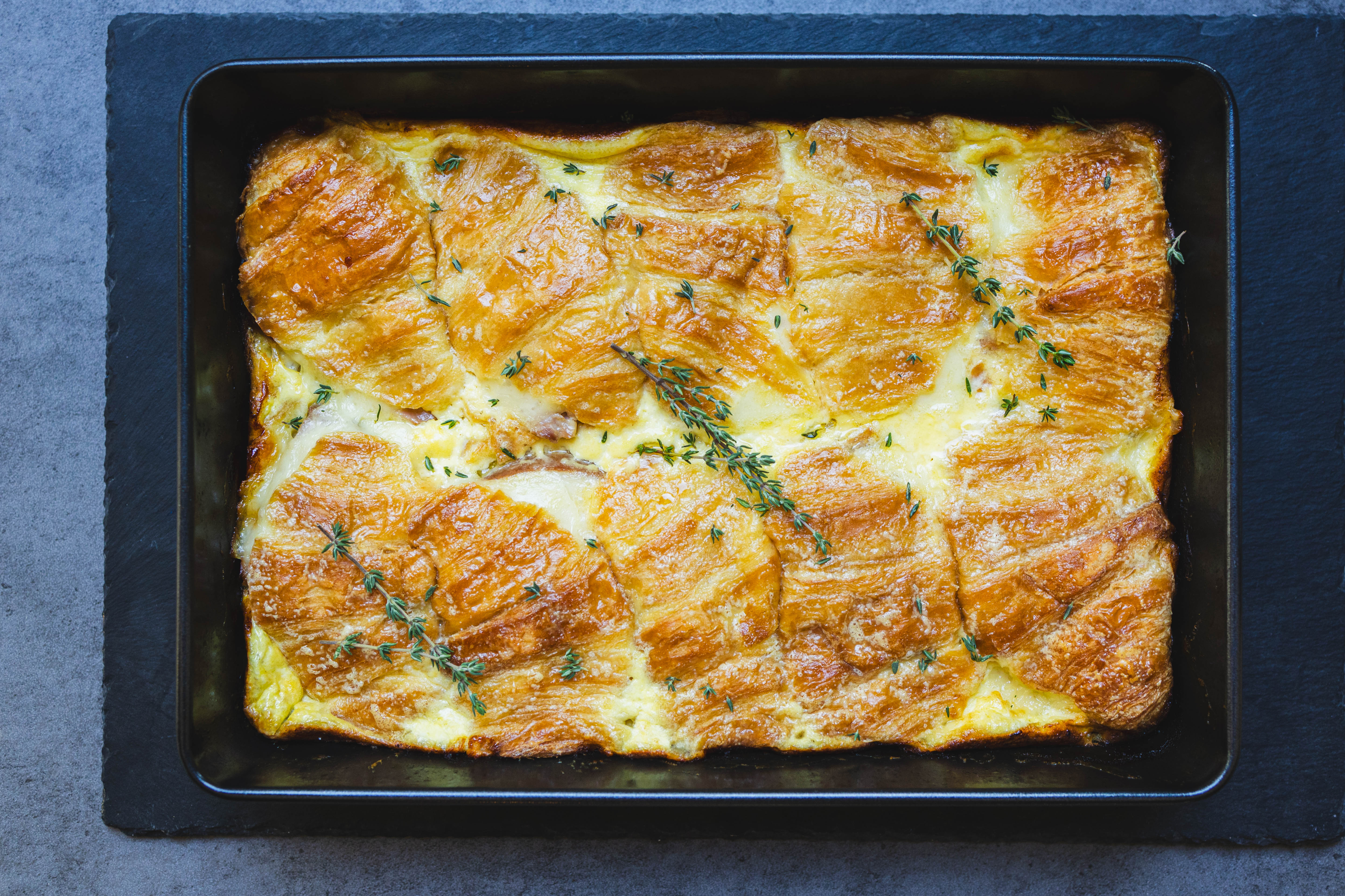 No matter which side of the bed you wake up on, how could you possibly have a bad day with a piece of Ooey-Gooey Breakfast Casserole on your plate?! The crispy croissants loaded with salty ham, fluffy eggs, and melty cheese meld together to become the breakfast of champions. This casserole is a sure way to fill up your belly and start the morning off right! Ooey-Gooey Breakfast Casserole will always bring sunshine, even on the cloudiest of days!