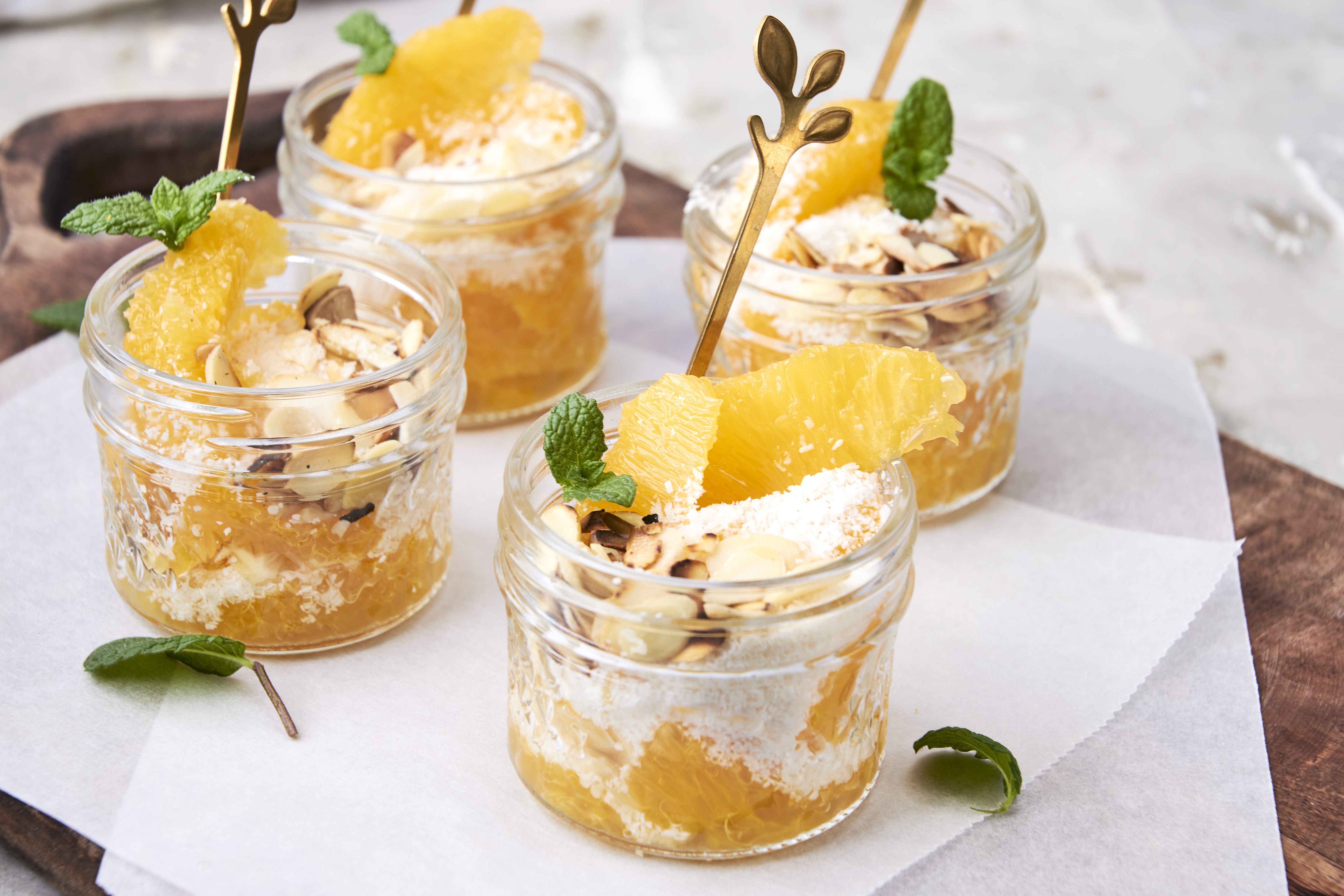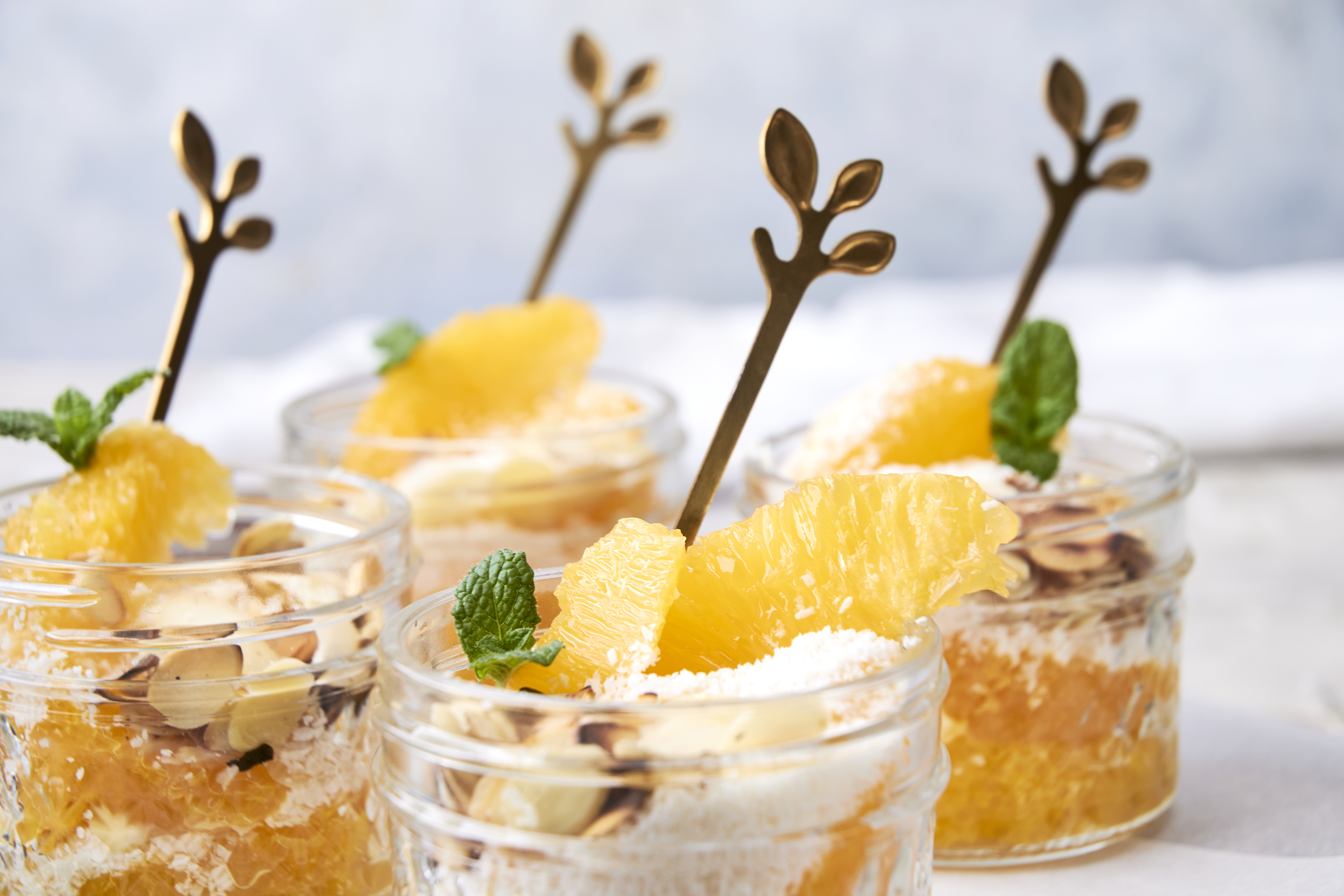 There's a lot of appeal to this Orange Appeal! It features layers of sweet, sunny orange segments dusted with powdered sugar and sprinkled with crunchy almonds and tropical coconut! It's refreshing and juicy, making the most of the beloved citrus flavor! Orange Appeal is the delightfully summery sweet treat that makes summer even more appealing!