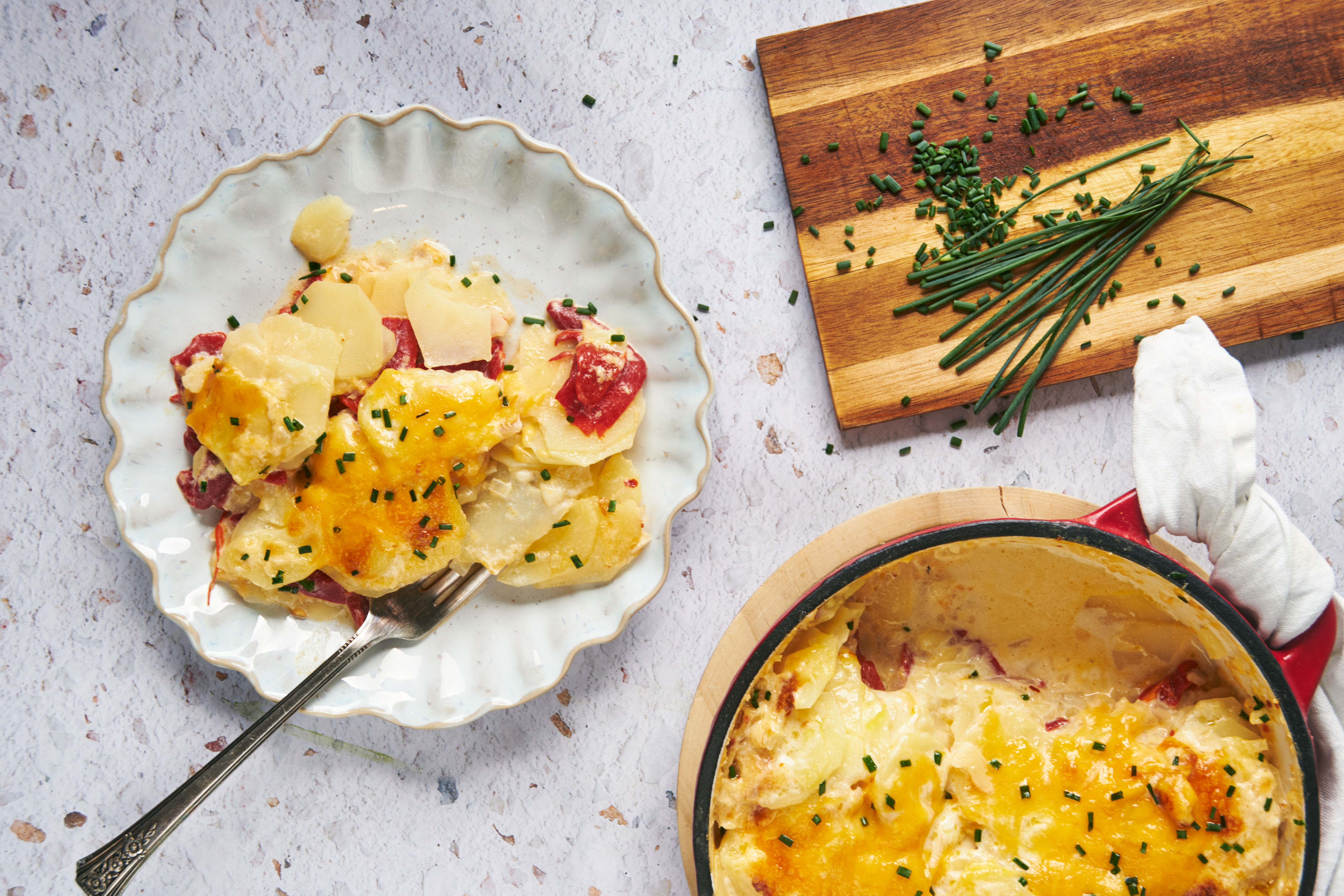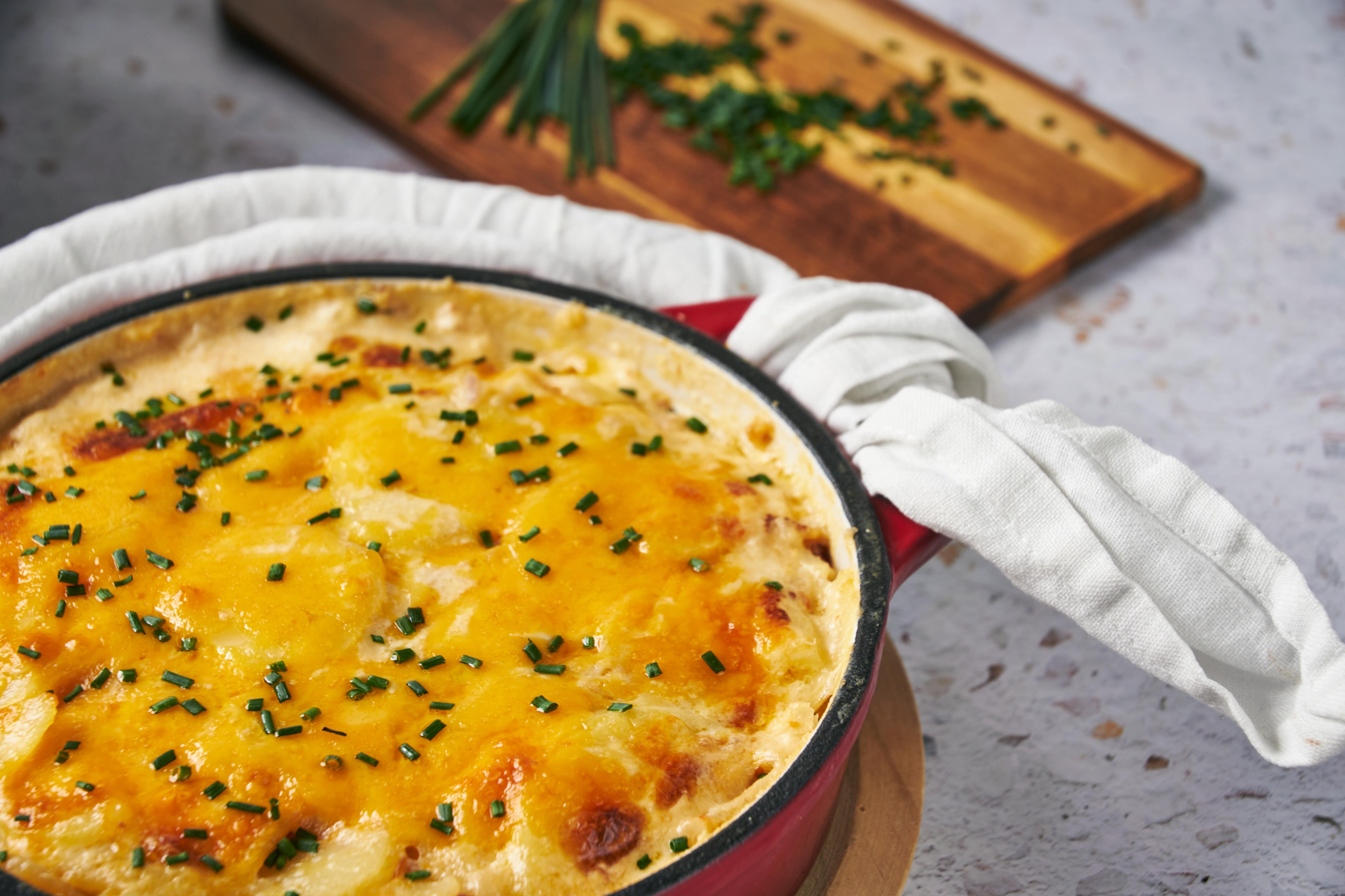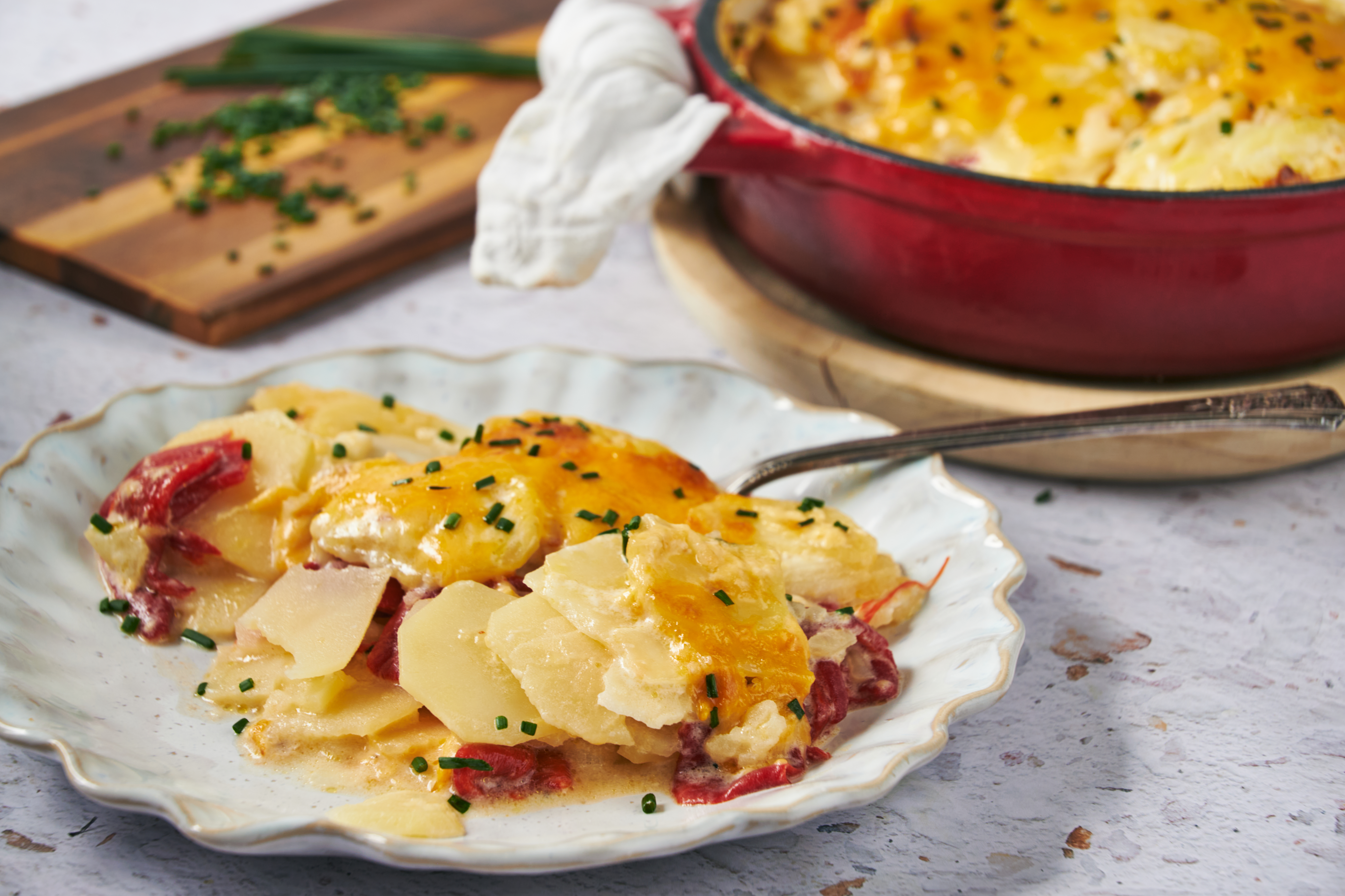 What makes this Perfectly Southern Potato Bake so Southern? The incorporation of pimiento cheese, the caviar of the South, of course! Layers of tender, golden potatoes combine with spicy red peppers and soak in a creamy, sharp cheese sauce, with even more deliciously melty cheese on top. Perfectly Southern Potato Bake is all about Southern hospitality, and you can really taste it!