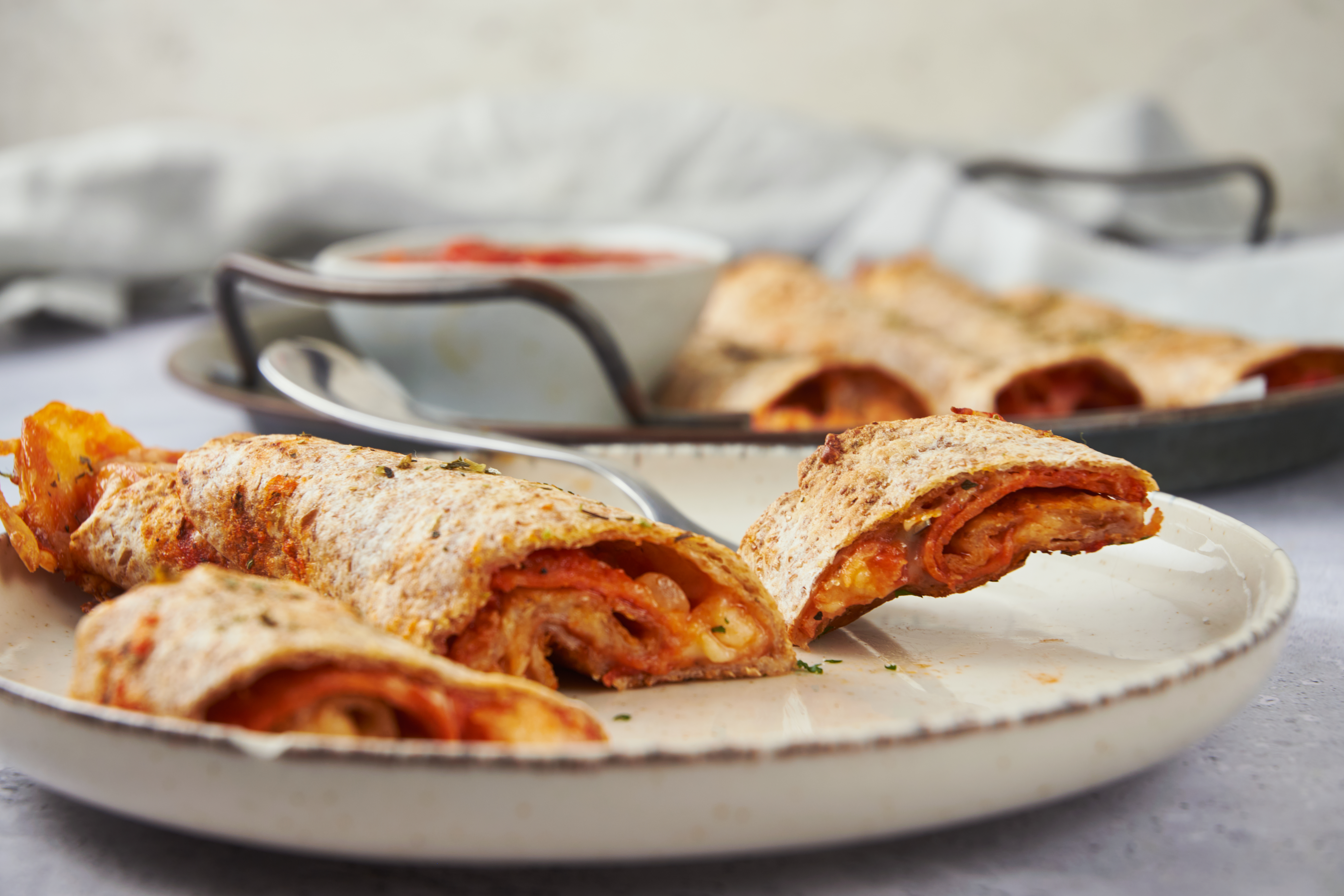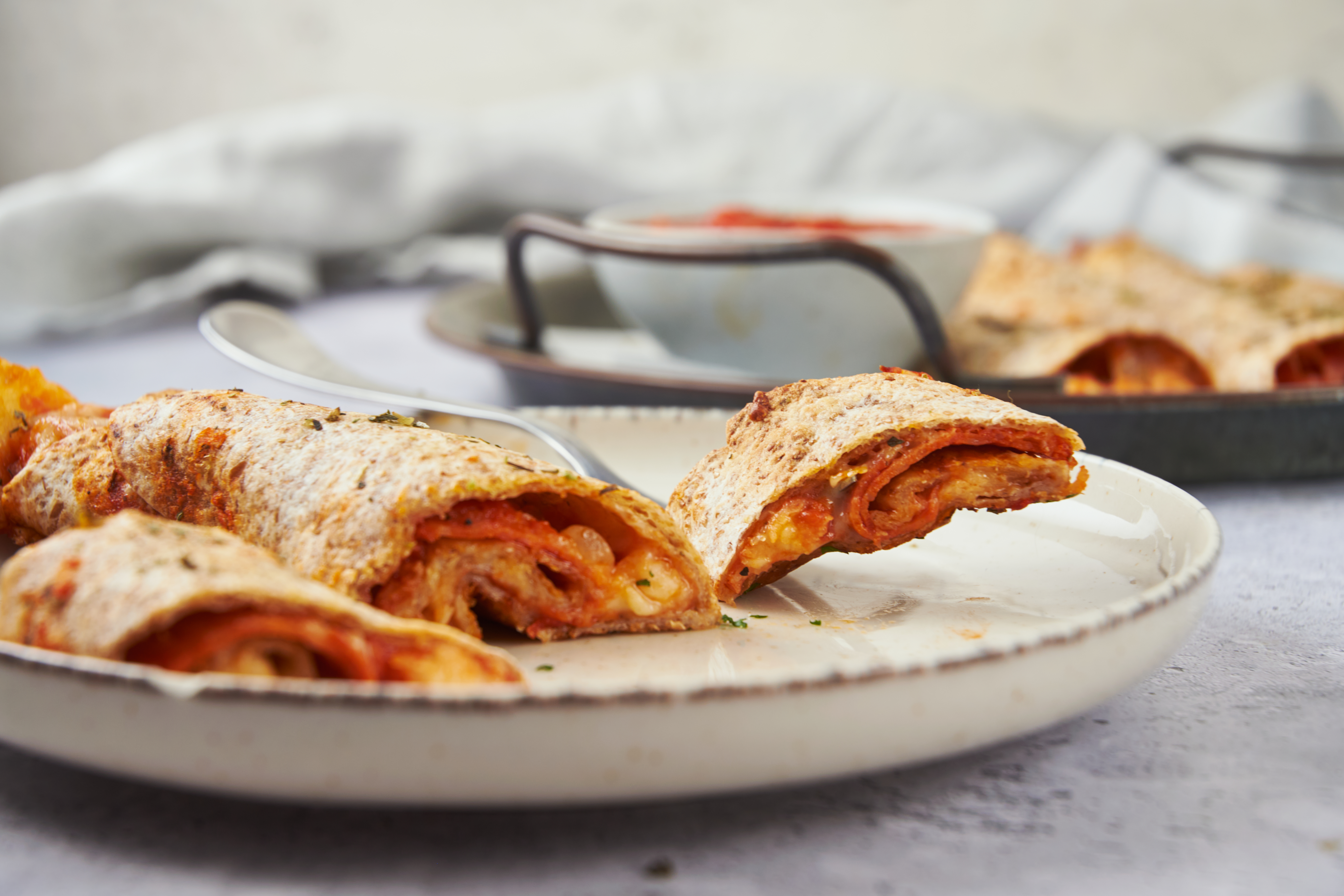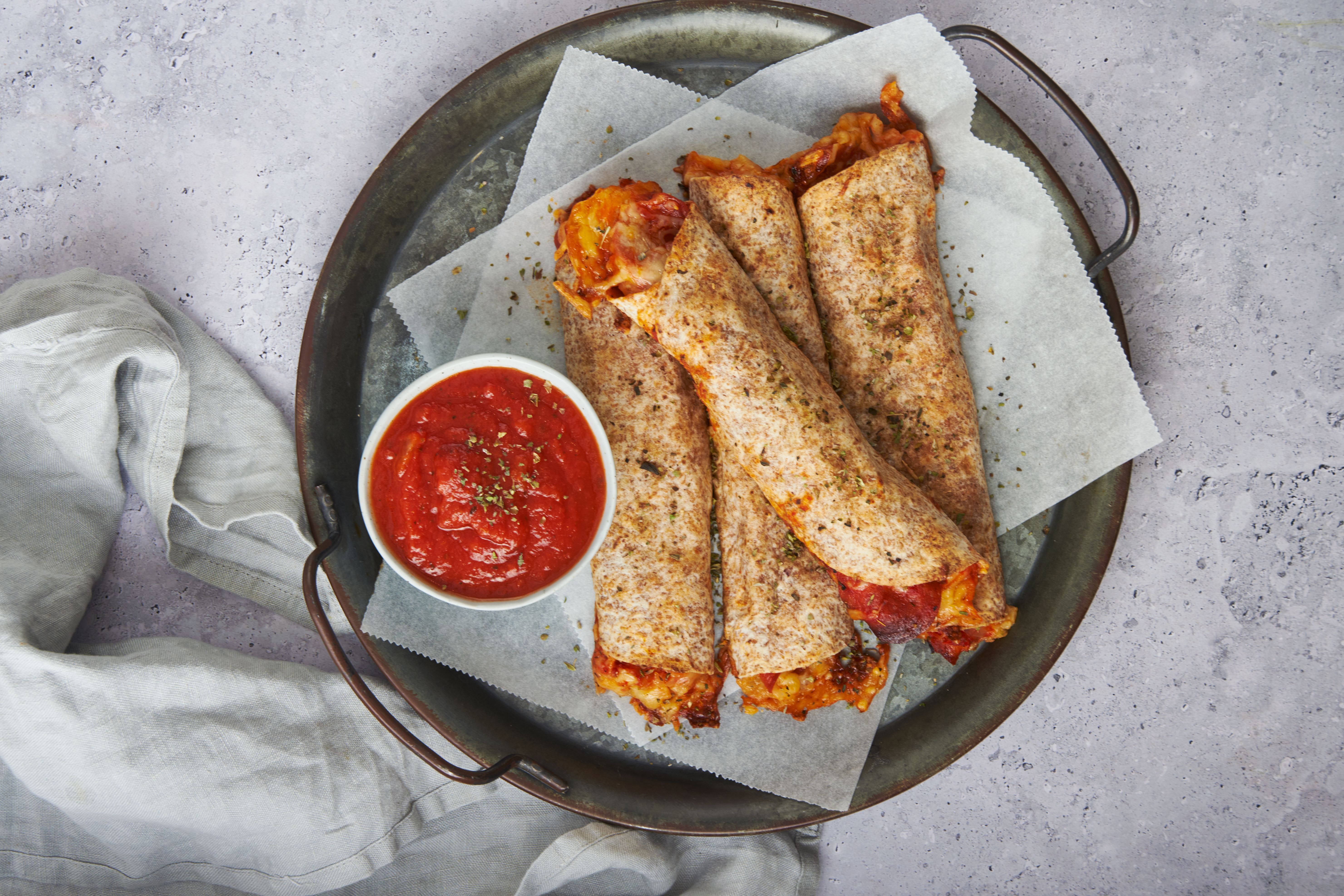 Step 13 -Serve the roll-ups with the extra pizza sauce.