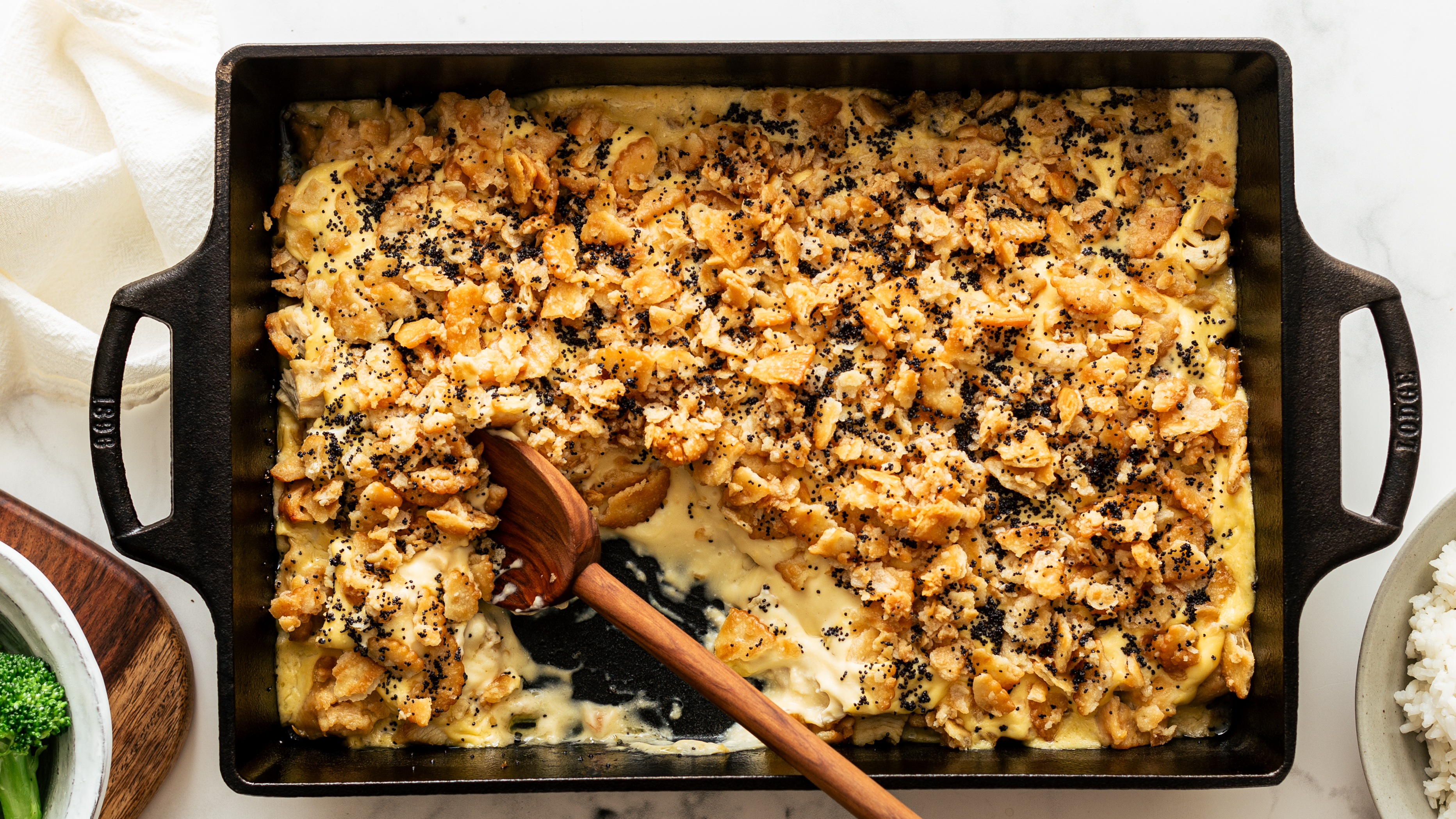 After a busy day of tending to the garden, running all your errands, attending your volunteer meetings, and watching over your sweet grandkids, you need a hearty meal that isn't too complicated... you just had a very busy day! No need to spend what's left of it in the kitchen. Poppy Seed Chicken Bake is the answer to your busy-day-blues. Okay, okay, we know you're not sad, but you definitely need a break! And this creamy, savory bake, filled with tender chicken and sprinkled with two kinds of crunch from buttery crackers and fun poppy seeds, is what you need to fill you up without having to work too hard. We think it's a pretty tasty solution that could even turn into leftovers, which will save you even more time tomorrow! We love it when that happens. Don't be afraid to slow down and unwind; Poppy Seed Chicken Bake has dinner taken care of tonight!