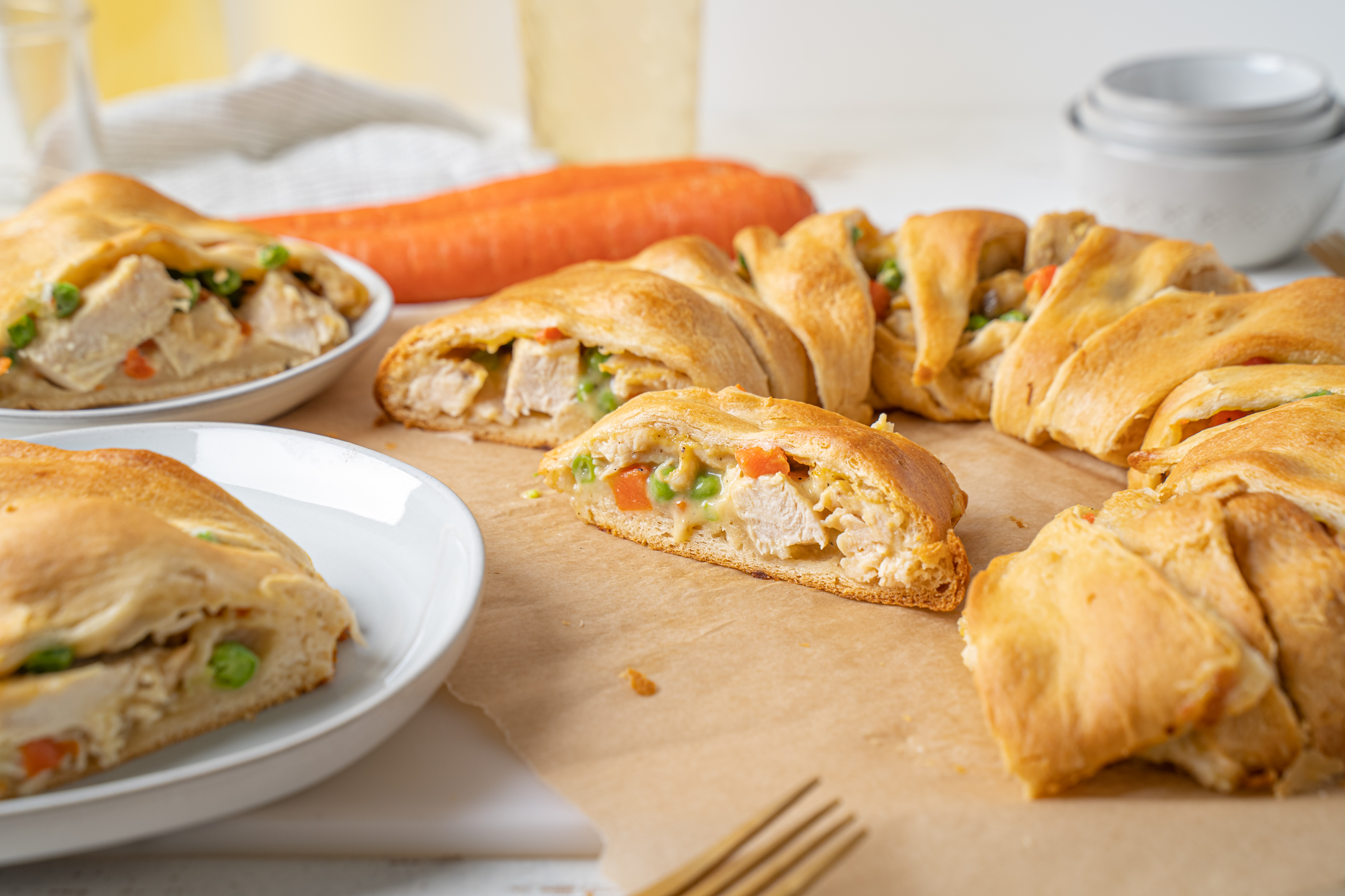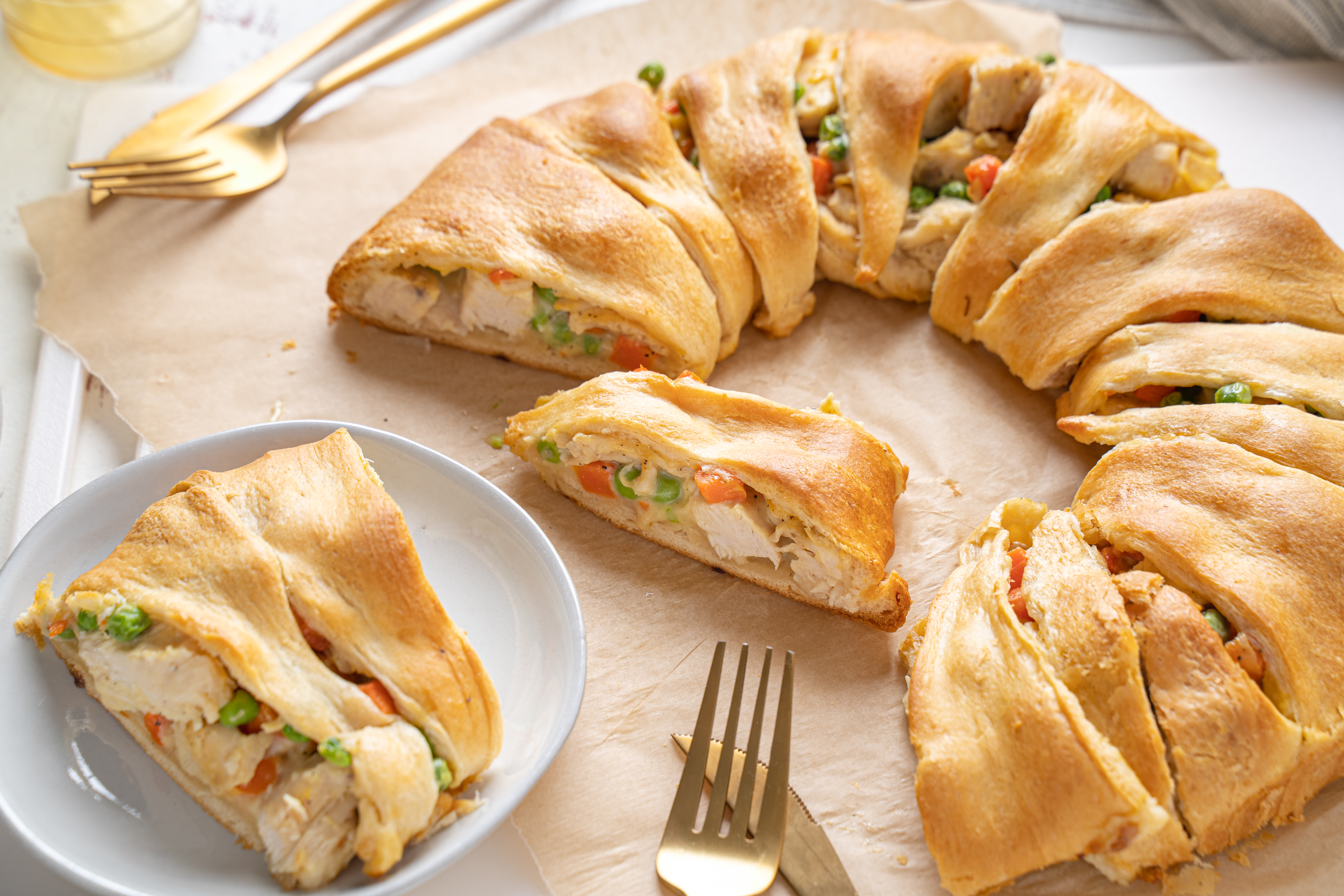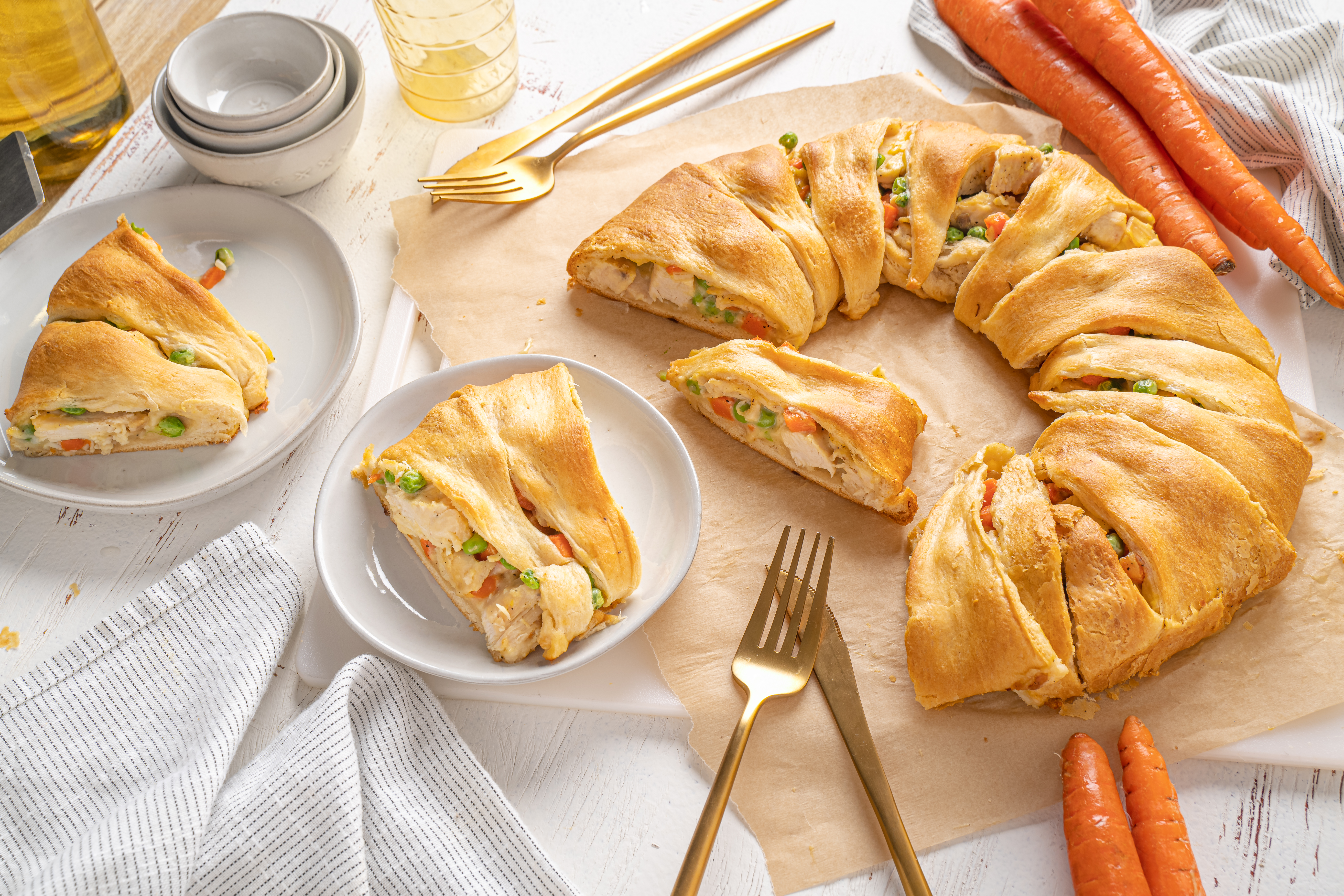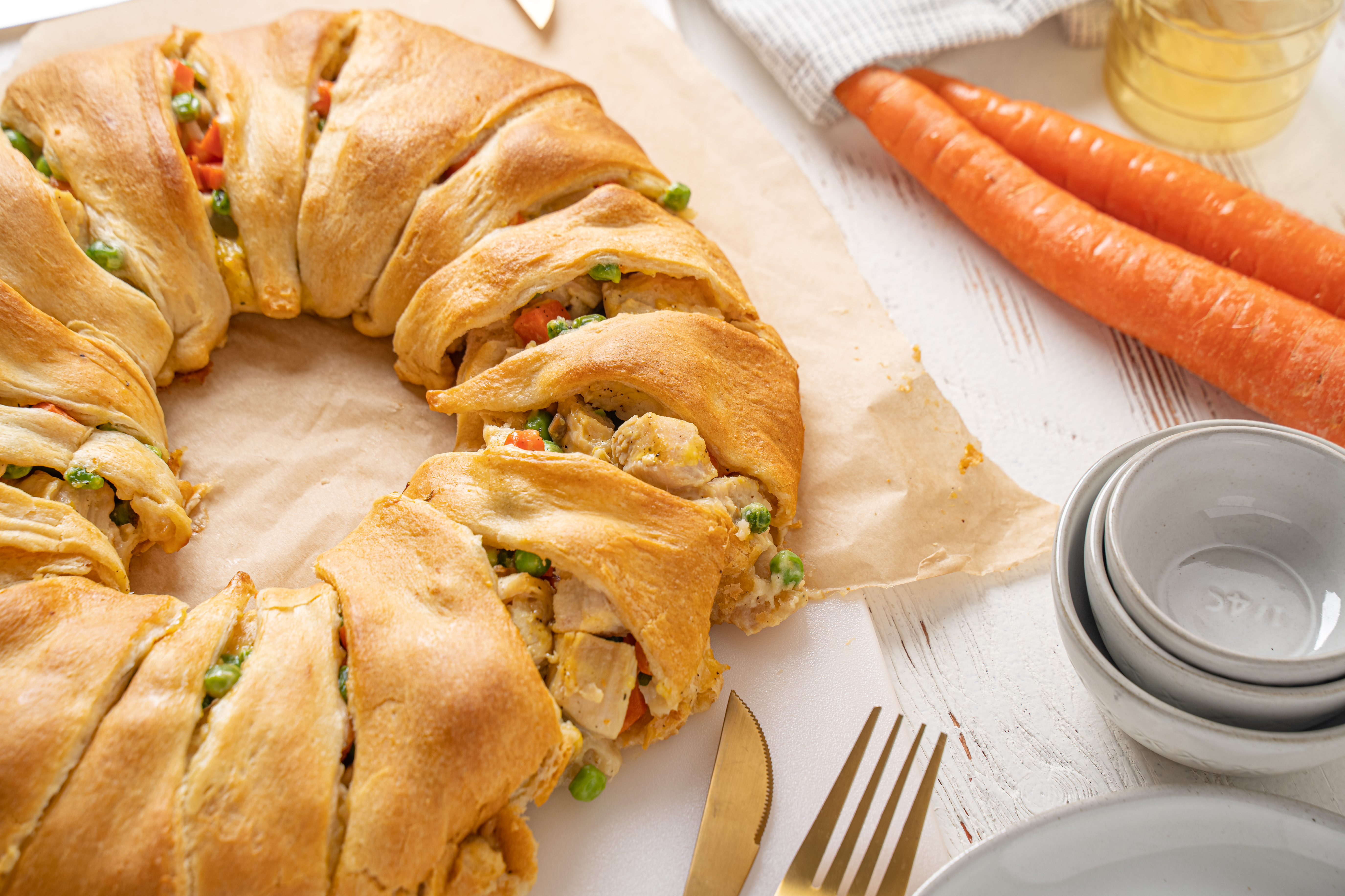 Some recipes will run circles around any ordinary food, and this one definitely gives them a run for their money. Classic chicken pot pie just got rounded up and made better than ever with Pot Pie Ring. Flaky, tender crescent rolls are transformed with a creamy, rich chicken and mixed vegetable filling. Then, everything is wrapped up and baked until golden-brown. Grab the wheel and get dinner back on track with this Pot Pie Ring. This easy showstopper-of-a-sphere will ring in indescribable happiness and make pot pies famous again. Your inner circle will love it!