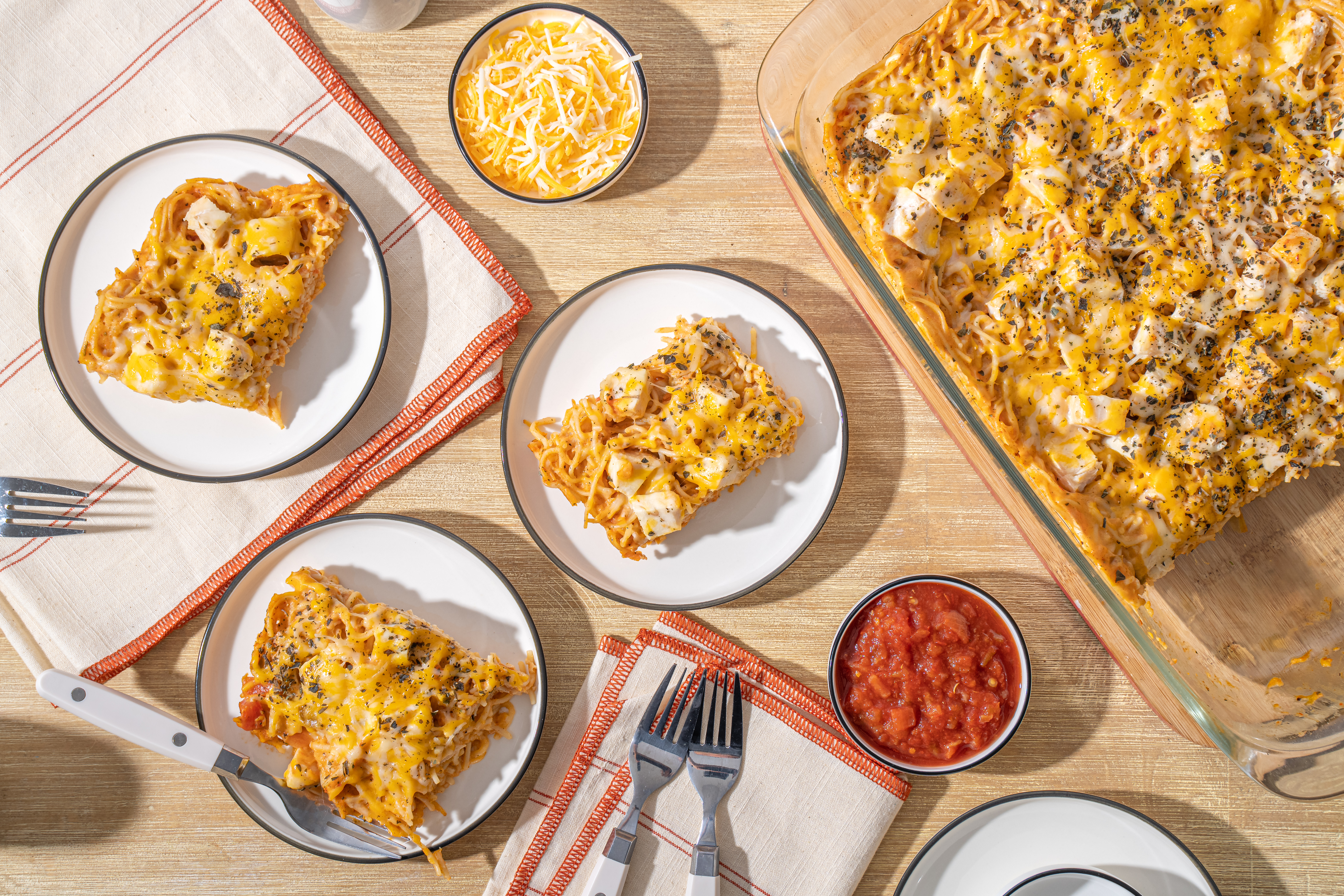 Great casseroles are one of the main reasons potlucks were invented, or perhaps vice versa; either way, casseroles are a great way to share genuine and heartfelt home-cooking with a crowd. It's in that loving spirit that this Potluck Spaghetti Bake appears: a tender, almost ethereal angel hair dish with melty cheese, savory chicken, vibrant salsa, and plenty of Tex-Mex flavors in a creamy sauce. It brings people together, and isn't that exactly what potlucks aim to do? Potluck Spaghetti Bake thinks so!