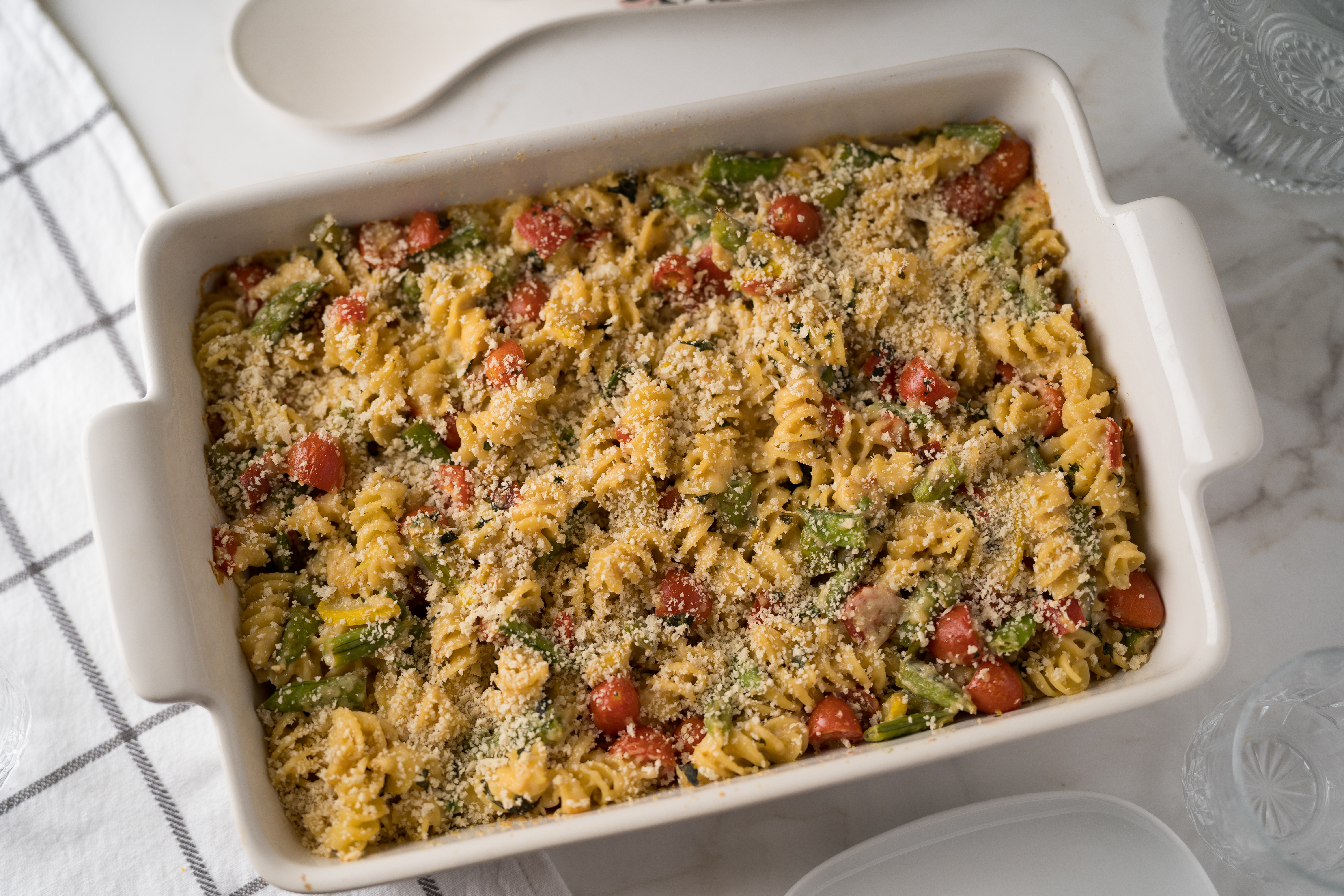 Two classics meet to create a brand-new favorite! That's the way to do it! This Primavera Casserole captures the creamy, refreshing, vegetable-packed pasta dish with the cheesy, crunchy topping of a casserole. The result is a vegetarian dish more nourishing and delicious than almost any meat course! It's time to get primed for Primavera Casserole, and the second helping you're going to enjoy!