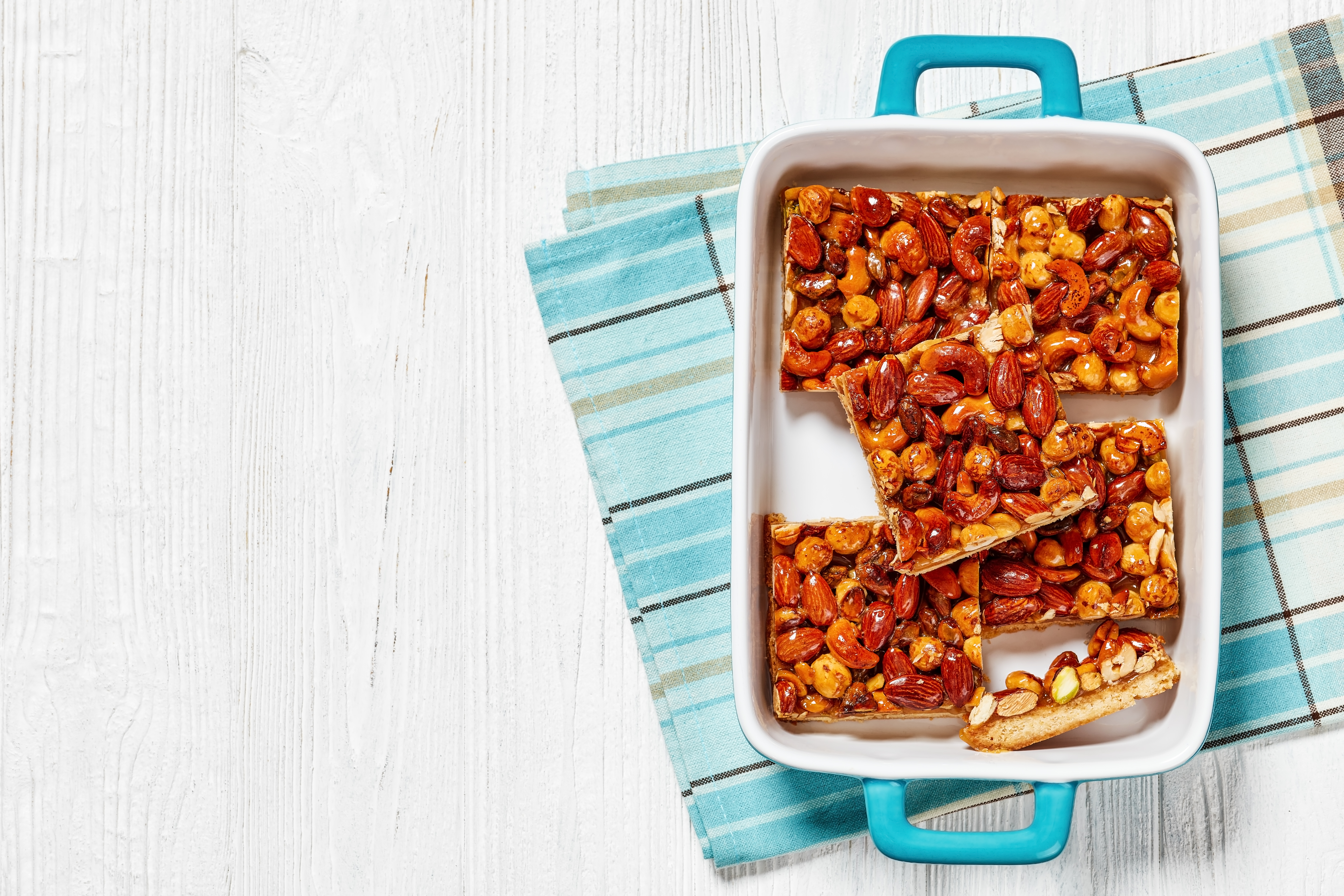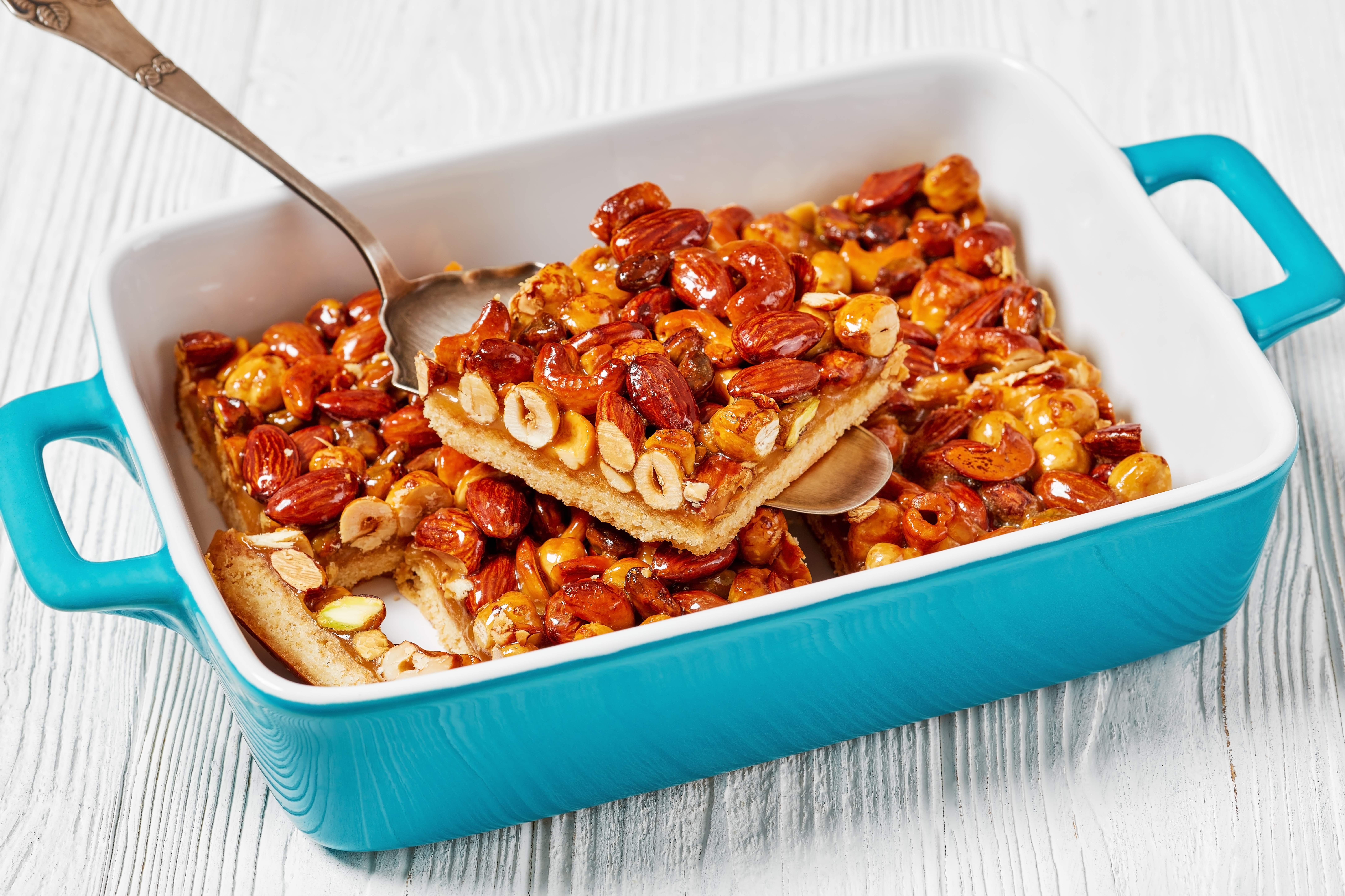 Down on the farm, we like Rustic Bars. After a long, hard day, followed by a hearty, comforting meal, we love to end it with these special treats. Our sweet tooths tingle with joy as we bite into the caramel-y, nutty topping that sits above a sweet, crispy crust. Tomorrow, we'll rise and do it all over again, ending it with Rustic Bars as always. There's really nothing better than sweet repetition! Try it for yourself!