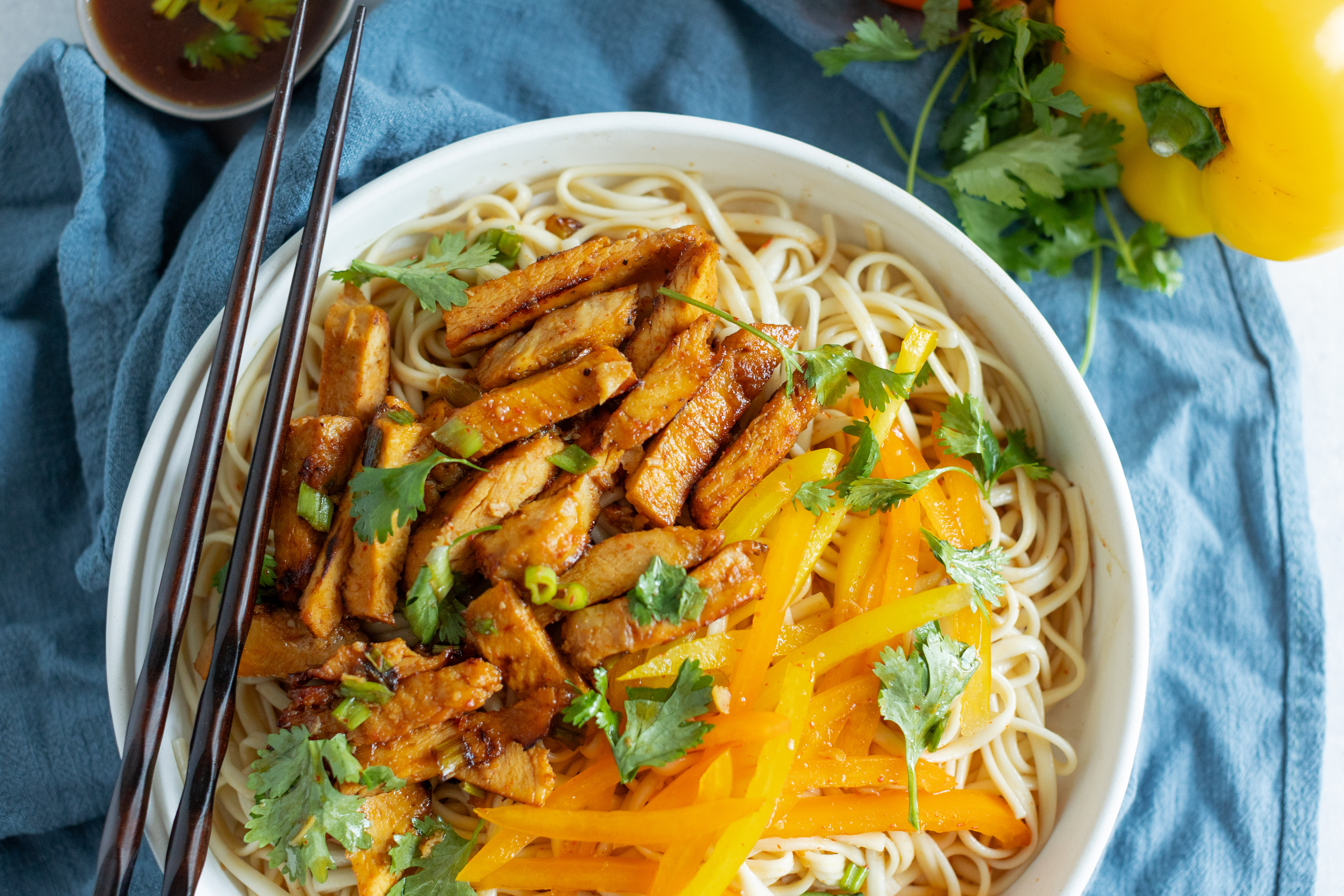 When the question is "what's for dinner," this dish is an answer that always makes people cheer! Sesame Chicken & Noodles are simple, speedy, and just so scrumptious! The noodles are tender and infused with the buttery and nutty flavor of sesame. Mixed in are sweet, tangy, savory chicken strips with a touch of garlic and chili heat. Mmmm, in just 20 minutes, you'll be eating Sesame Chicken & Noodles and living your best life!