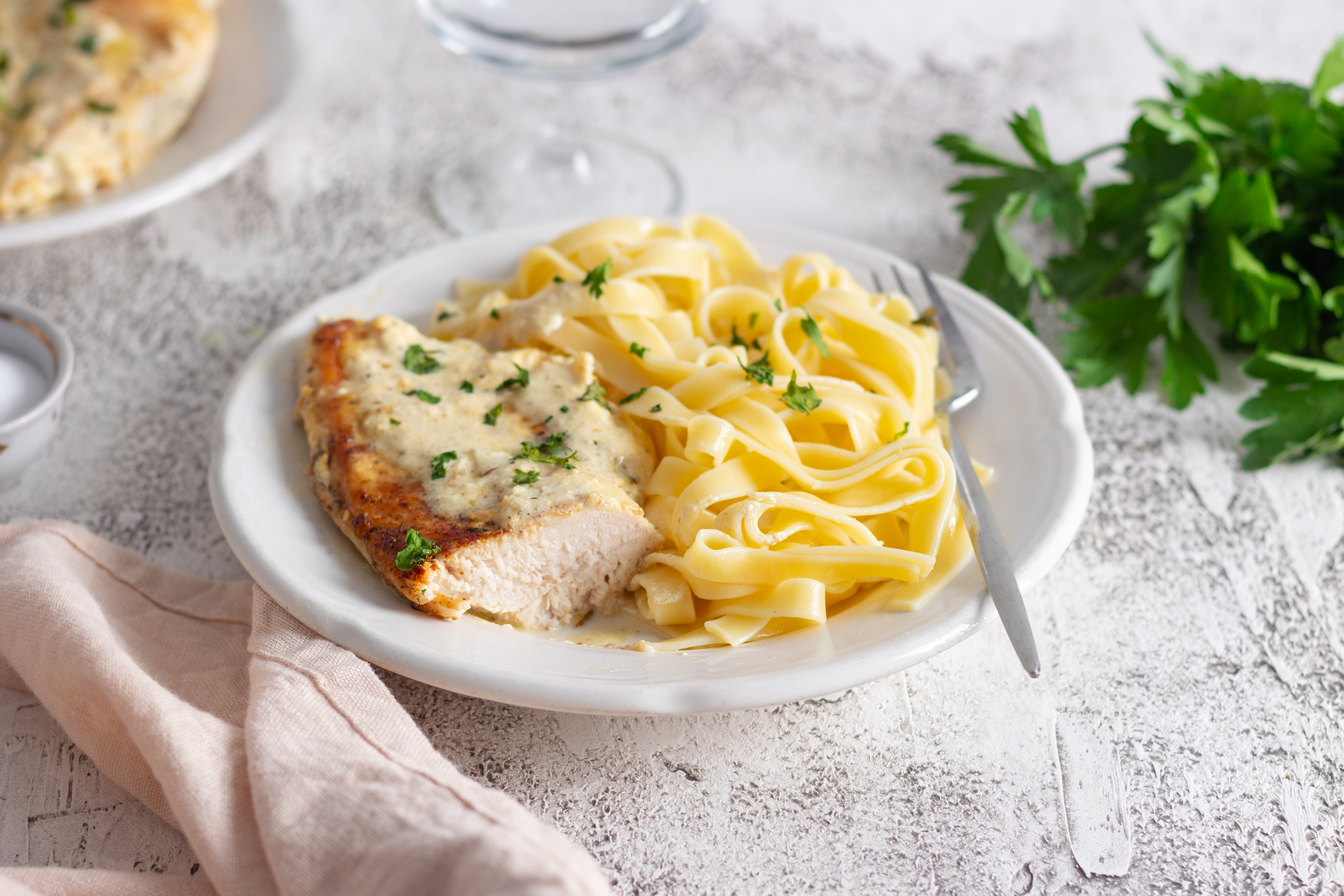 Step 2 -Season the chicken breasts with 1 1/2 teaspoons of the salt, 1 1/2 teaspoons of the pepper, and the garlic powder.
