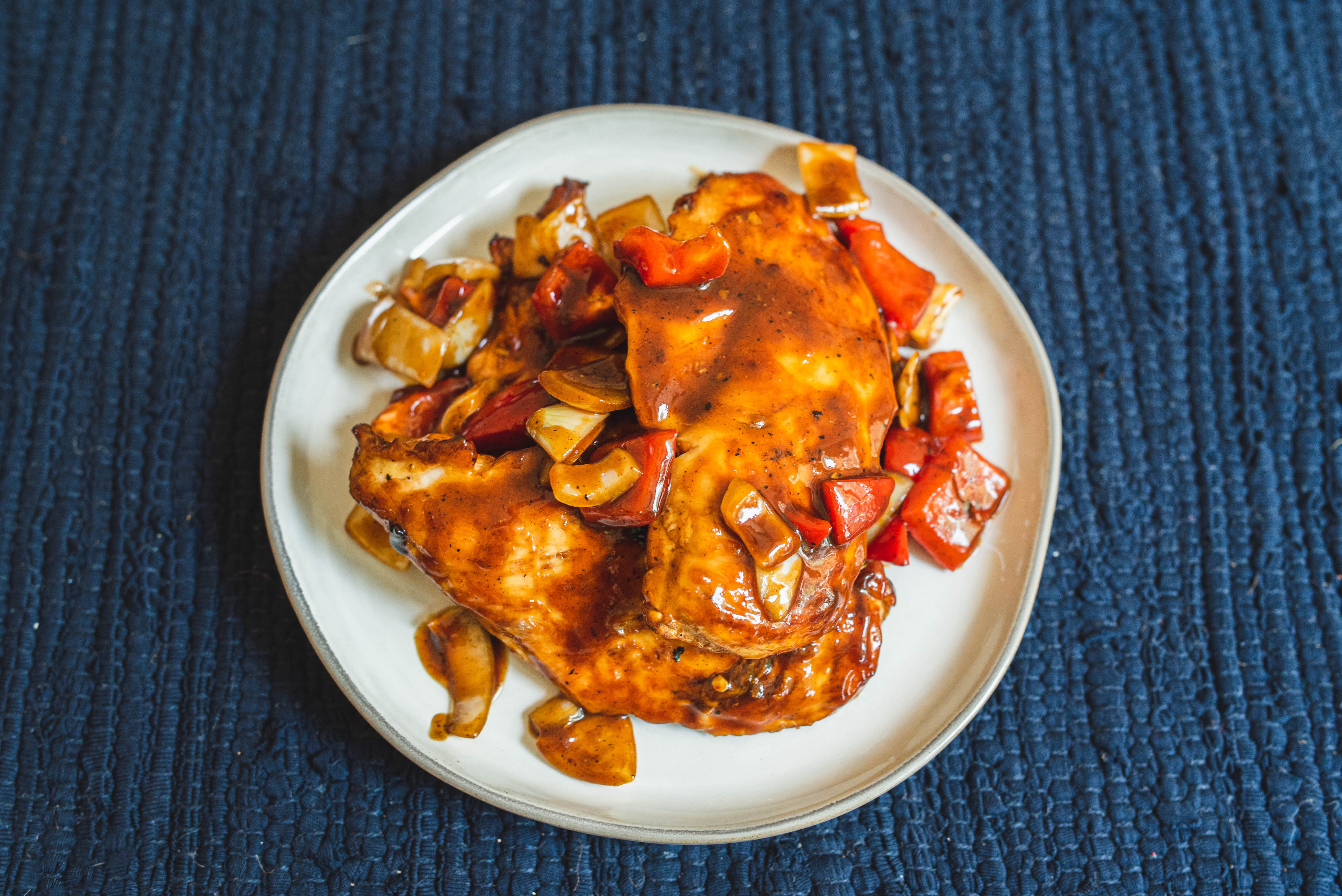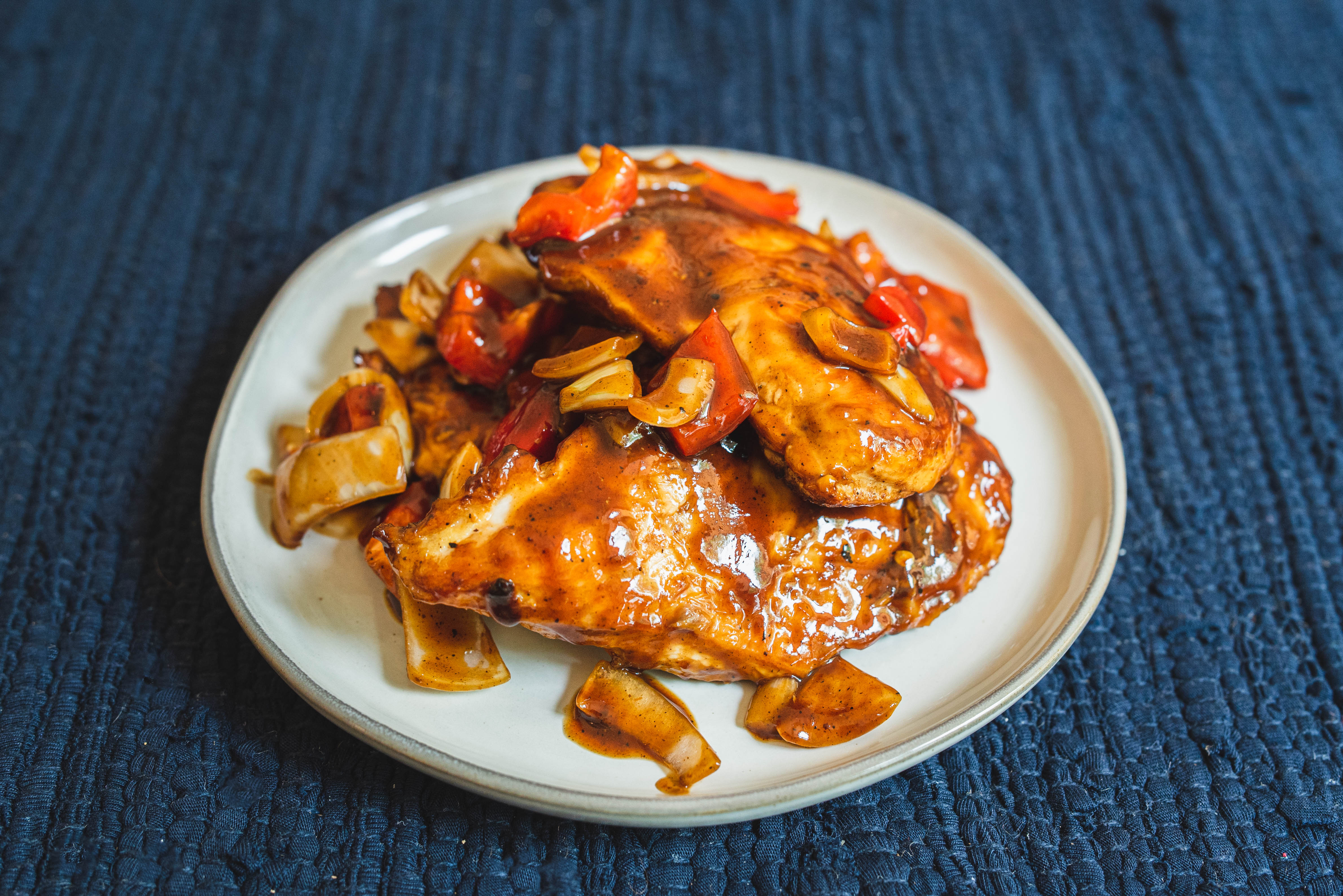 No need for a grill or even an oven with Stovetop BBQ Chicken: just a hot stovetop, a pan, and the right ingredients! The results are juicy, pan-seared, savory chicken, covered with tender onions and peppers and coated in a sweet, smoky, and tangy barbeque sauce! Can't really go wrong with all that, right? Stovetop BBQ Chicken is speedy and scrumptious, and so ready to dazzle!