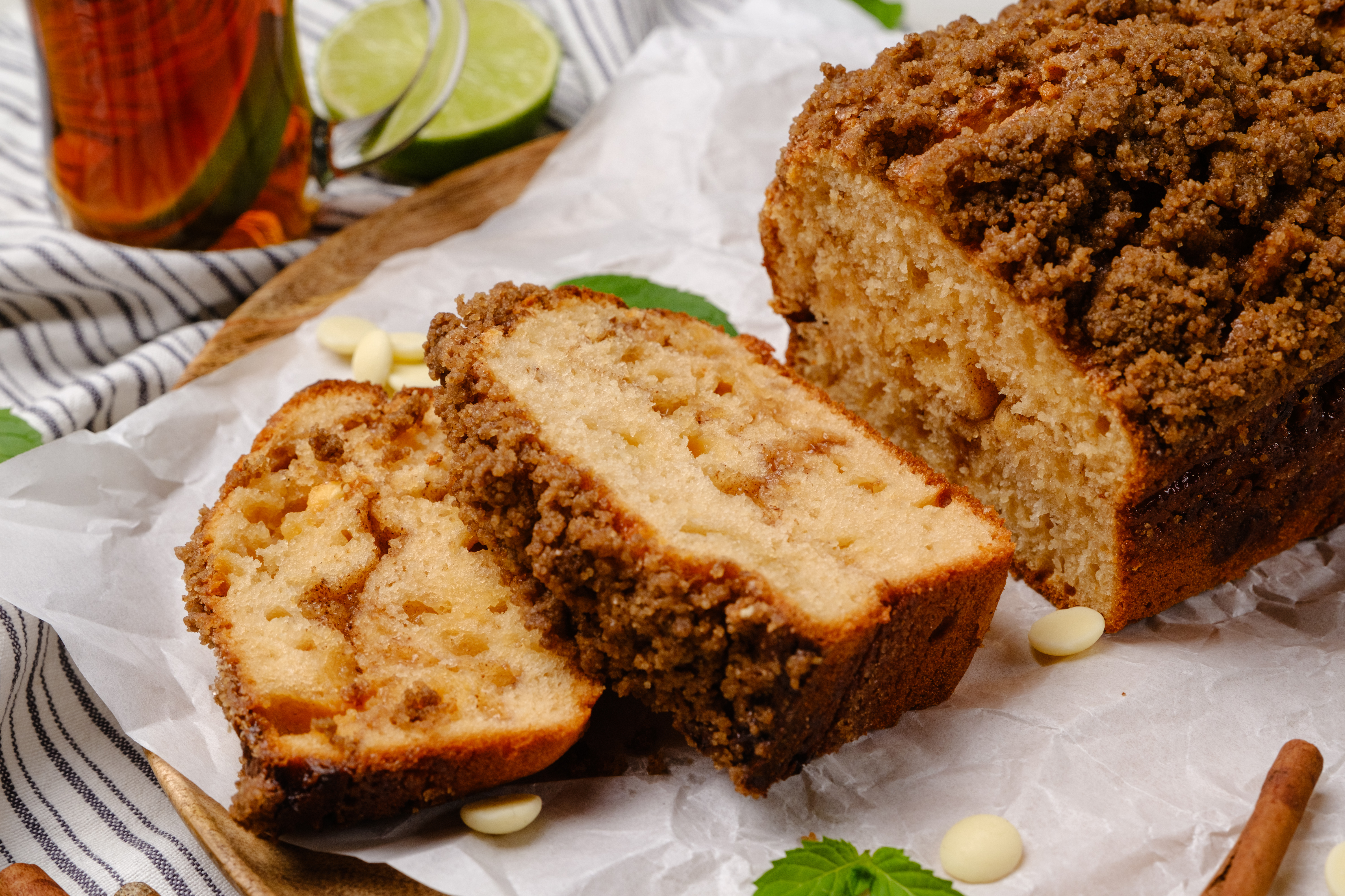 Sunday School Cinnamon Bread is the perfect treat for when you have the afternoon free and you want to take a stroll through childhood memories! The tender, cake-like bread is loaded with creamy, melted white chocolate and a cinnamon-sugar swirl for more delights than you can believe! A crunchy, brown sugar-cinnamon topping adds lovely texture and even more warm spice goodness to Sunday School Cinnamon Bread! It's a goody-two-shoes dessert that you'll be thrilled to share!