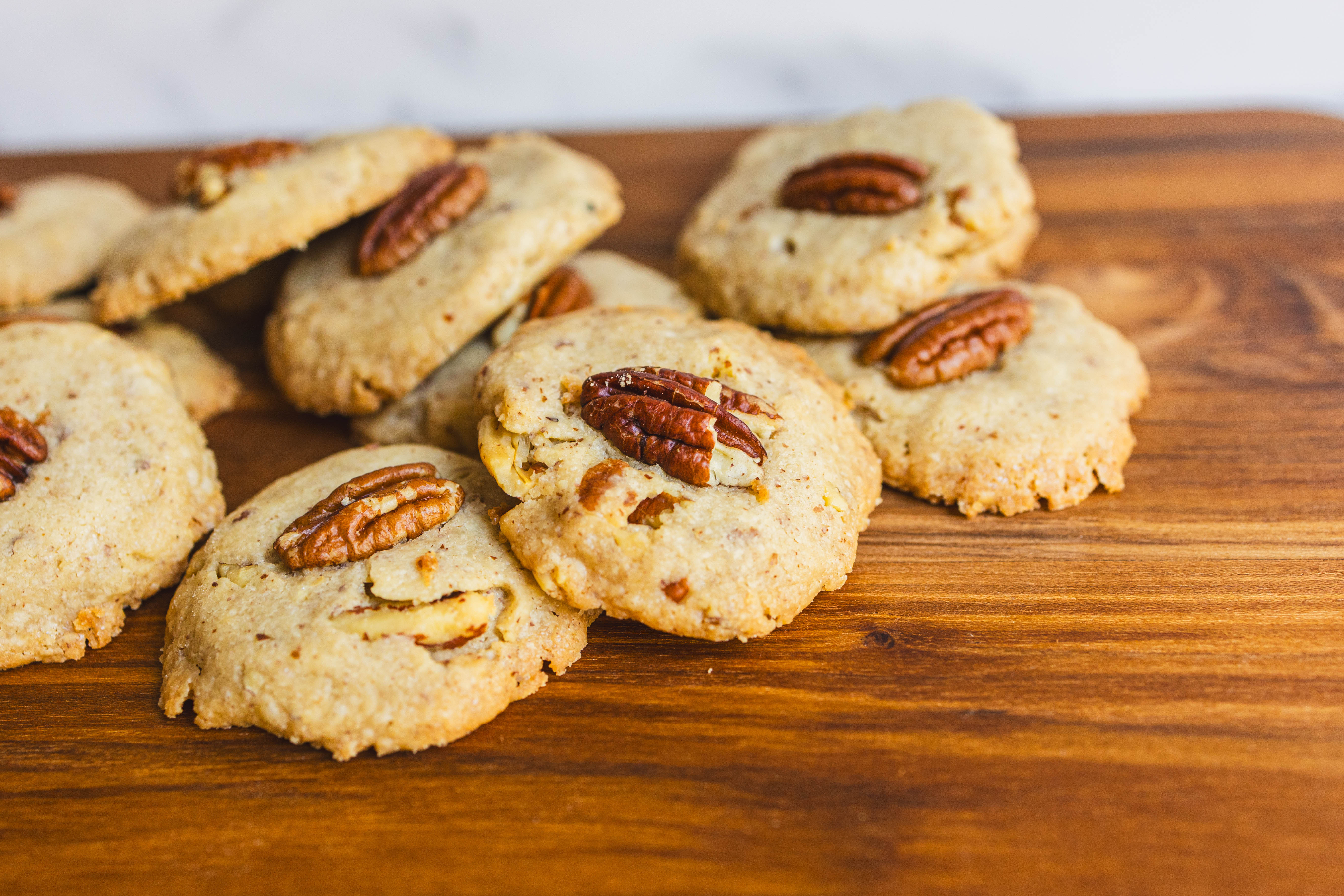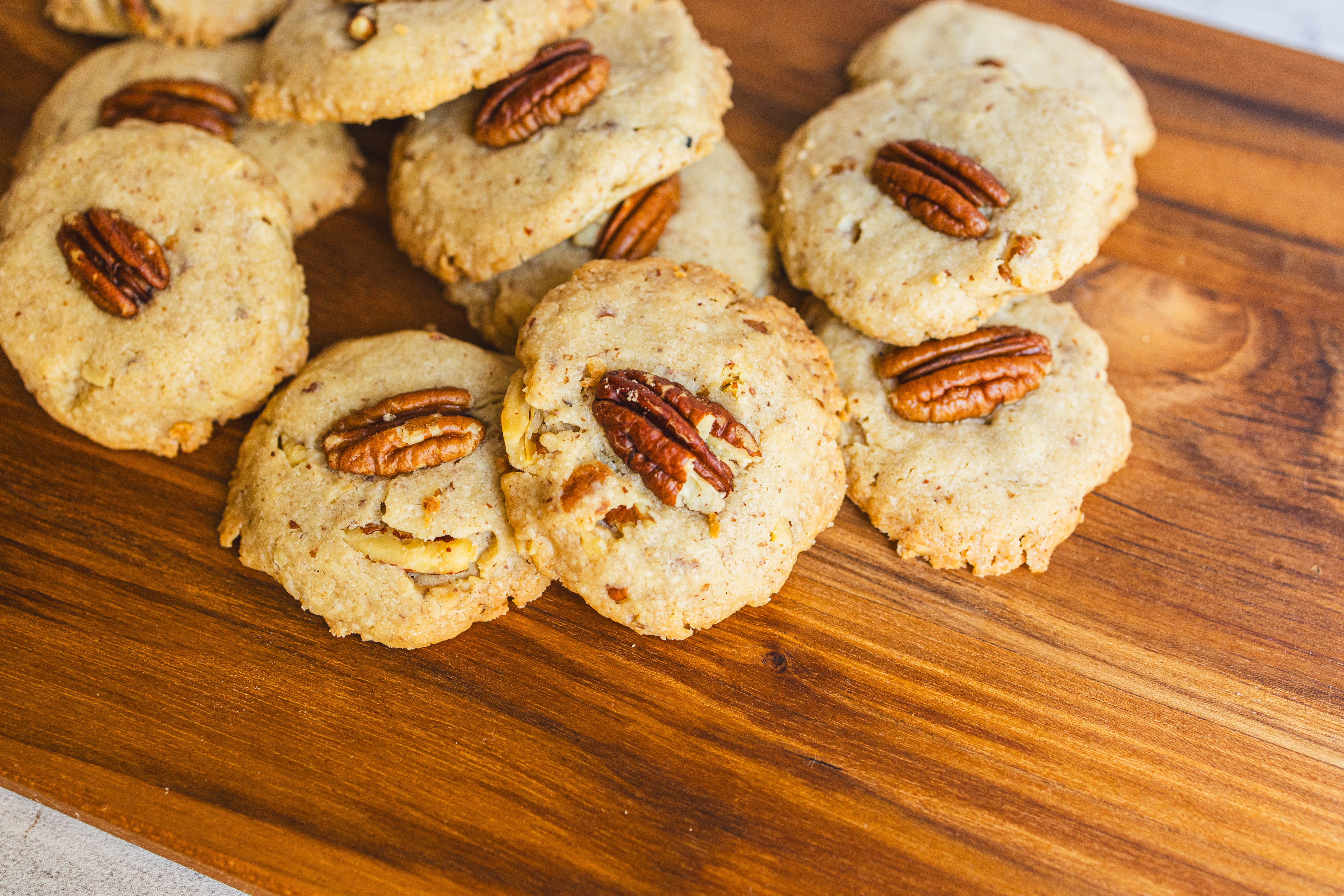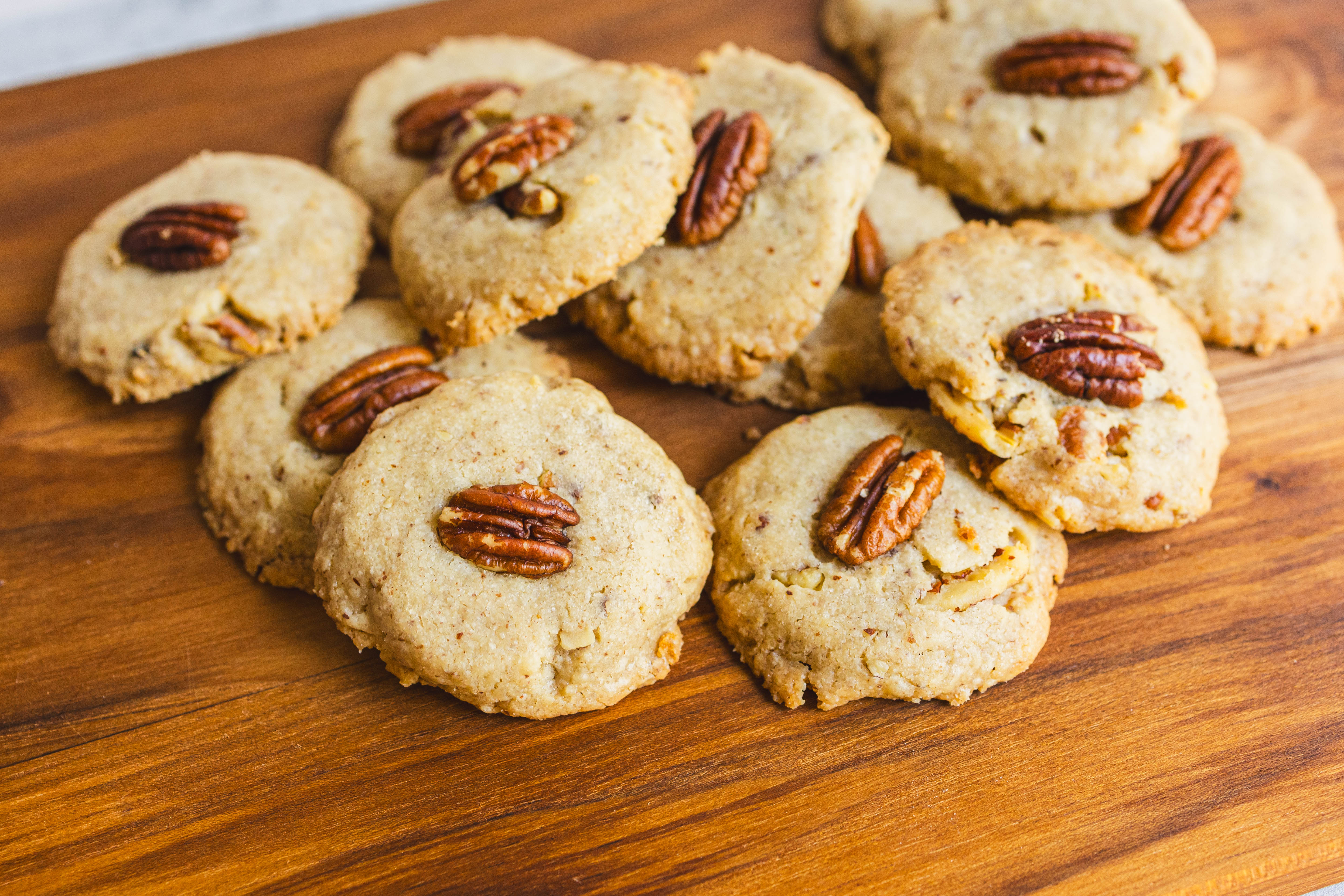 Sweet Pecan Sandies get their name from their super crumbly texture... a delicious hint at just how buttery each of these little treats is! Smoky-sweet and loaded with nutty pecans both in the dough and right in the center of each cookie, Sweet Pecan Sandies are easy and delicious baked goods (or baked greats!) for those who love nuts in their desserts! You'll go nuts for these!