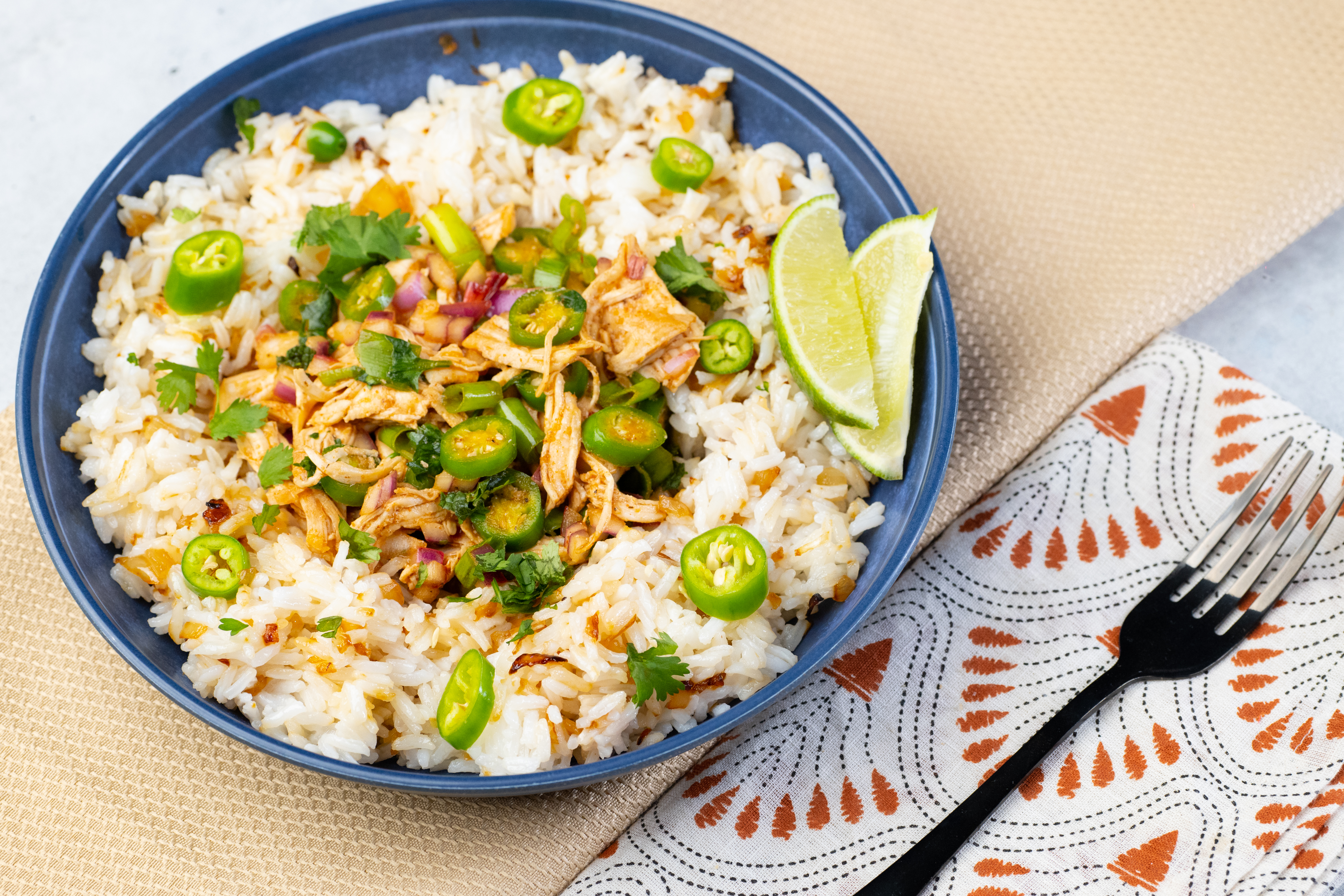 We're going on a journey, but you can keep your suitcases in the closet! Instead, grab your chopsticks and let's head to the kitchen for some of this Taste-of-Asia Rice. Each bite will take you on an adventure filled with fluffy rice, of course, but also perfectly seasoned chicken tossed in a spicy, tangy herb salad! Your taste buds won't believe what they're tasting is real! With a squeeze of lime, Taste-of-Asia Rice is a terrific trip for two worth taking! Come along!