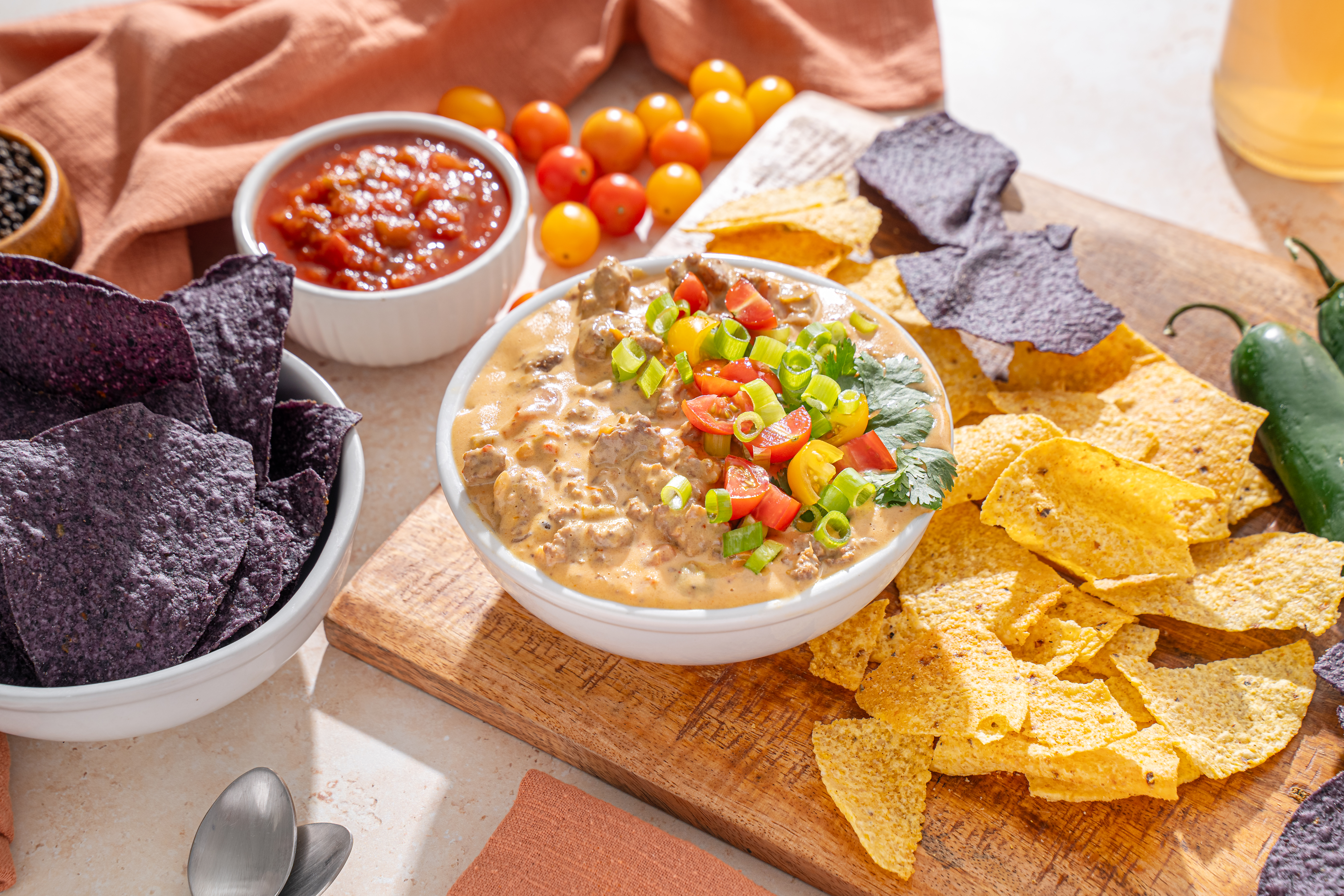 It's a touchdown! The crowd goes wild! Wait... No, it's not the Super Bowl®, it's The Stadium Dip that will make your taste buds go crazy! This simple and marvelously tasty winner of a snack is beefy and cheesy, with just a hint of spice to keep things exciting. The Stadium Dip is a champion-level snack for any champion-level occasion, or even just for a regular old Sunday!
