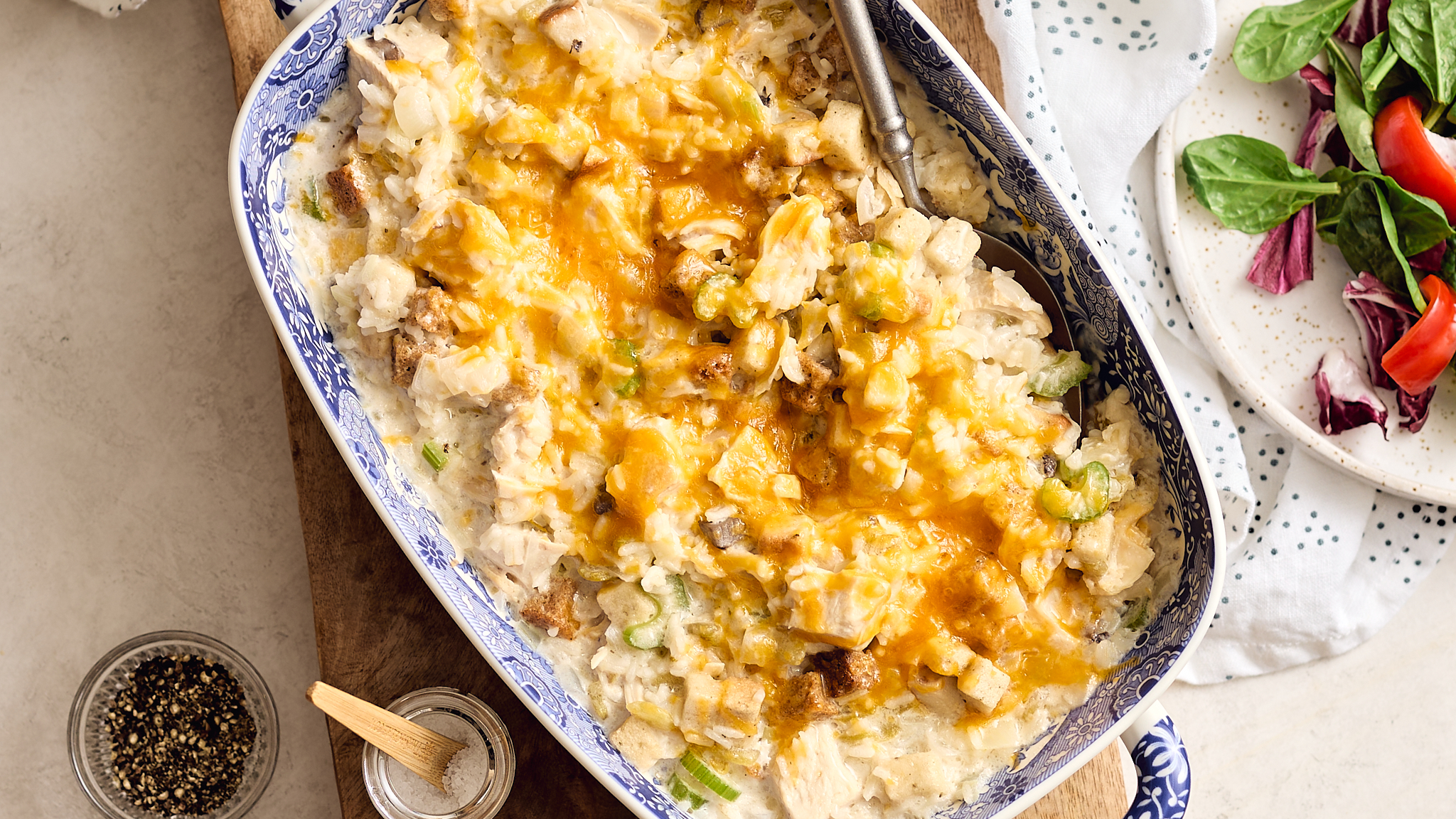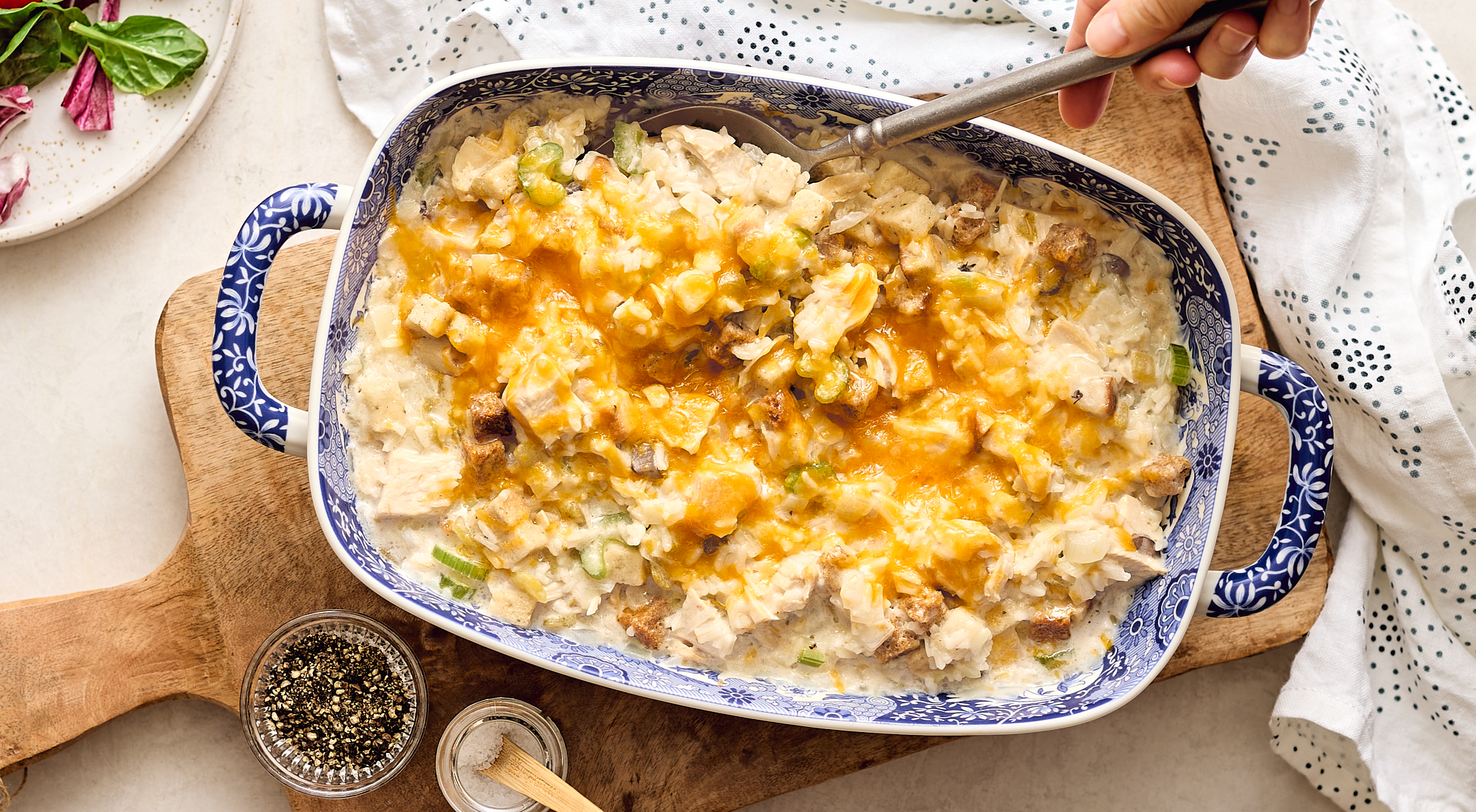 We asked the Thomas family if their signature dish, the Thomas Family Bake, really counted as a "bake" if they don't even use the oven. They insisted their creamy rice and savory turkey casserole, made entirely in the microwave for incredible speed, is definitely a bake. Then they claimed they had an appointment and dashed off. Huh... anyway, Thomas Family Bake is rich and hearty and very easy to make, especially if you have any leftover turkey in your fridge, and so whether it's a bake or not, it's a very tasty dinner!