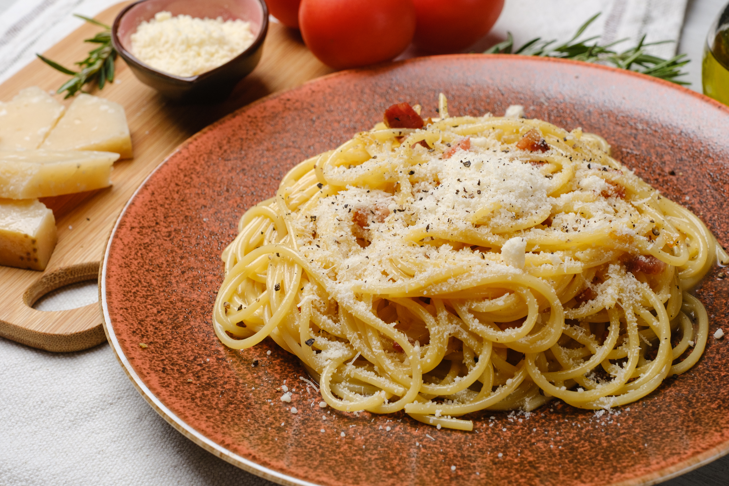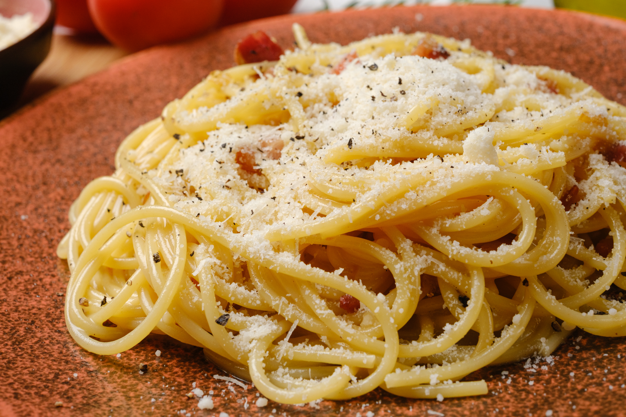 This pasta is so good, you'll be tempted to jump up on a couch in celebration! The Tom Cruise Spaghetti Carbonara won't go maverick on you; it's a classic Italian dish with a creamy sauce cooked right on the tender pasta for maximum flavor and texture. Crisp, succulent pancetta infused with garlic oil only heightens the experience and makes it more compelling. There's no risky business in making the Tom Cruise Spaghetti Carbonara for yourself... only superstar success!