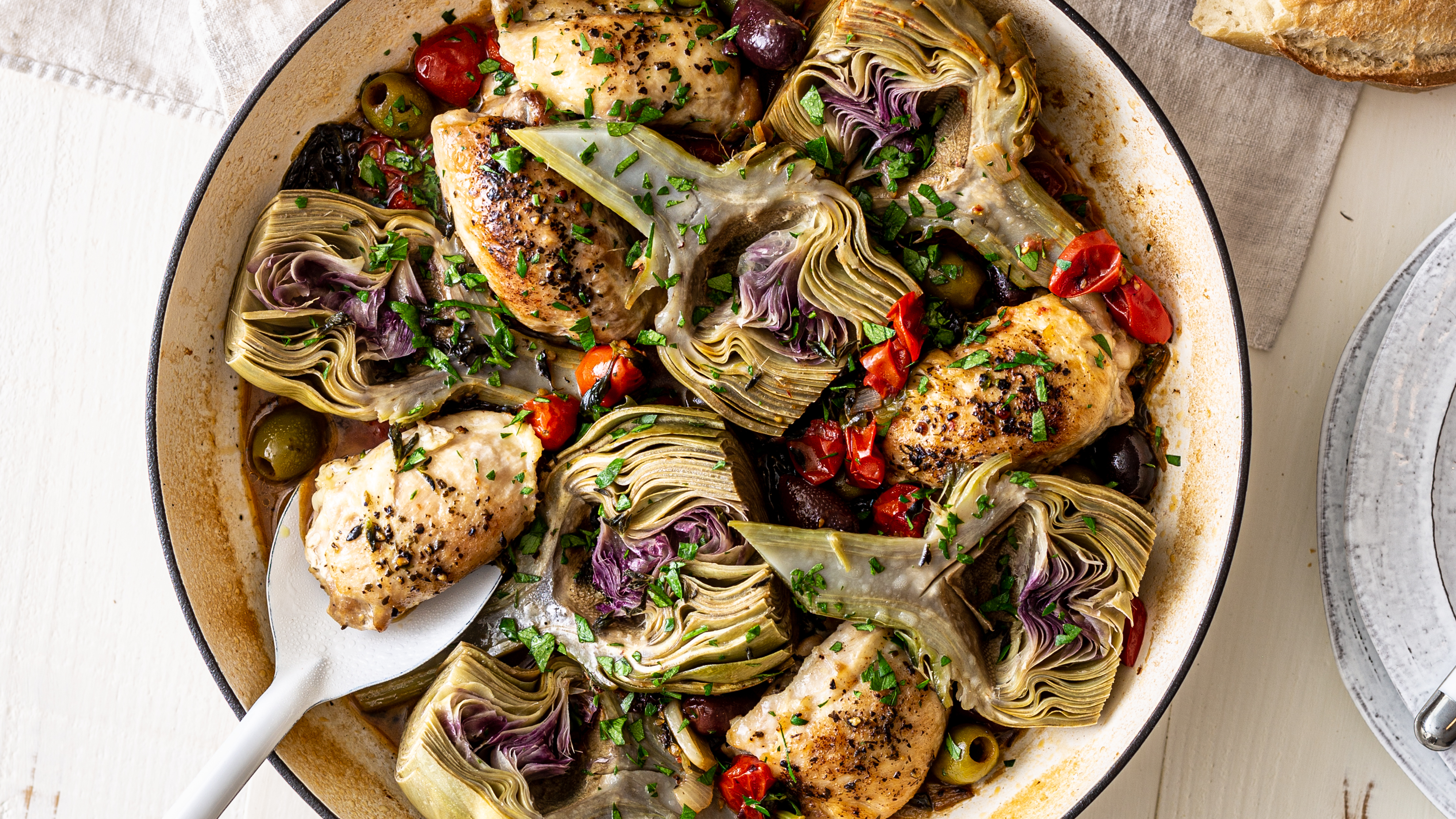 Need a taste of some rustic comfort? These Tuscan Chicken Thighs should do the trick. The boneless bites of boldness bring bounds of beautiful flavor blends! Garlic, herbs, with a little hint of salt, it's truly a tasty trifecta! The earthy artichokes, bursting tomatoes, and tangy olives bring the excitement that your dinnertime needs. So, fully satisfy your craving with these Tuscan Chicken Thighs! They're everything you hoped for and more!