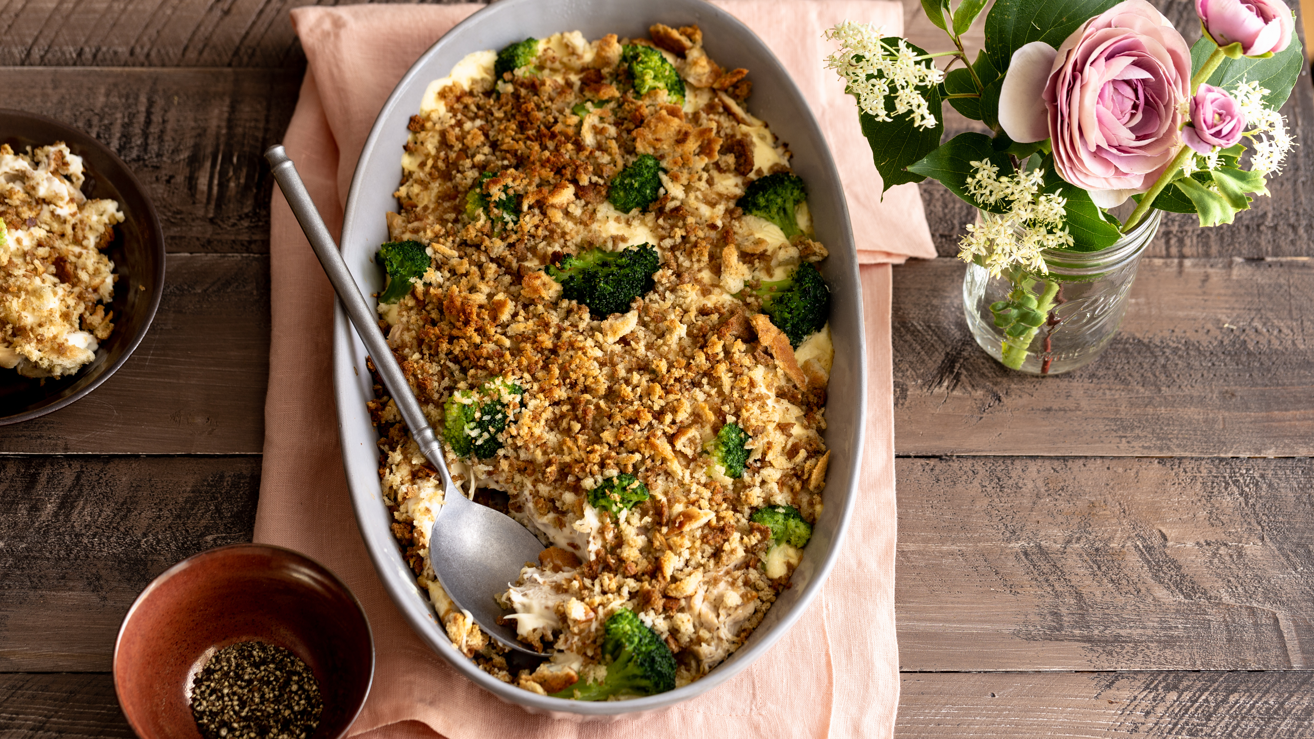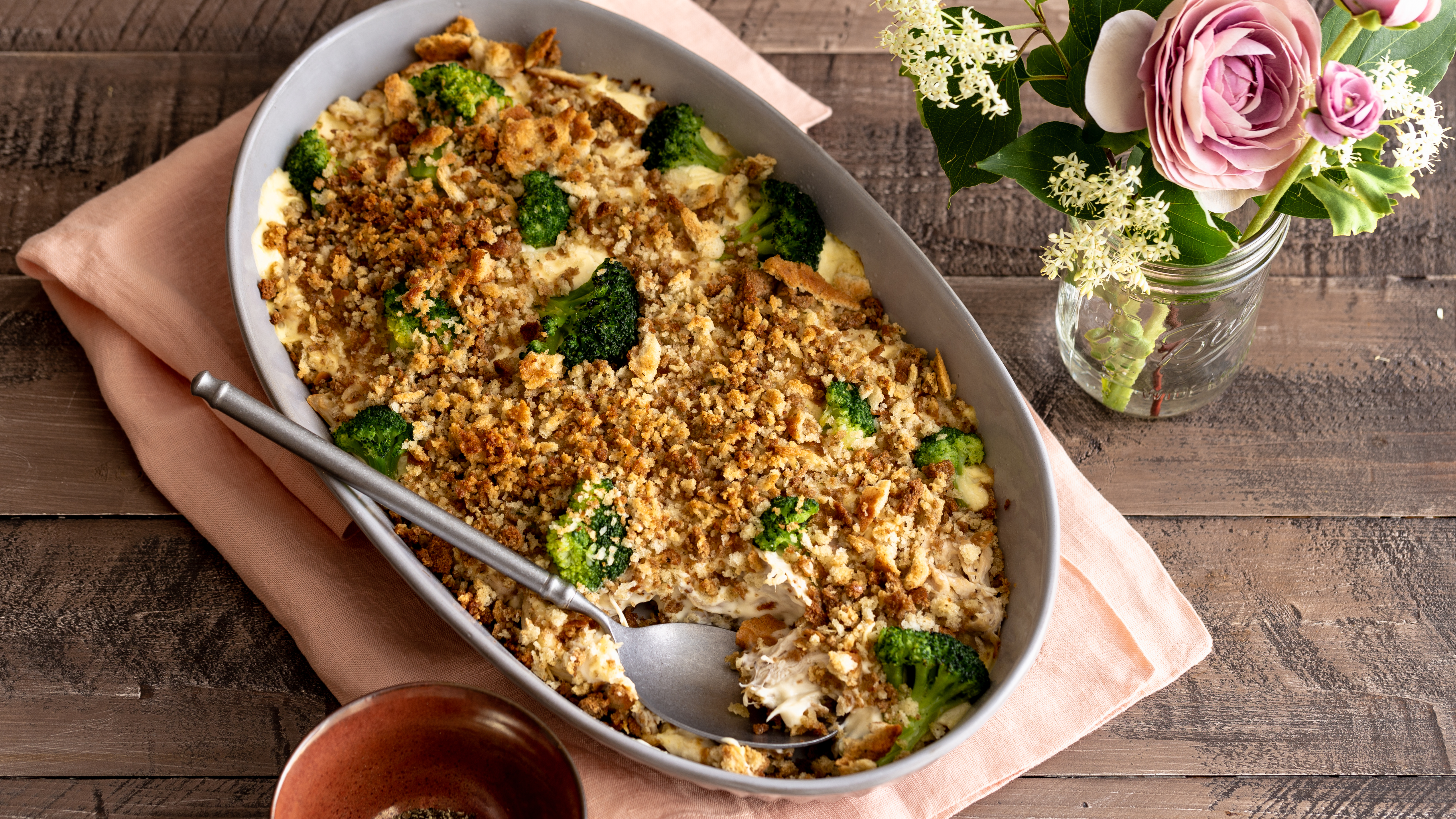 *Knock, knock, knock* Oh, no! Someone's at the door! Did you know someone was coming today... and right around dinnertime of all times? Nope, sure didn't. Well, don't panic. That's what We-Have-Visitors Casserole is for! In under an hour, those unexpected dearest guests of yours will be chowing down on a creamy, crispy concoction of yummy chicken and healthy broccoli. Hopefully you can pass the cooking time by catching up and enjoying the company... even though it wasn't in your plans for the day. Everything is better together, right? We'll let you be the judge of that one. But the next time this happens, We-Have-Visitors Casserole will be your saving grace!