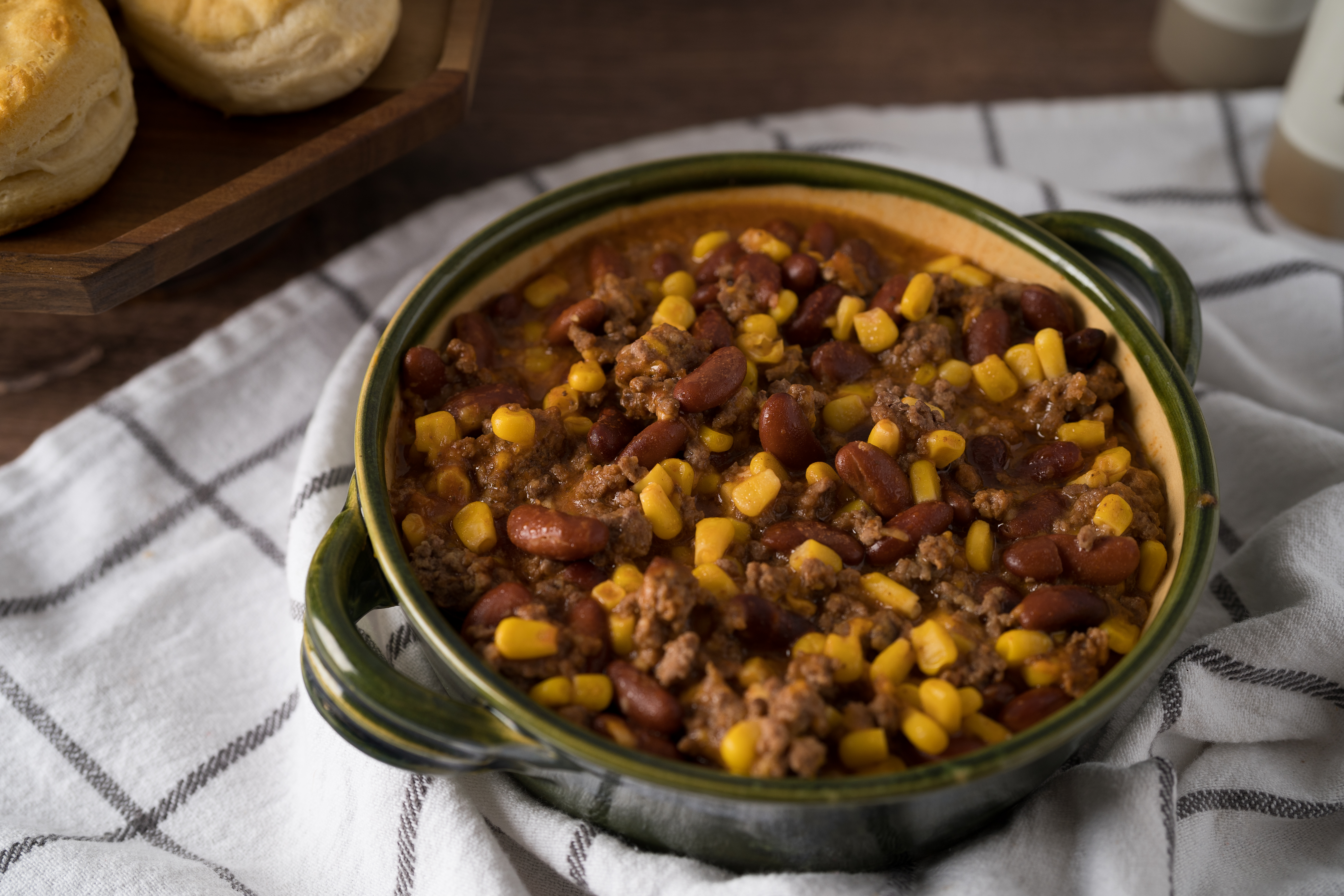 Yee-haw! If this isn't the most delicious casserole on either side of the Mississippi, well then, we'll be a prairie dog's uncle! The Wild West Casserole is loaded with hearty beef, creamy beans, and sweet summery corn. Then, you find some sharp cheese mixed in for extra country flavor. To finish, the Wild West Casserole rides up to you on a silver steed (aka your spoon) and delivers the blessing of a golden, buttery biscuit. We reckon there isn't a tastier dish in these here states, but you can be the very happy judge of that!