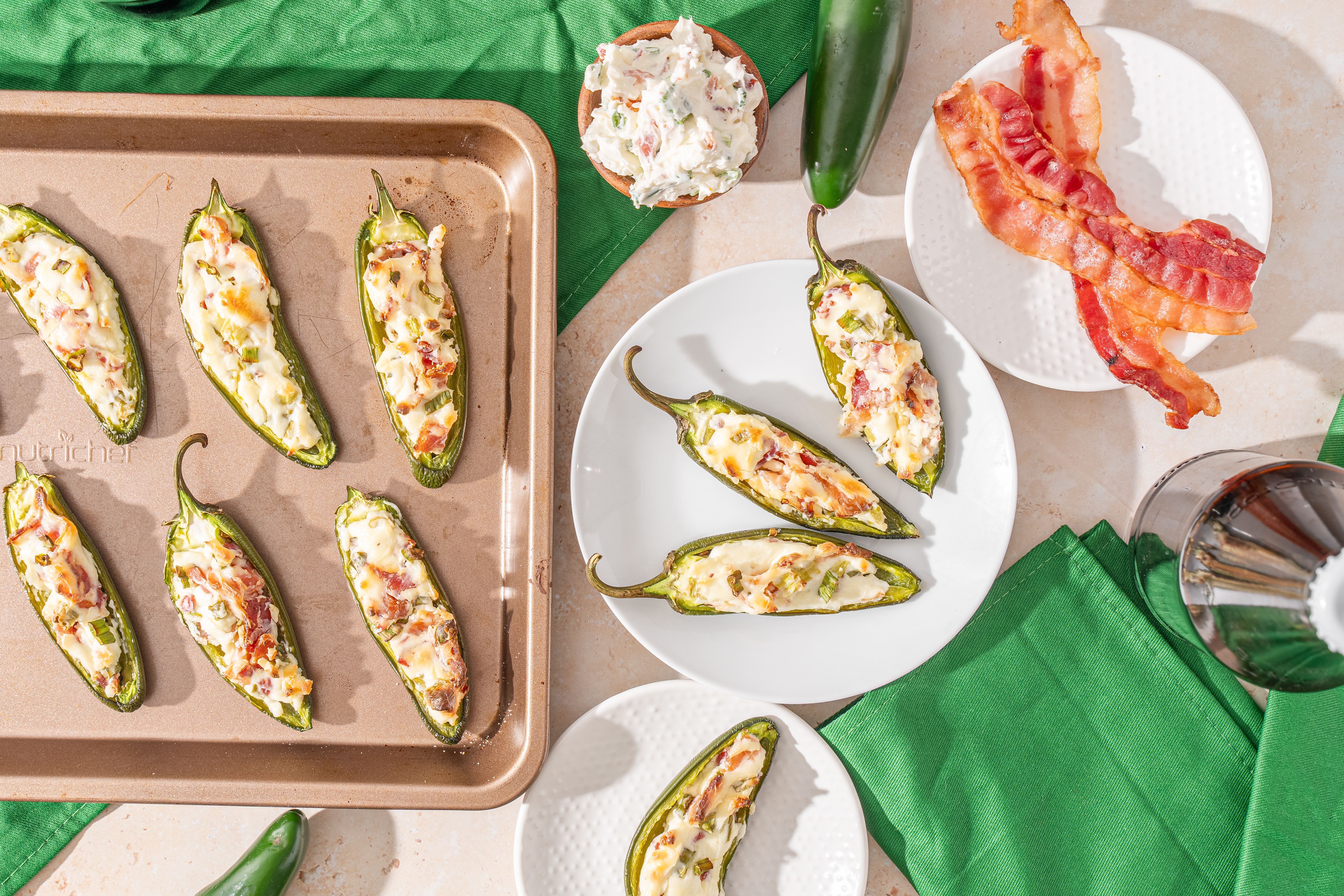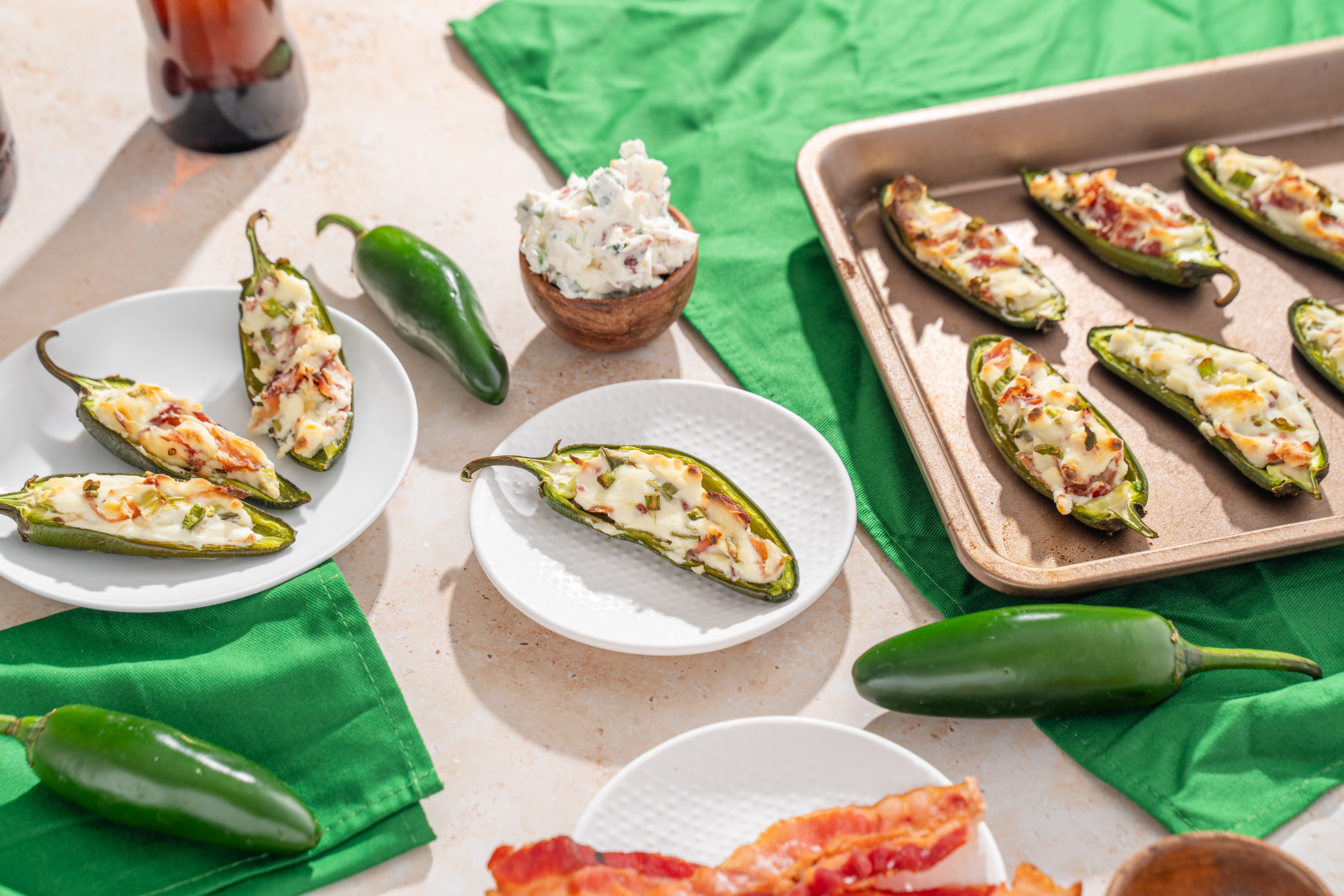 Warm and cozy is where we like to be, and this little snack will certainly do the trick! Winter Stuffed Jalapeños are packed with just the right amount of heat that your guests are going to love. Flavorful cream cheese is combined with green onions and bacon, then is snuggly baked inside some jalapeño halves for the bite of warmth your appetizer list has been missing. Bundle up some Winter Stuffed Jalapeños to really heat things up for your guests and get the party started. It's fire!